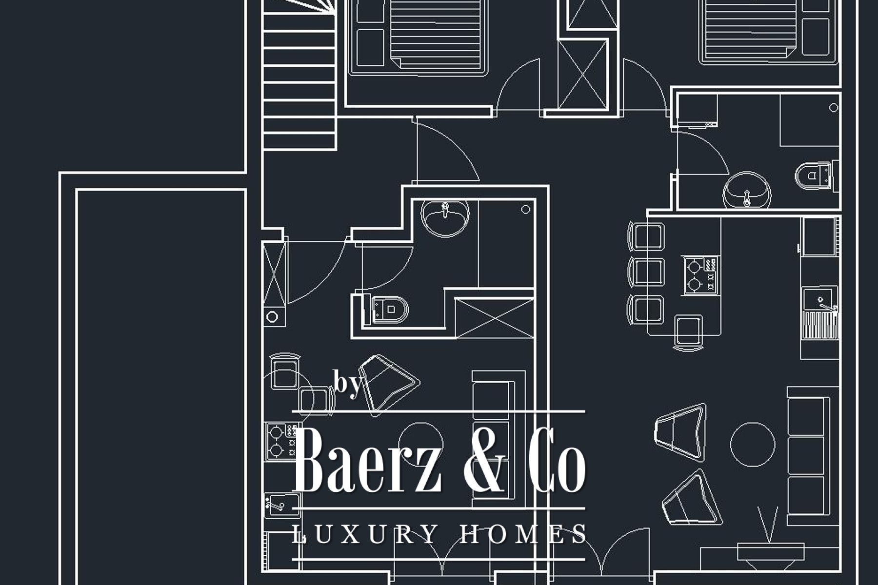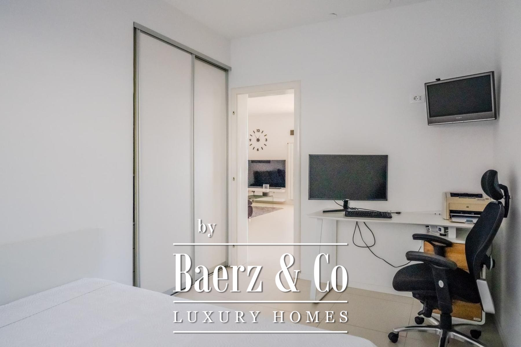 En la planta baja se encuentran dos dormitorios, un baño, aseo de invitados, cuarto de calderas y lavandería, proporcionando una base funcional. El espacio central es una sala de estar diáfana que integra cocina y comedor, conectándose directamente con una amplia terraza donde la piscina y la cocina exterior enmarcan las vistas al mar. La primera planta ofrece una unidad independiente con dos dormitorios adicionales, un baño, trastero y balcón. Una escalera prefabricada da acceso directo al jardín, mejorando la fluidez y la privacidad.