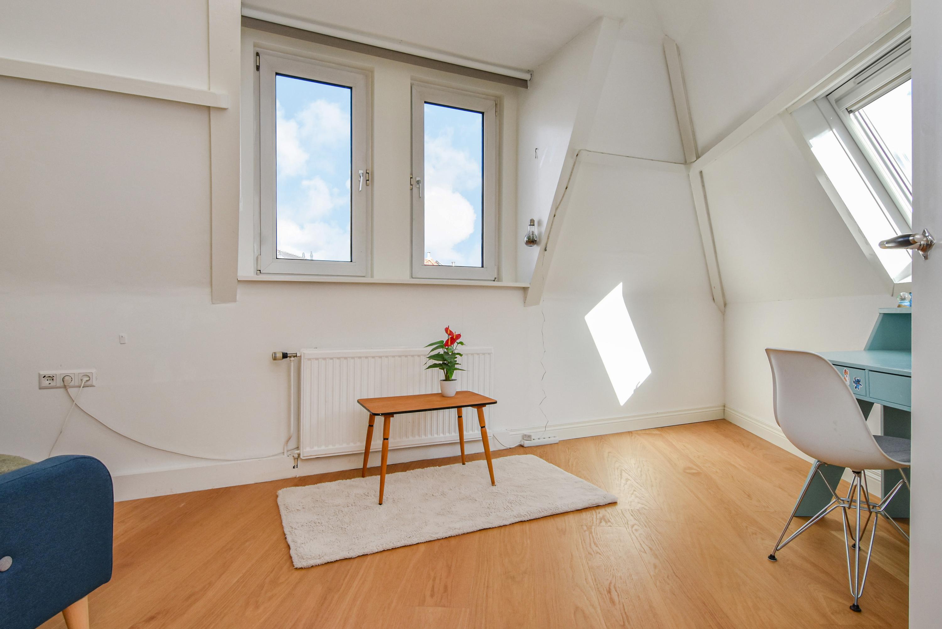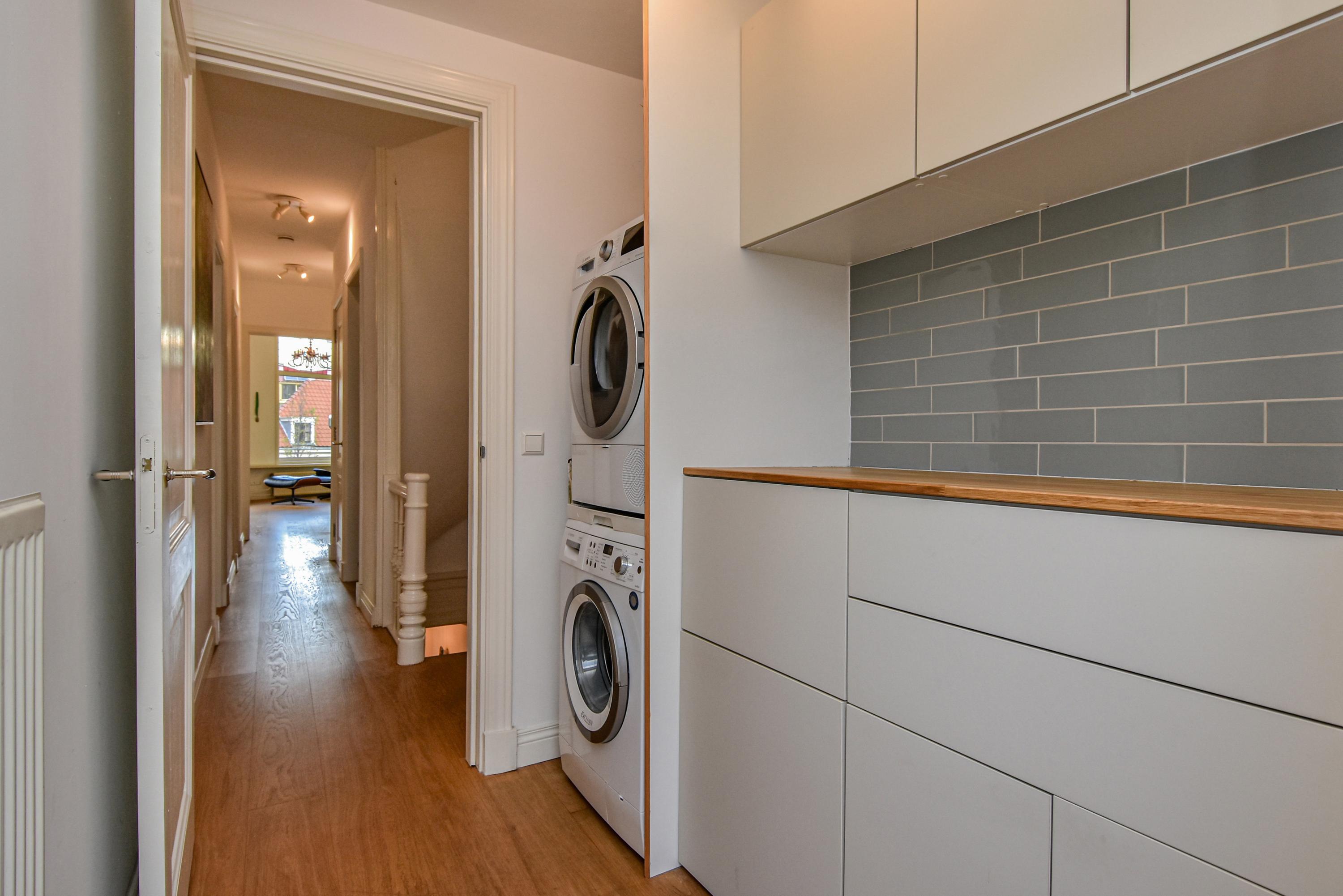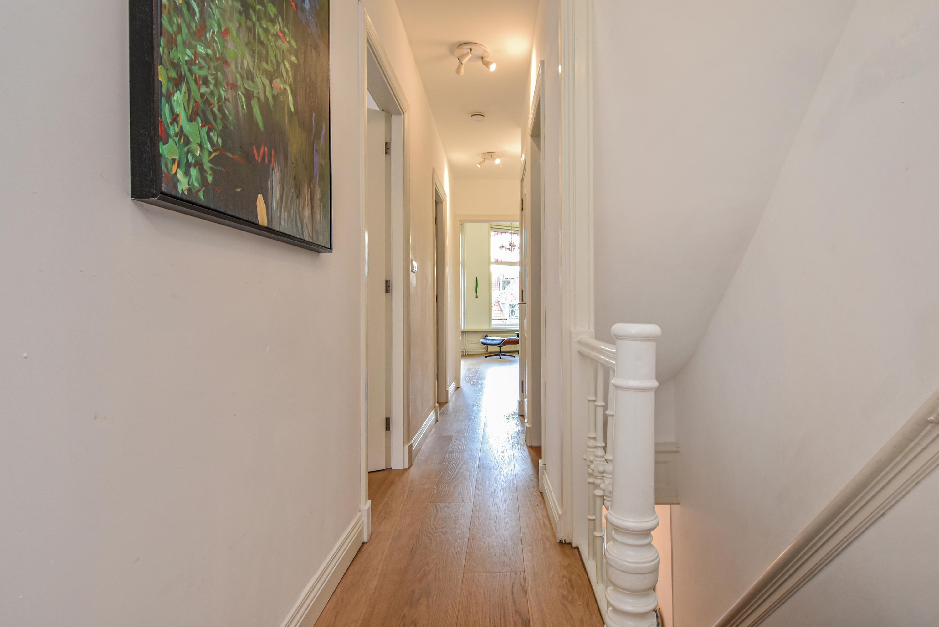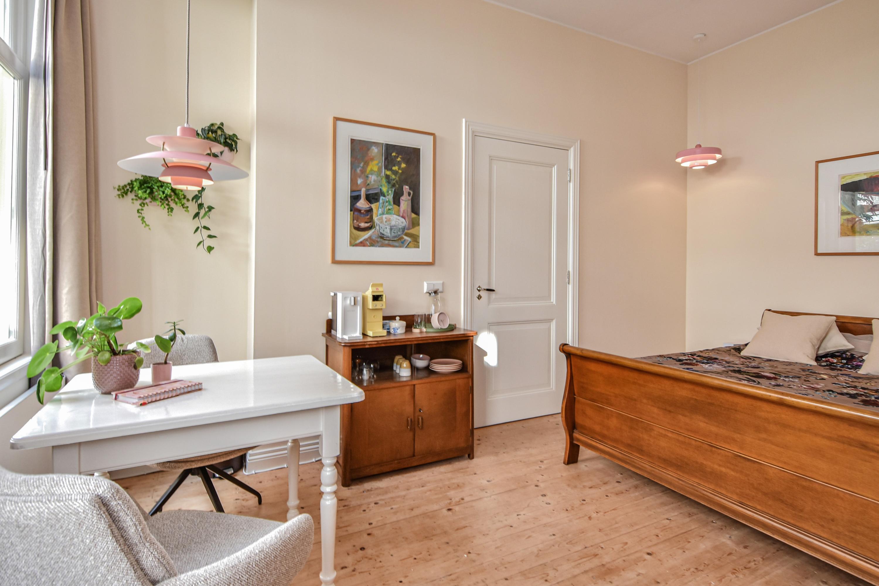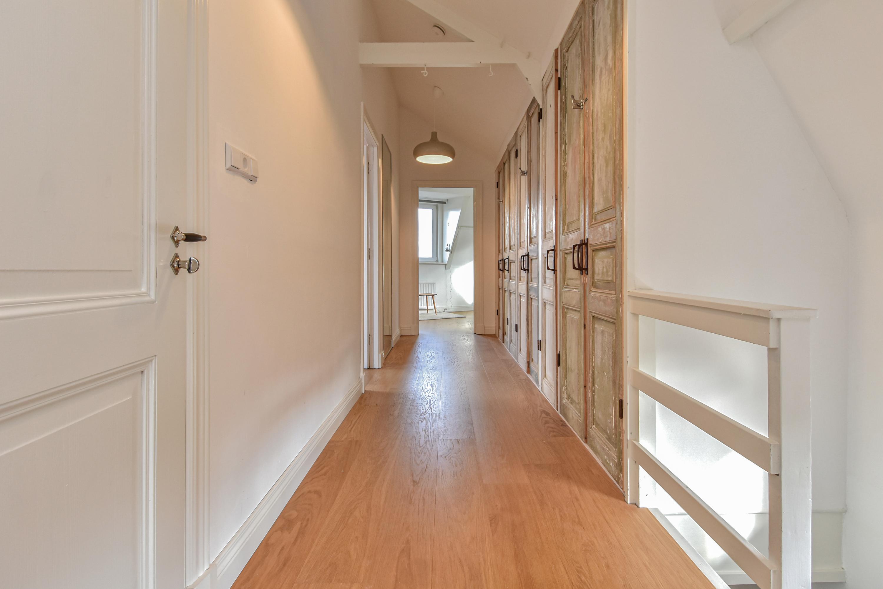 Al entrar, las fachadas de cristal altas y un techo que alcanza los 3,55 metros definen la cocina principal. Molduras de estuco y vidrieras preservadas celebran el linaje arquitectónico. La cocina, equipada con electrodomésticos de alta gama empotrados, se articula en torno a espacios para comer y socializar, flanqueados por dos amplias salas de estar. Un estudio integrado, con entrada independiente y baño con suelo radiante, puede adaptarse fácilmente como suite de invitados o zona de trabajo. En la planta baja hay amplios espacios de almacenamiento y acceso directo a Broerhuisstraat.