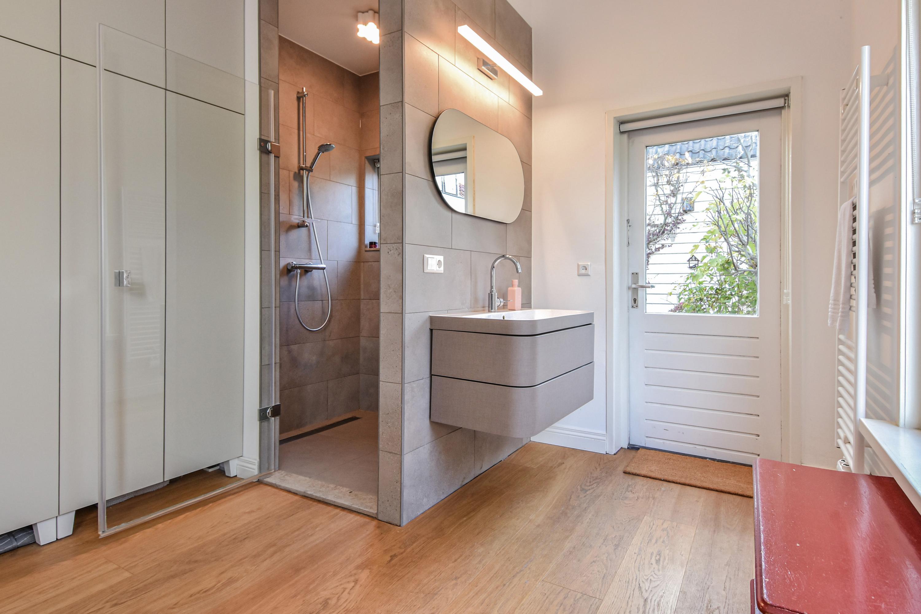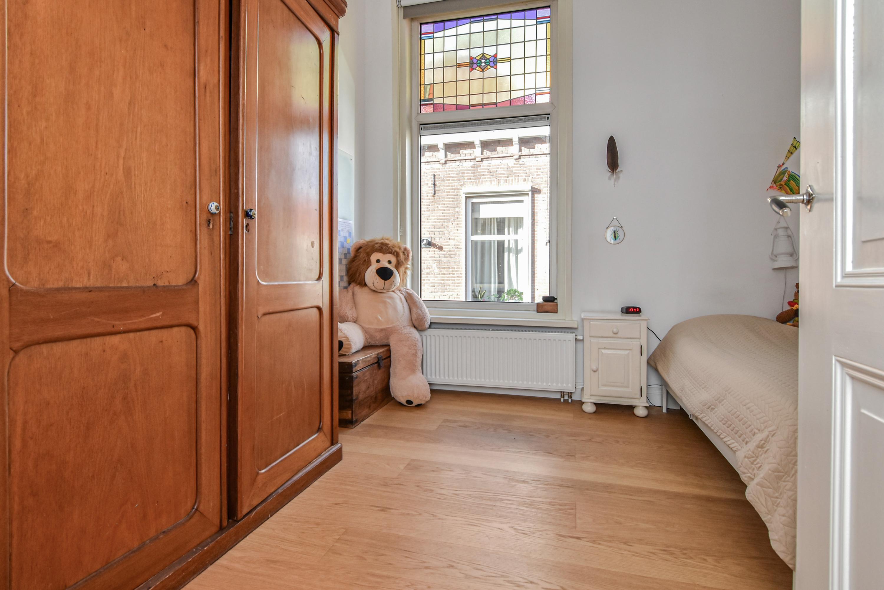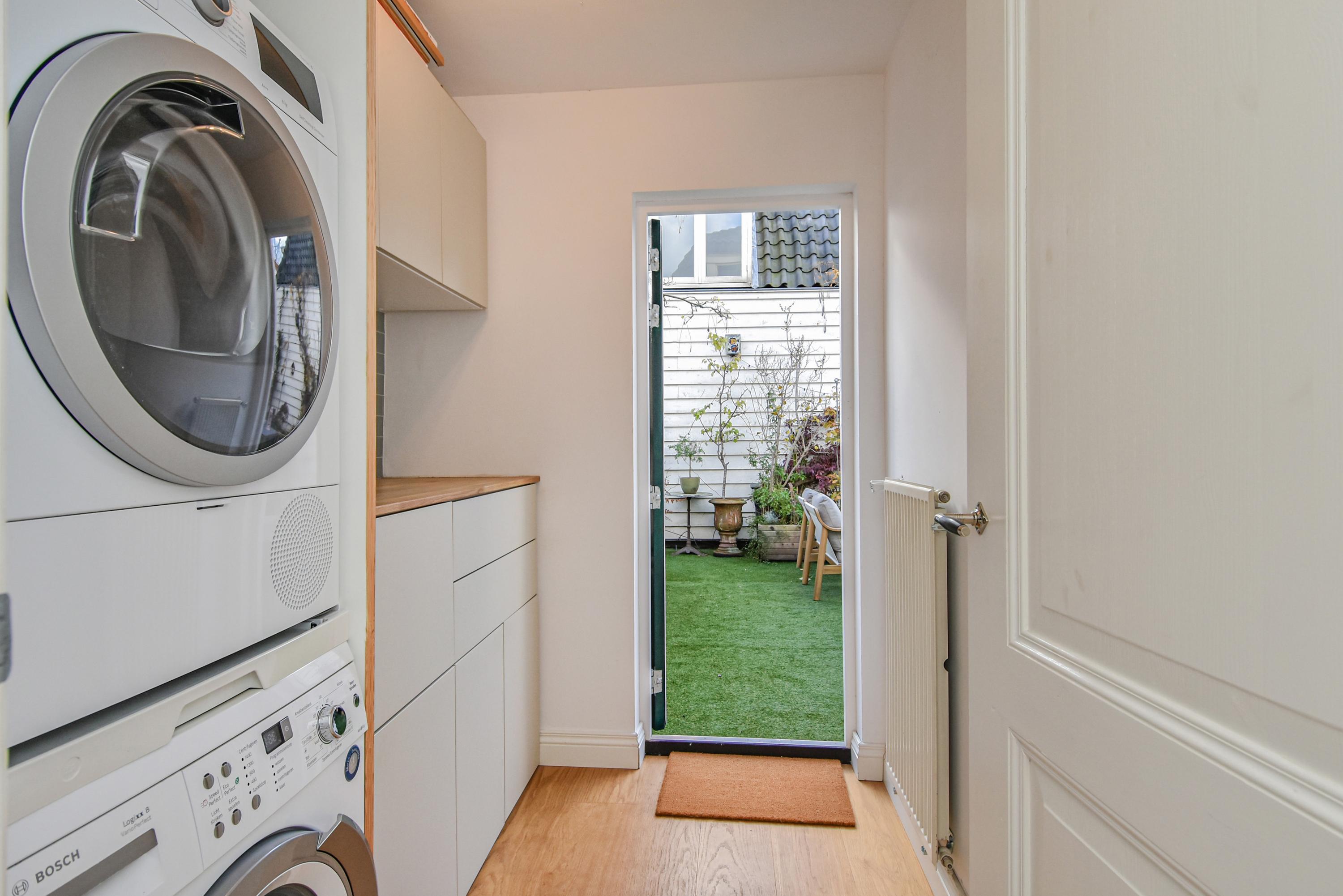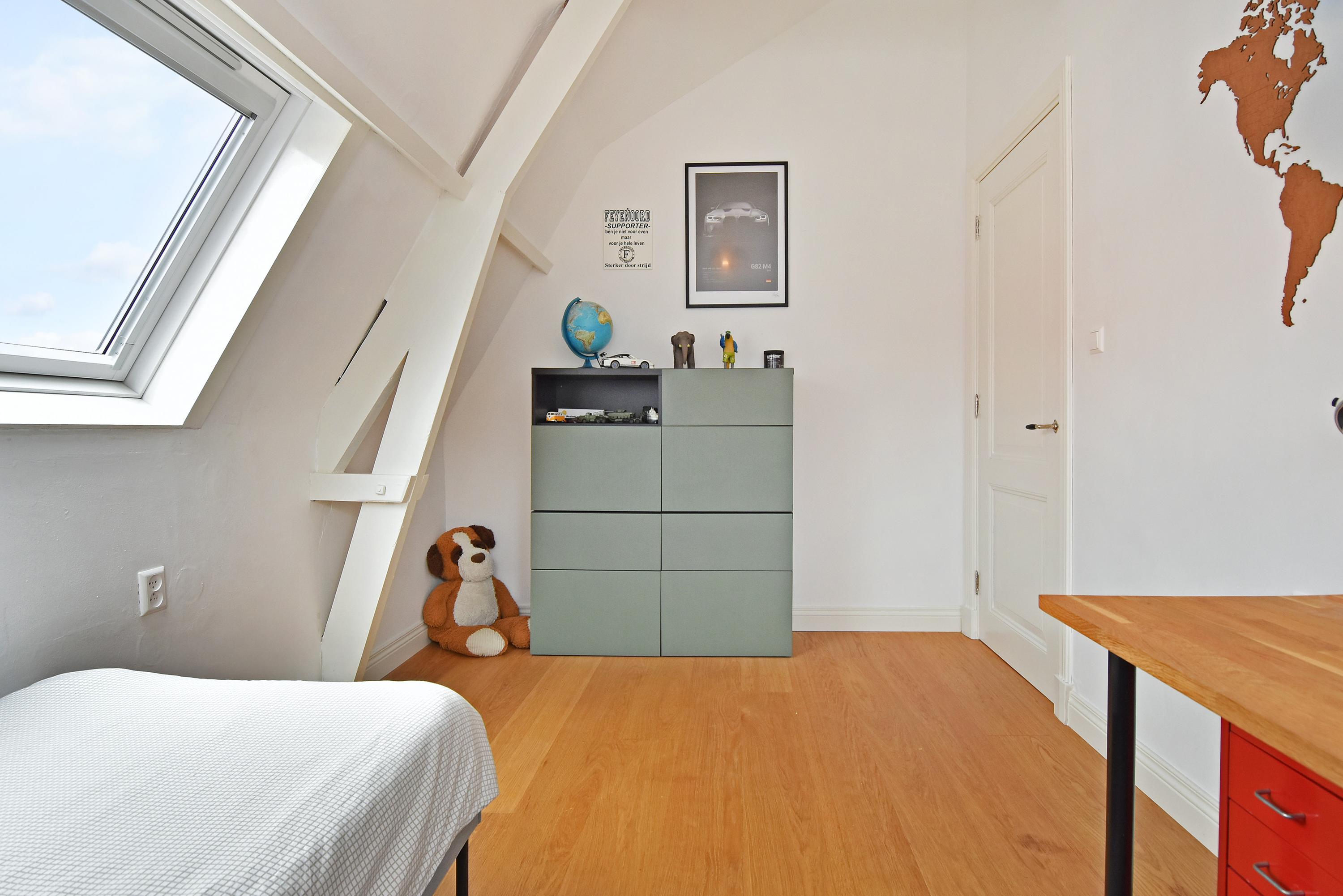 Al entrar, las fachadas de cristal altas y un techo que alcanza los 3,55 metros definen la cocina principal. Molduras de estuco y vidrieras preservadas celebran el linaje arquitectónico. La cocina, equipada con electrodomésticos de alta gama empotrados, se articula en torno a espacios para comer y socializar, flanqueados por dos amplias salas de estar. Un estudio integrado, con entrada independiente y baño con suelo radiante, puede adaptarse fácilmente como suite de invitados o zona de trabajo. En la planta baja hay amplios espacios de almacenamiento y acceso directo a Broerhuisstraat.
