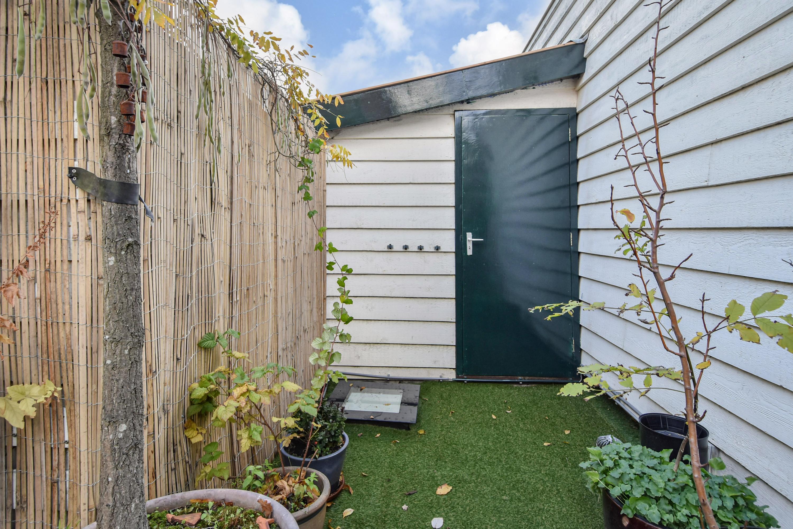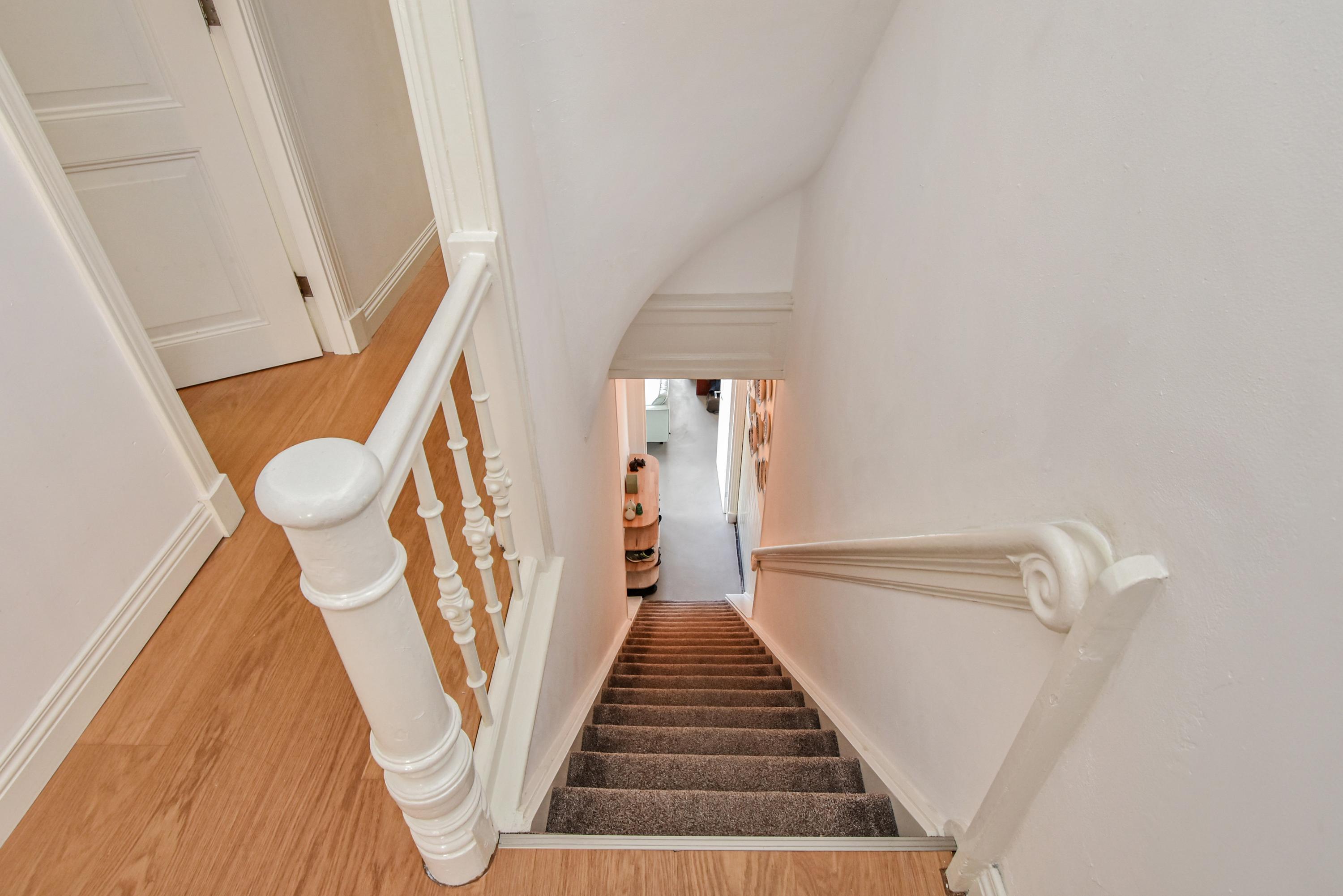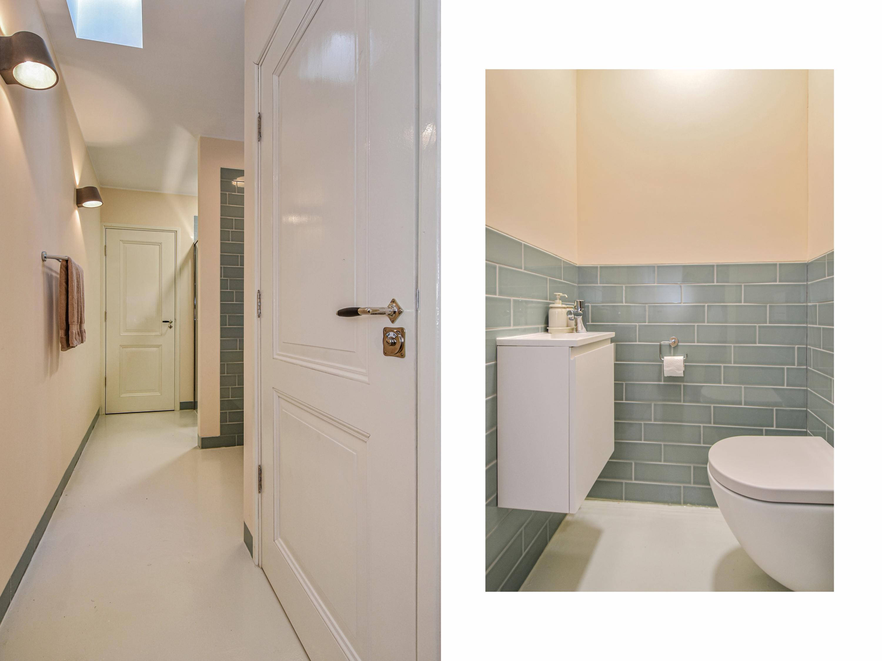 En la primera planta, tres grandes dormitorios evocan el carácter de época, incluyendo vistas al canal y vidrieras. Una lavandería conduce a un jardín privado en la azotea, un refugio verde poco común para disfrutar de sol y privacidad. La segunda planta ofrece tres dormitorios adicionales—uno con vigas vistas—y un baño lujoso con bañera, ducha a ras de suelo y detalles de diseño.