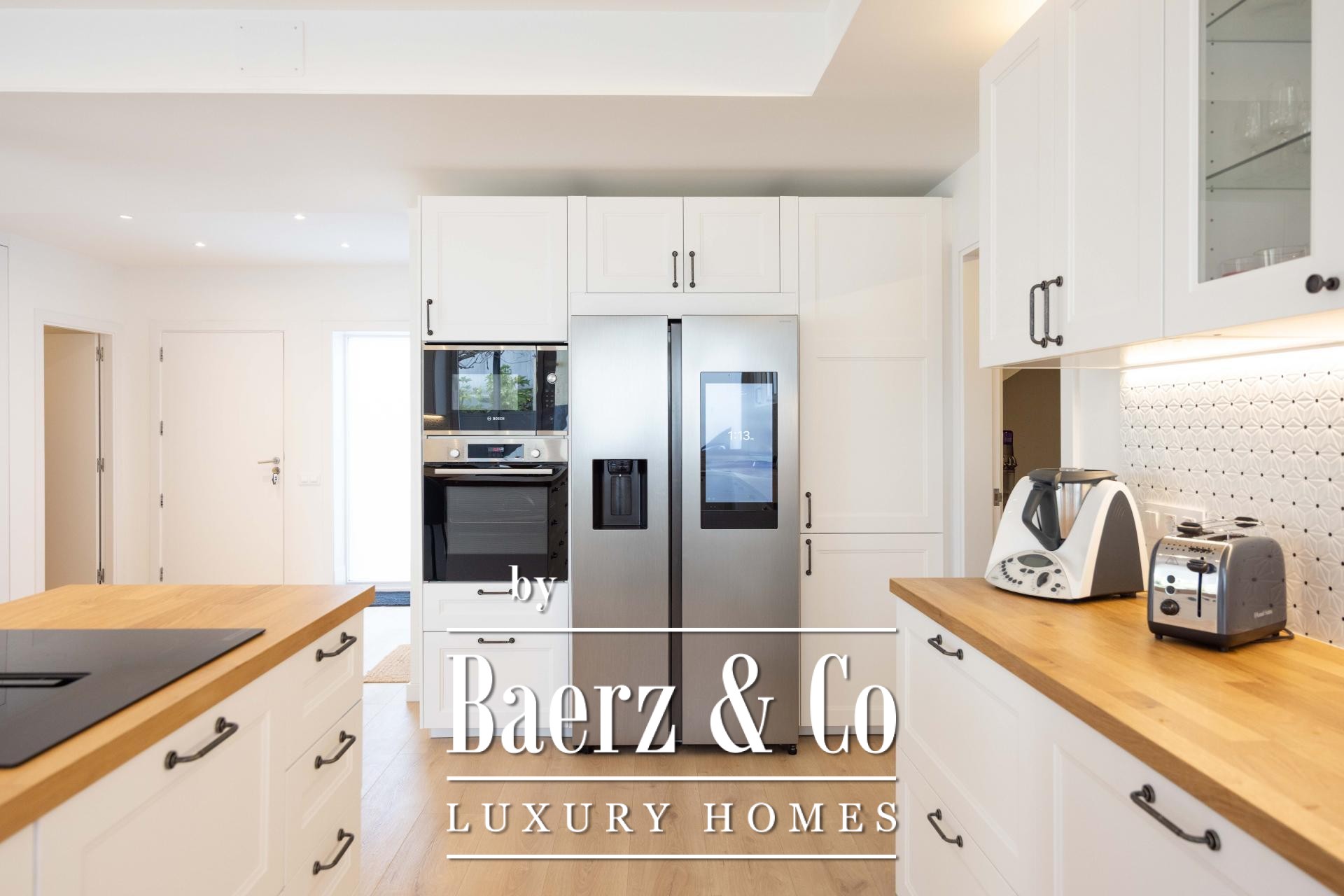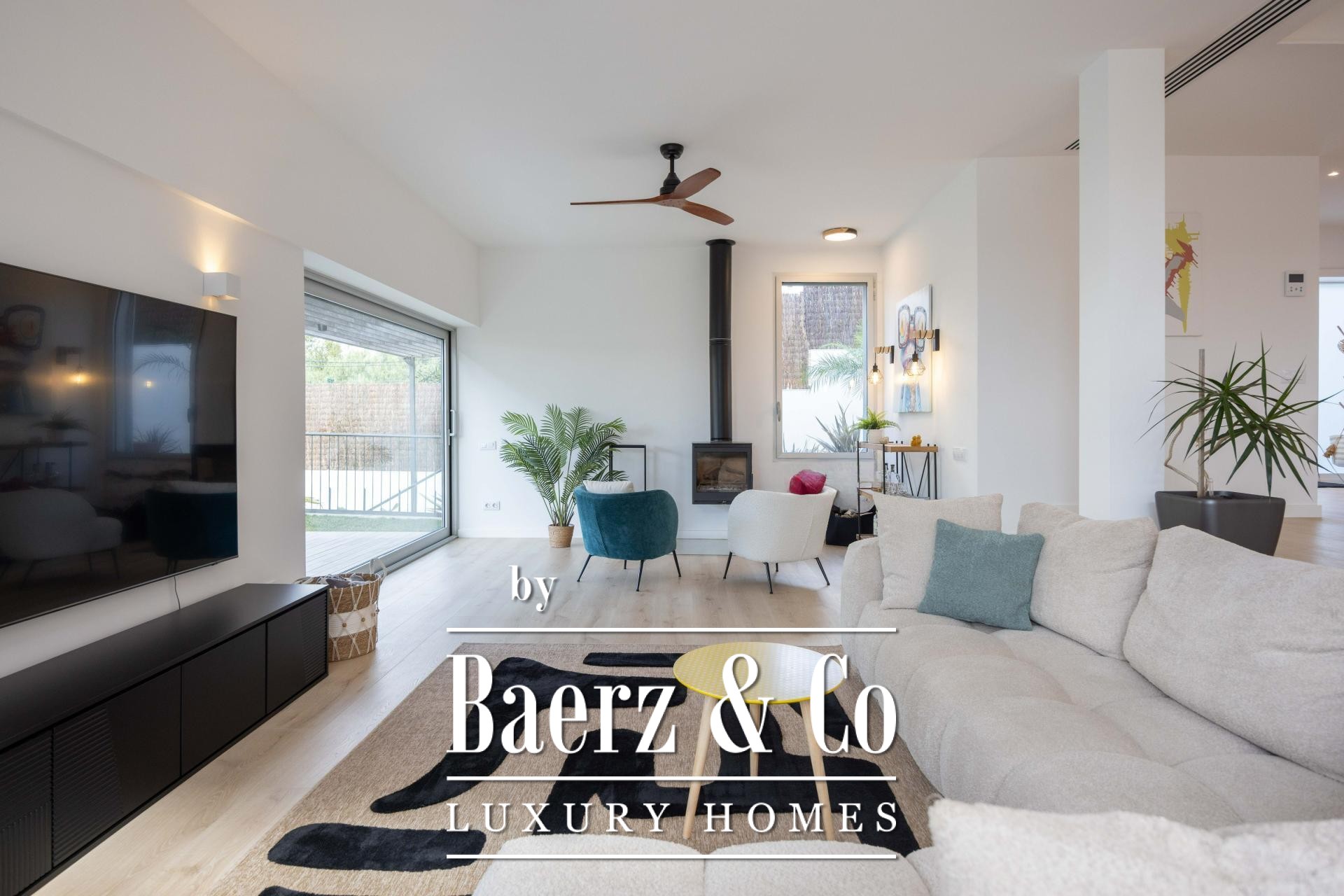La transición fluida entre el salón y la cocina abierta de diseño, equipada con electrodomésticos Bosch y frigorífico americano, permite disfrutar tanto de la intimidad familiar como de celebraciones sofisticadas. Una elegante chimenea de leña preside la zona principal, mientras los interiores transmiten un lujo discreto y una funcionalidad cuidada.