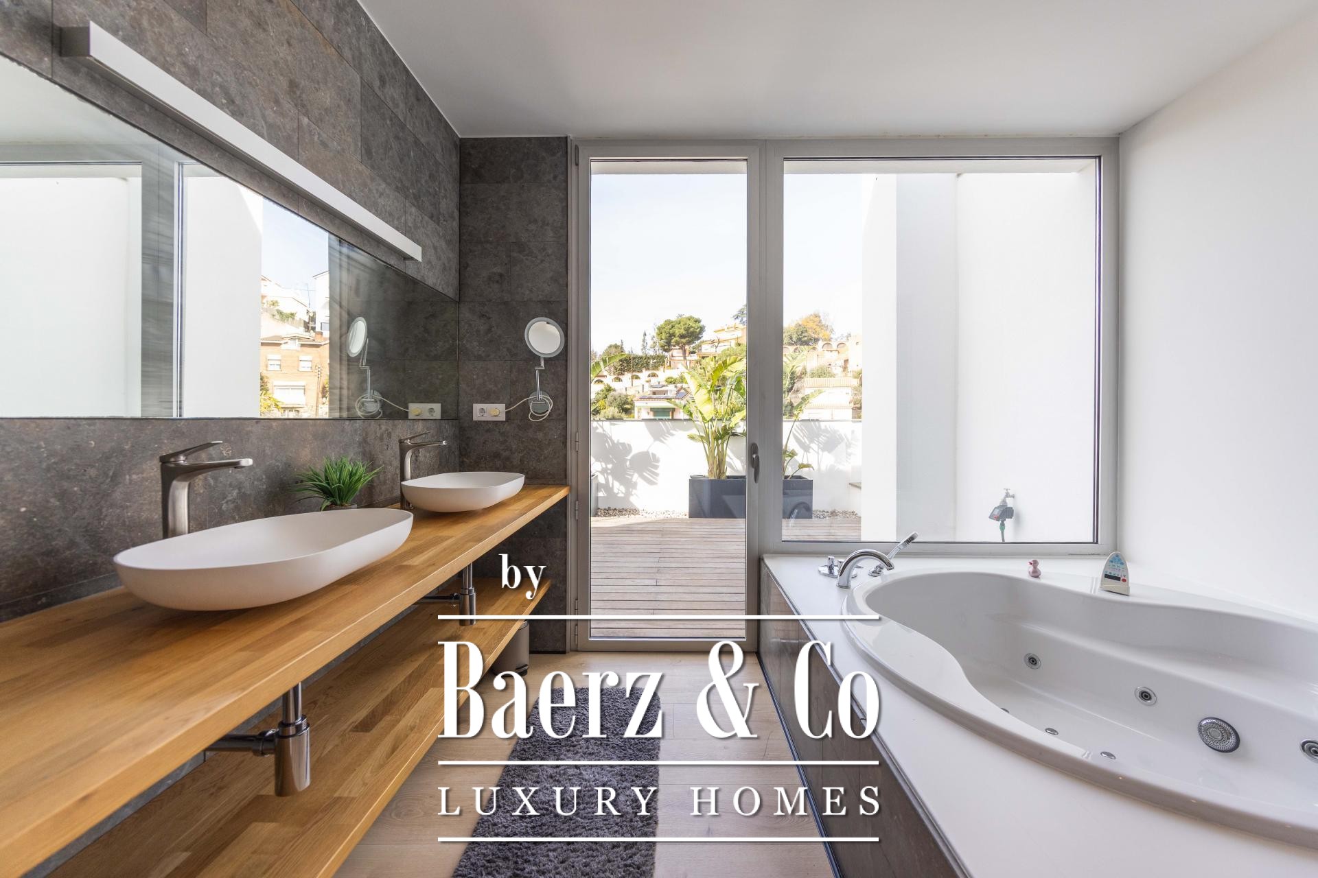 Cuatro terrazas ajardinadas invitan a disfrutar del exterior, rodeadas de palmeras y plataneros, césped cuidadosamente mantenido, una pérgola sombreada y una cocina de verano. La piscina de 7x5 m y la tarima de madera ofrecen un refugio privado y relajante. La suite principal se distingue por su vestidor, terraza privada y bañera de hidromasaje, y dos dormitorios adicionales acceden a un espacio exterior reservado. Un ascensor conecta las plantas para asegurar la máxima comodidad y facilidad de movimiento. La ubicación refinada en Esplugues de Llobregat garantiza discreción y acceso inmediato al corazón de Barcelona.