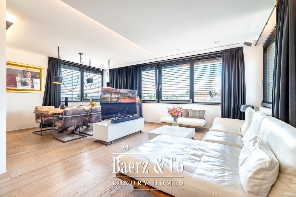 Penthouse Zagreb representa una rara convergencia entre discreción y diseño en Šalata, uno de los barrios más prestigiosos de la ciudad. Esta residencia de tres dormitorios abarca 184 m² distribuidos en dos niveles, conectados por una escalera interior e iluminados por amplias paredes de vidrio que enmarcan vistas panorámicas de Zagreb.