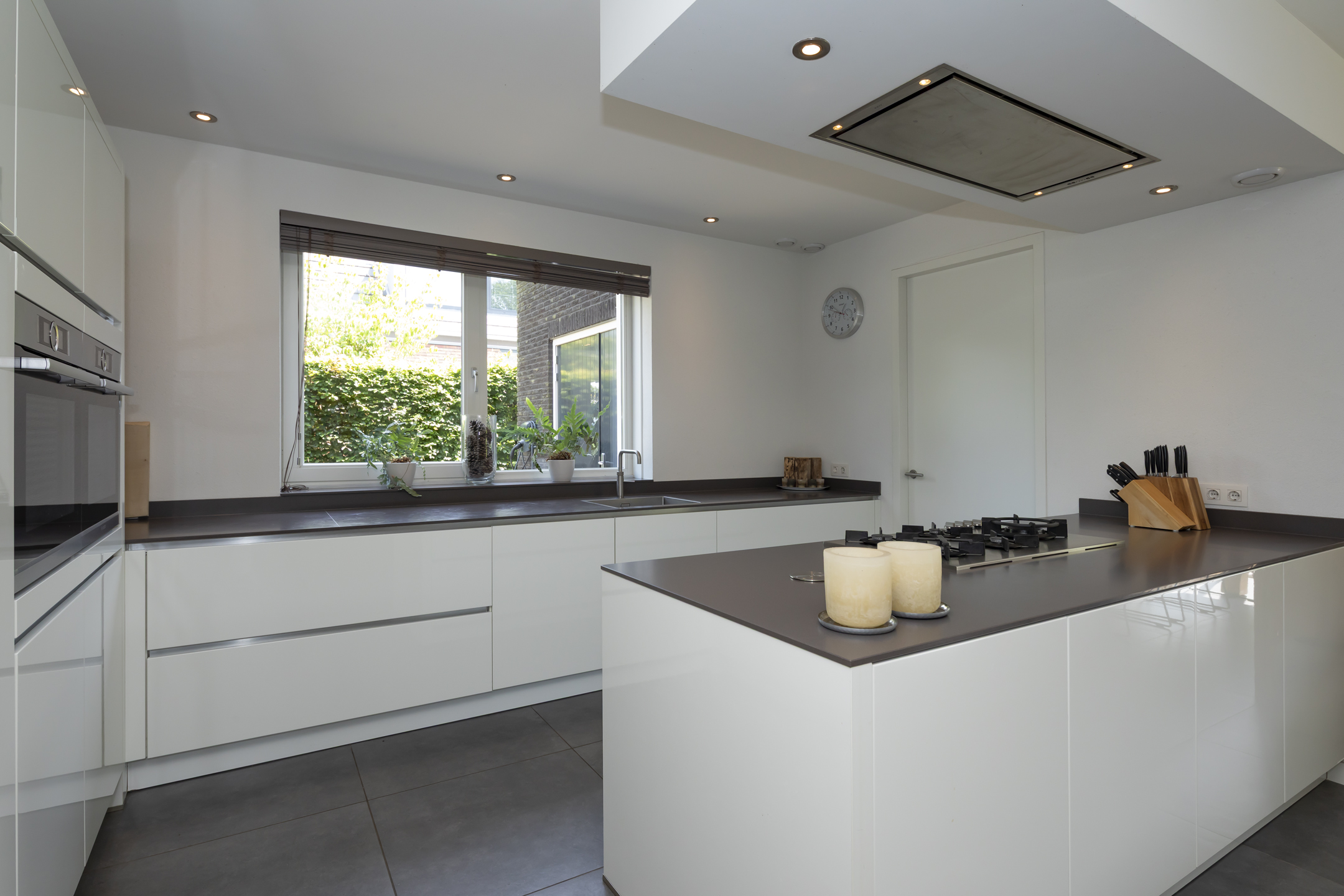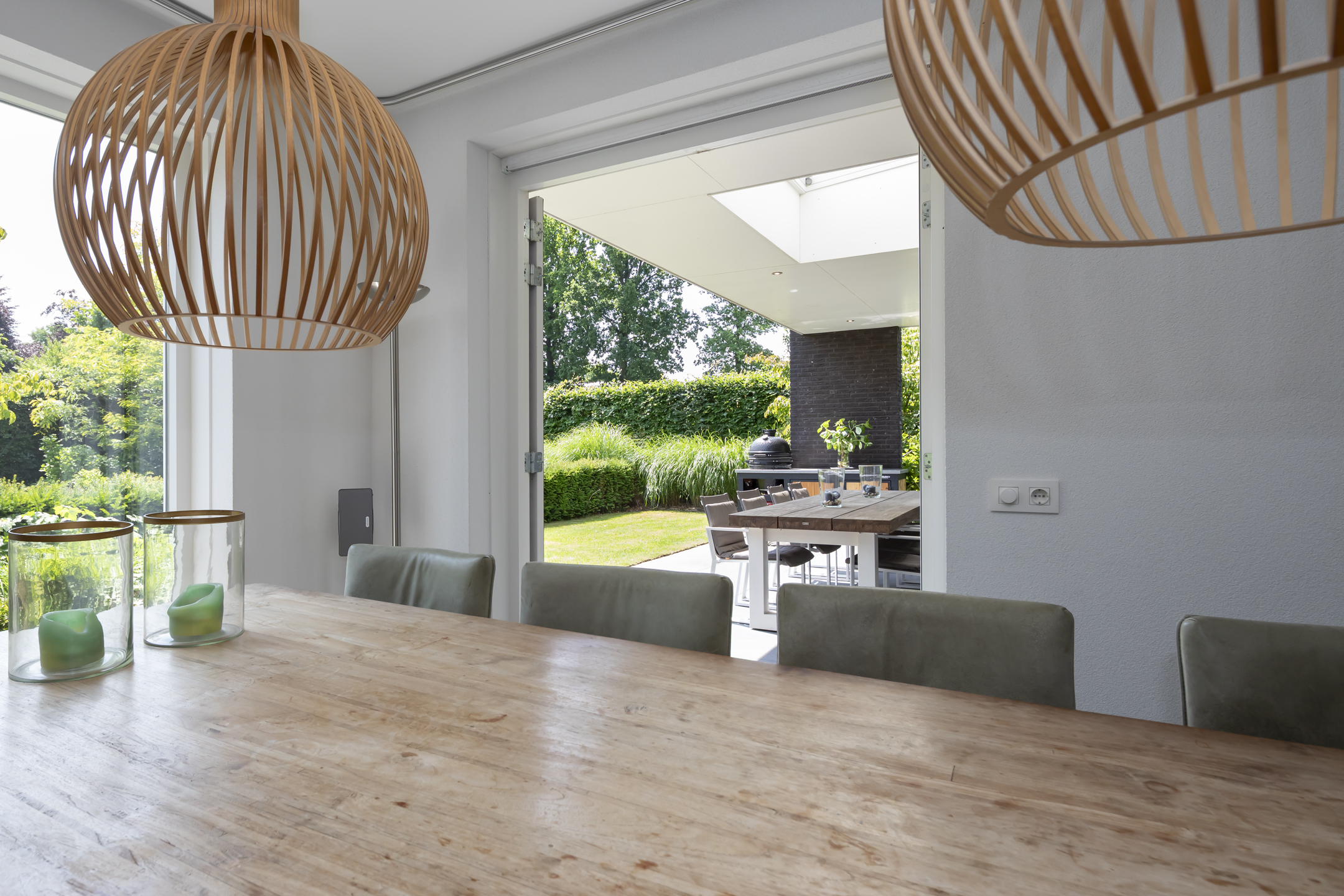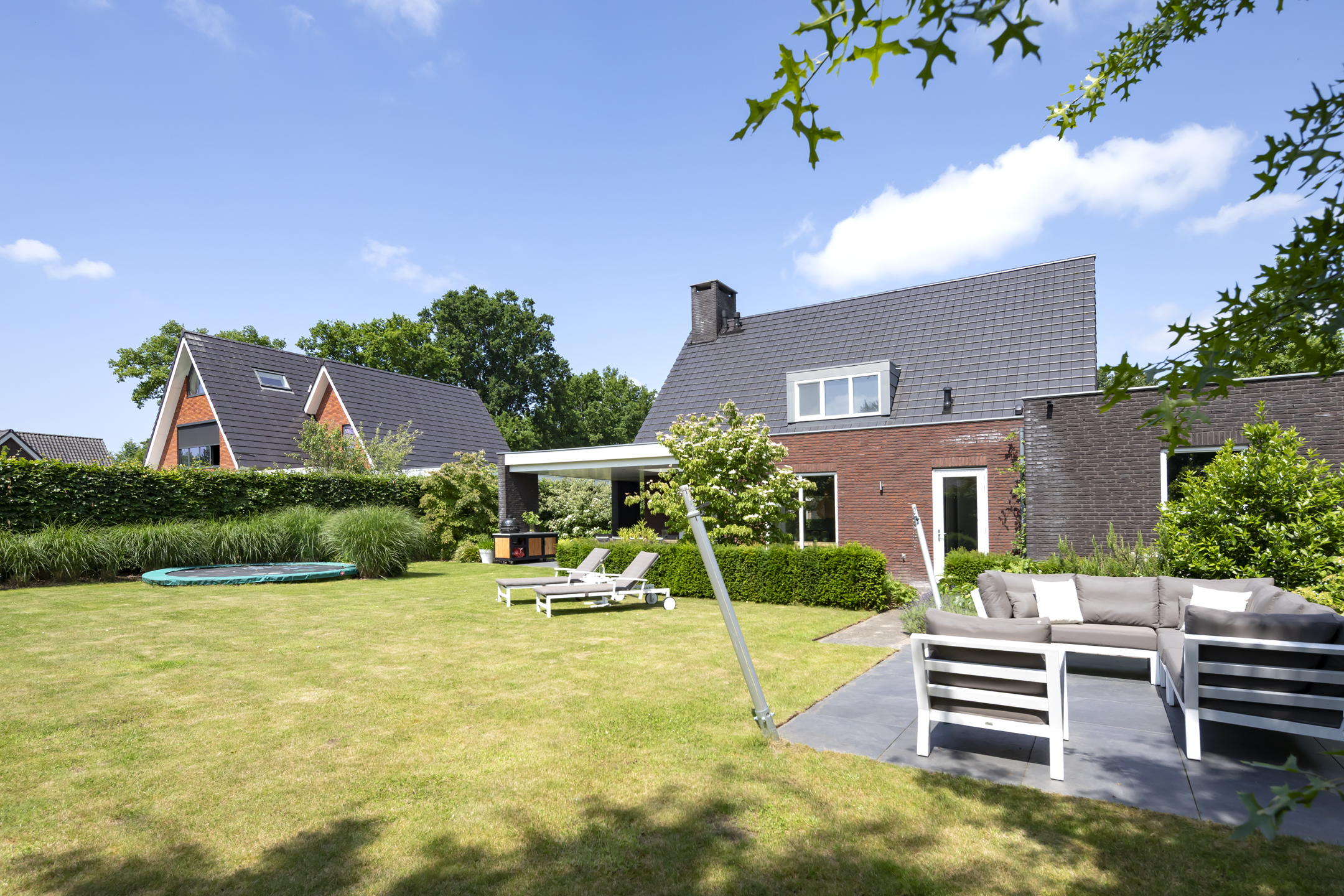 Esta casa familiar en Haaren ofrece una extraordinaria combinación de privacidad y amplitud, ubicada en una generosa parcela de 918 m² en las afueras del pueblo. Con una superficie habitable de 184 m², la vivienda dispone de cuatro dormitorios en una sola planta, lo que la convierte en una opción ideal para una convivencia familiar armoniosa. El diseño cuidadoso se refleja en la transición desde un luminoso salón—con grandes ventanales y chimenea central—hacia una cocina moderna de concepto abierto, acabada en blanco brillante con encimera de material compuesto, grifo Quooker y dos hornos. Un amplio lavadero conecta el garaje y el jardín, optimizando la funcionalidad diaria.