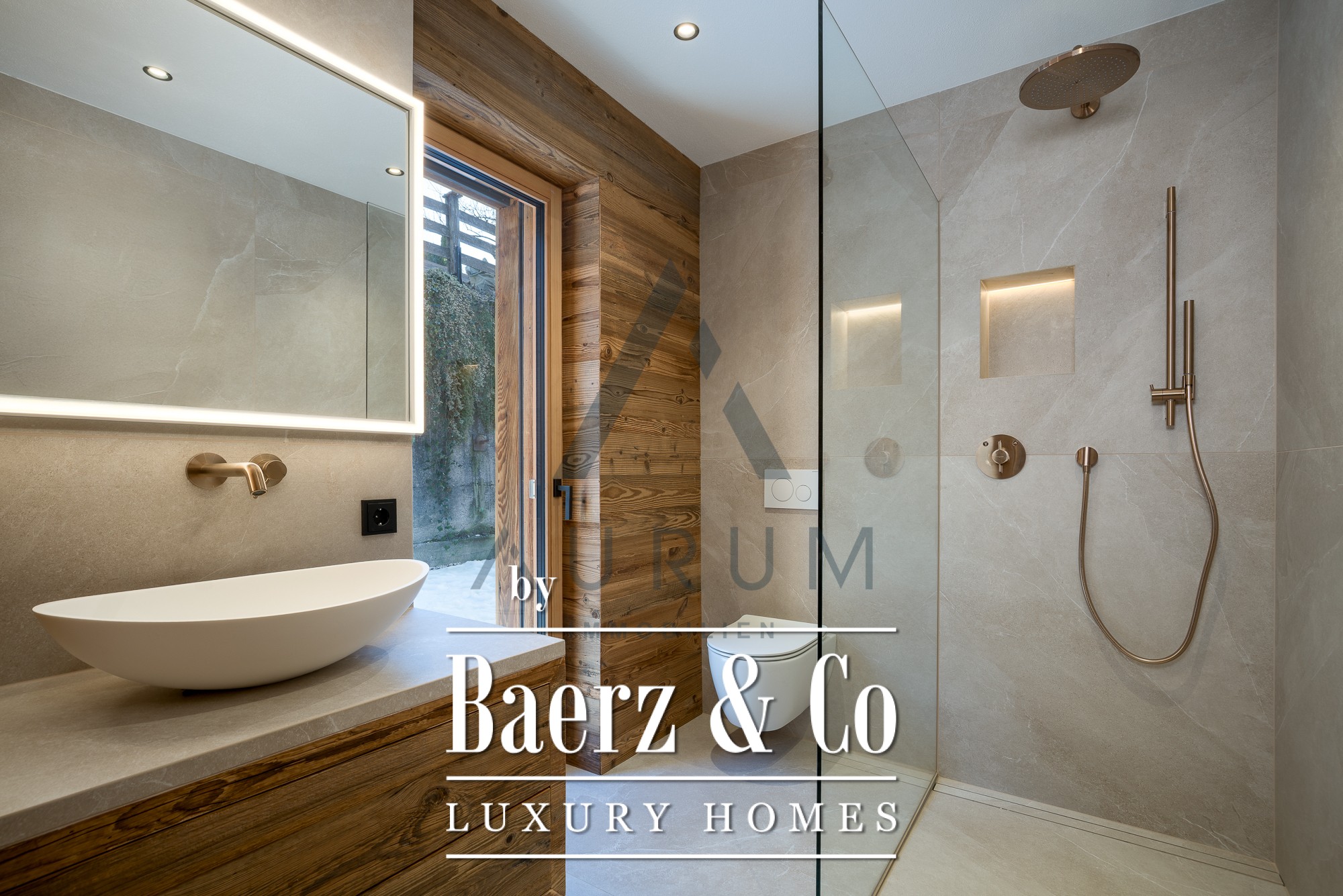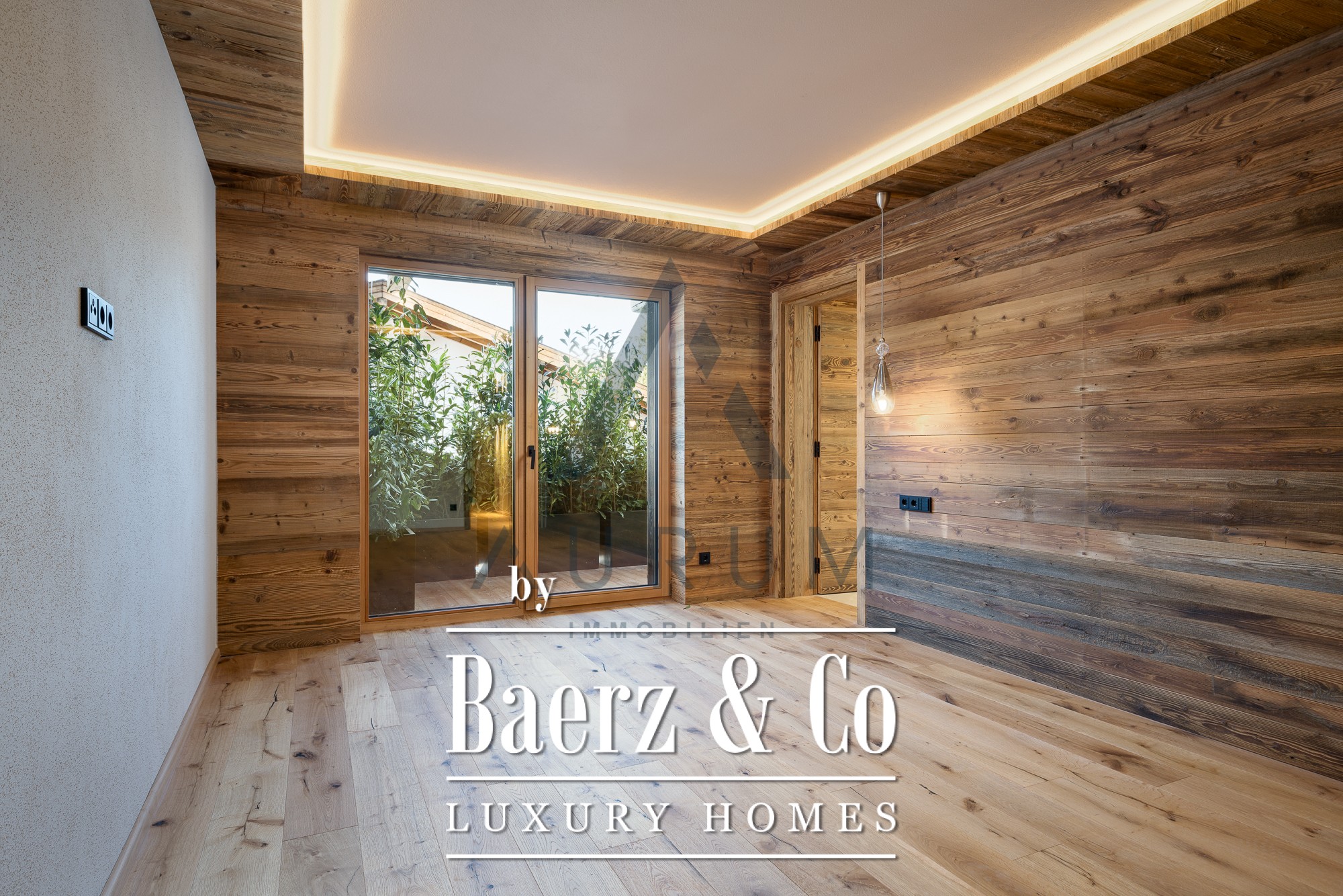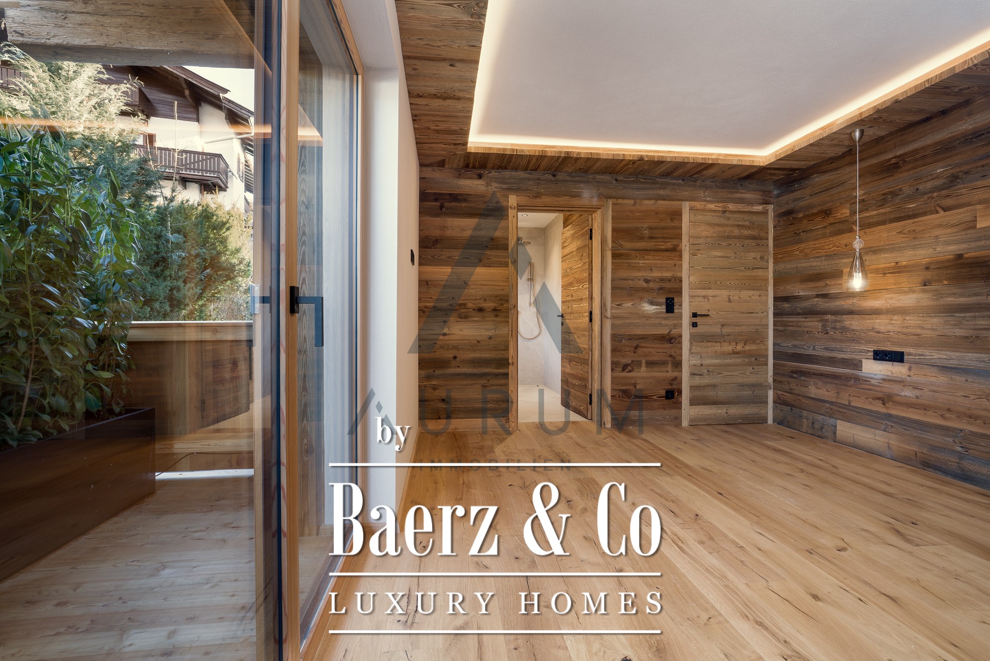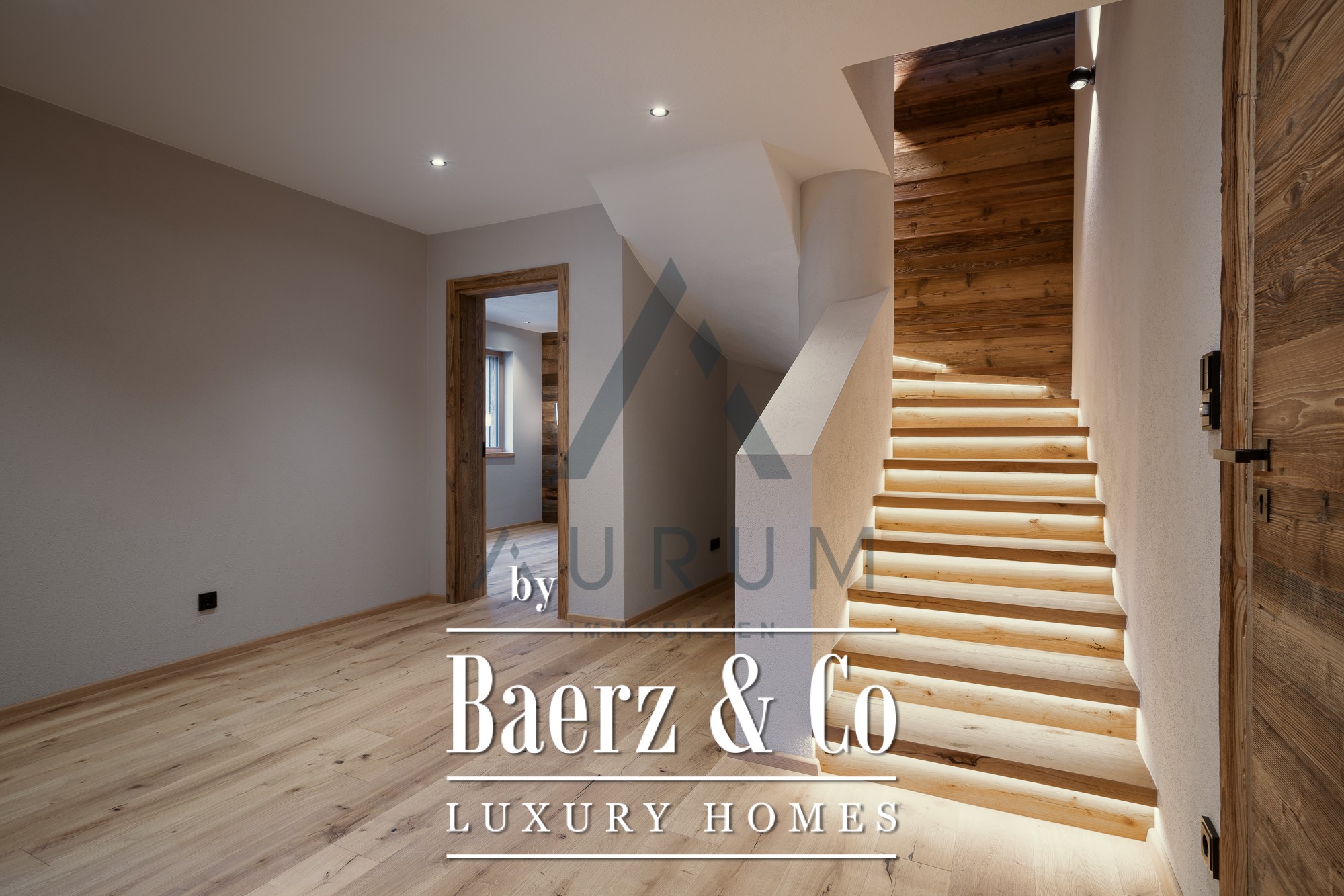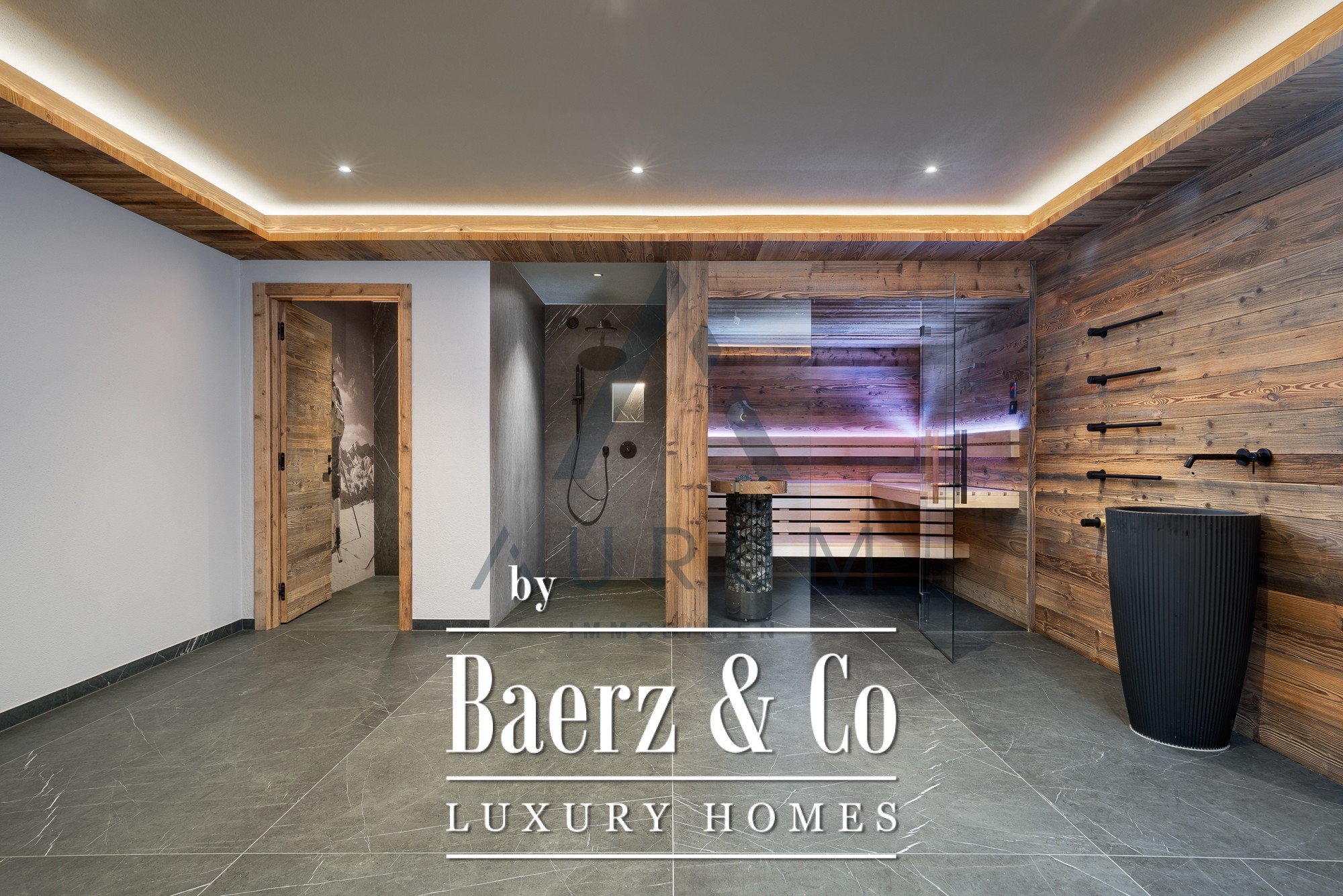 La zona privada de wellness, a la que se accede en ascensor, dispone de sauna de madera recuperada, ducha wellness, bañera exenta y un rincón para el descanso, complementado por suelos de madera maciza y acabados refinados. Dos plazas de garaje, calefacción por suelo radiante de última generación, sistema BUS e iluminación Occhio completan el lujo discreto. Aquí, los materiales auténticos y el confort controlado cimentan una atmósfera enraizada en el paisaje, elevada por el diseño contemporáneo.