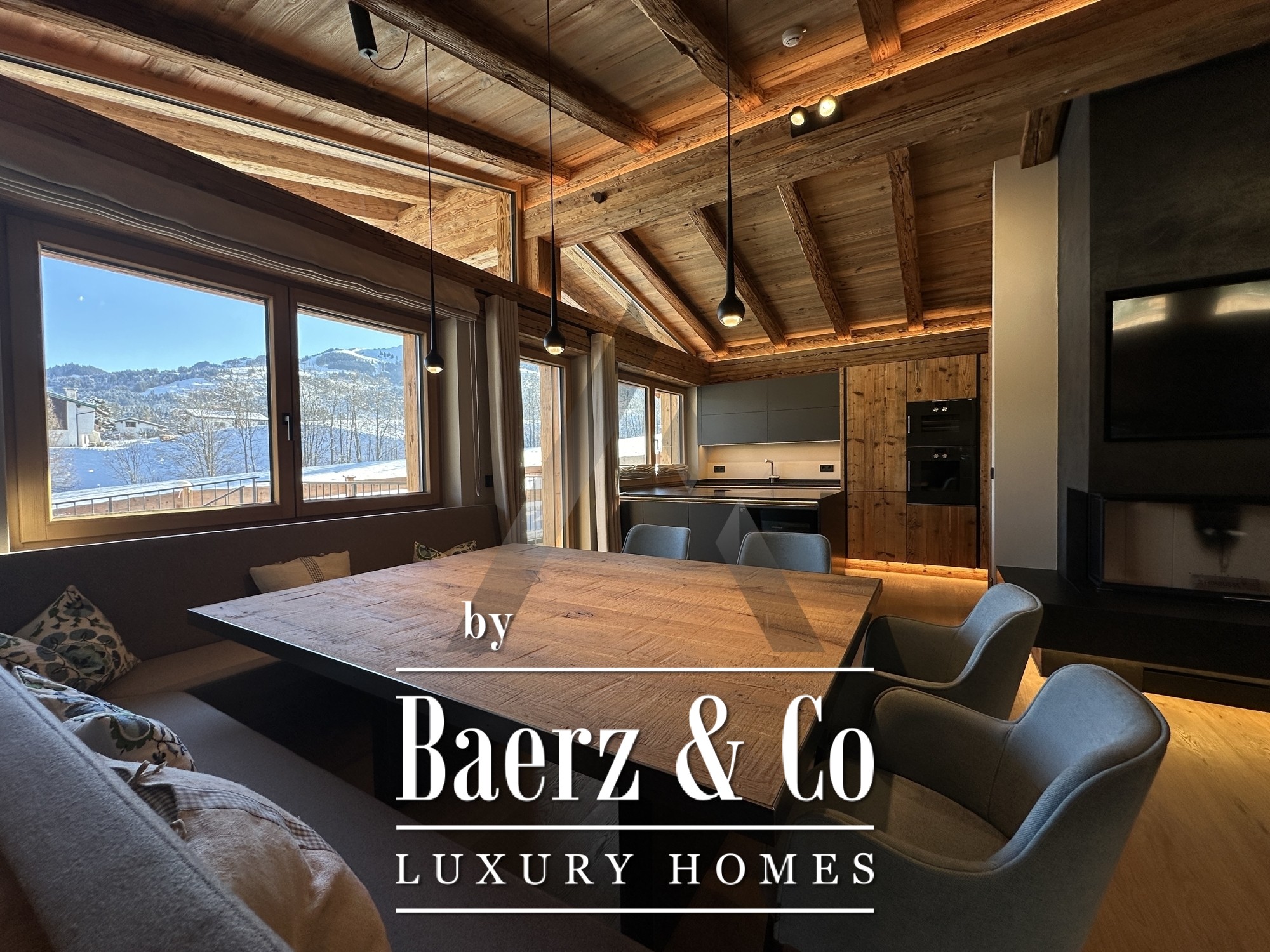Los chalets se entregan totalmente amueblados, luciendo acabados elegantes y materiales de primera clase — desde vigas de madera recuperada y suelos de roble, hasta electrodomésticos Gaggenau, Miele, Bora y Liebherr. Las zonas de estar se abren a amplias terrazas y balcones, algunos con jardines privados, mientras que las comodidades incluyen zonas wellness con sauna, chimeneas, baños Dornbracht, sistemas de alarma y tecnología doméstica avanzada. Las distribuciones están diseñadas para el confort y la privacidad de los huéspedes, con cada unidad ofreciendo dos plazas de garaje subterráneo o cubierto y sistemas de ventilación en el salón, y la mayoría con acceso en ascensor.