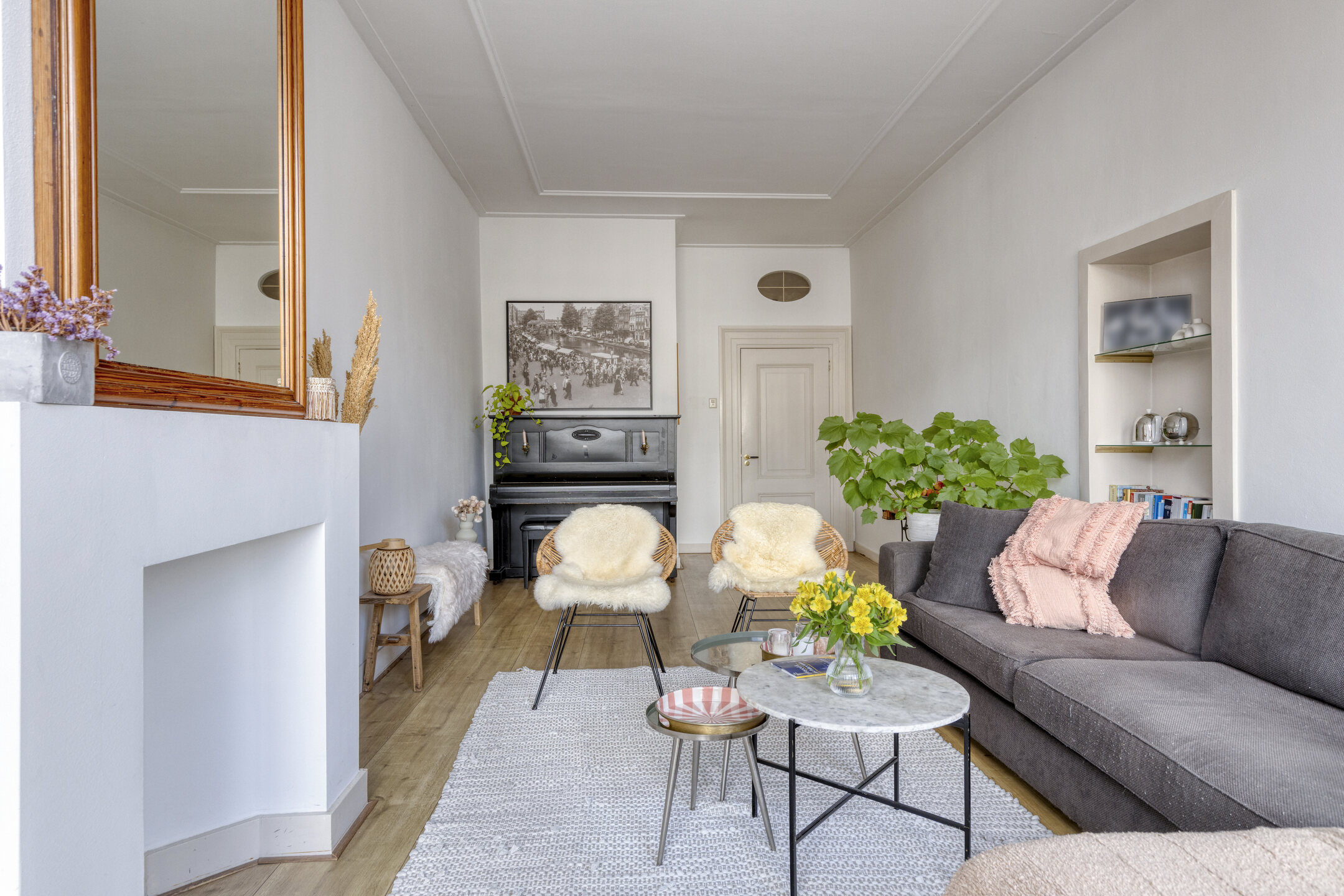 Tres terrazas diferenciadas en la azotea, incluida una espaciosa junto a la cocina y el comedor, ofrecen un espacio exterior inusual para la vida urbana. Las dos cocinas de la casa —una especialmente adecuada para amantes de la gastronomía— invitan a disfrutar del célebre mercado de Leiden y de sus productoras locales, situadas a pocos pasos de la entrada principal. Hay abundante almacenamiento en sótano, bodega y ático, lo que permite disfrutar de un nivel de orden y posibilidades excepcionales.