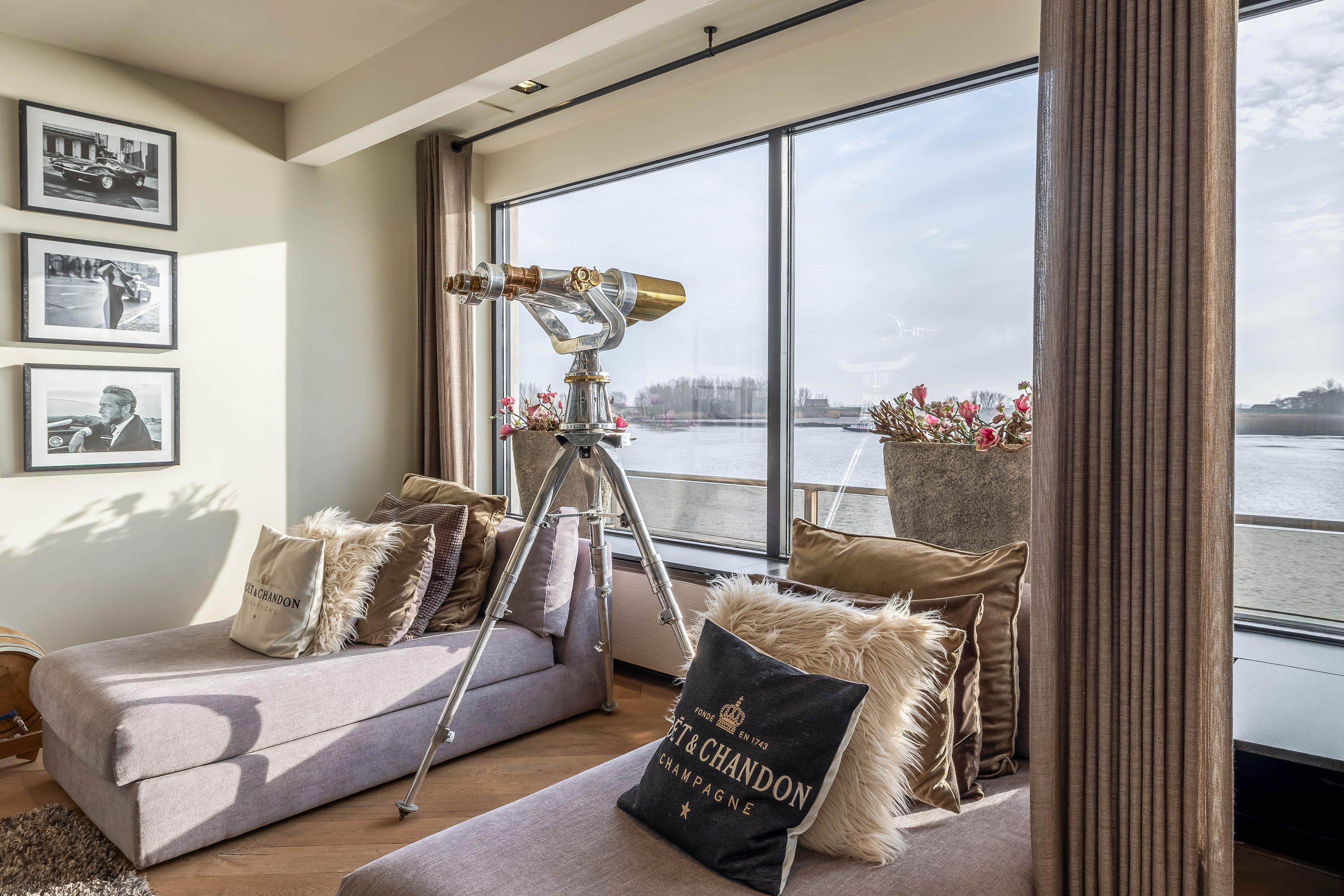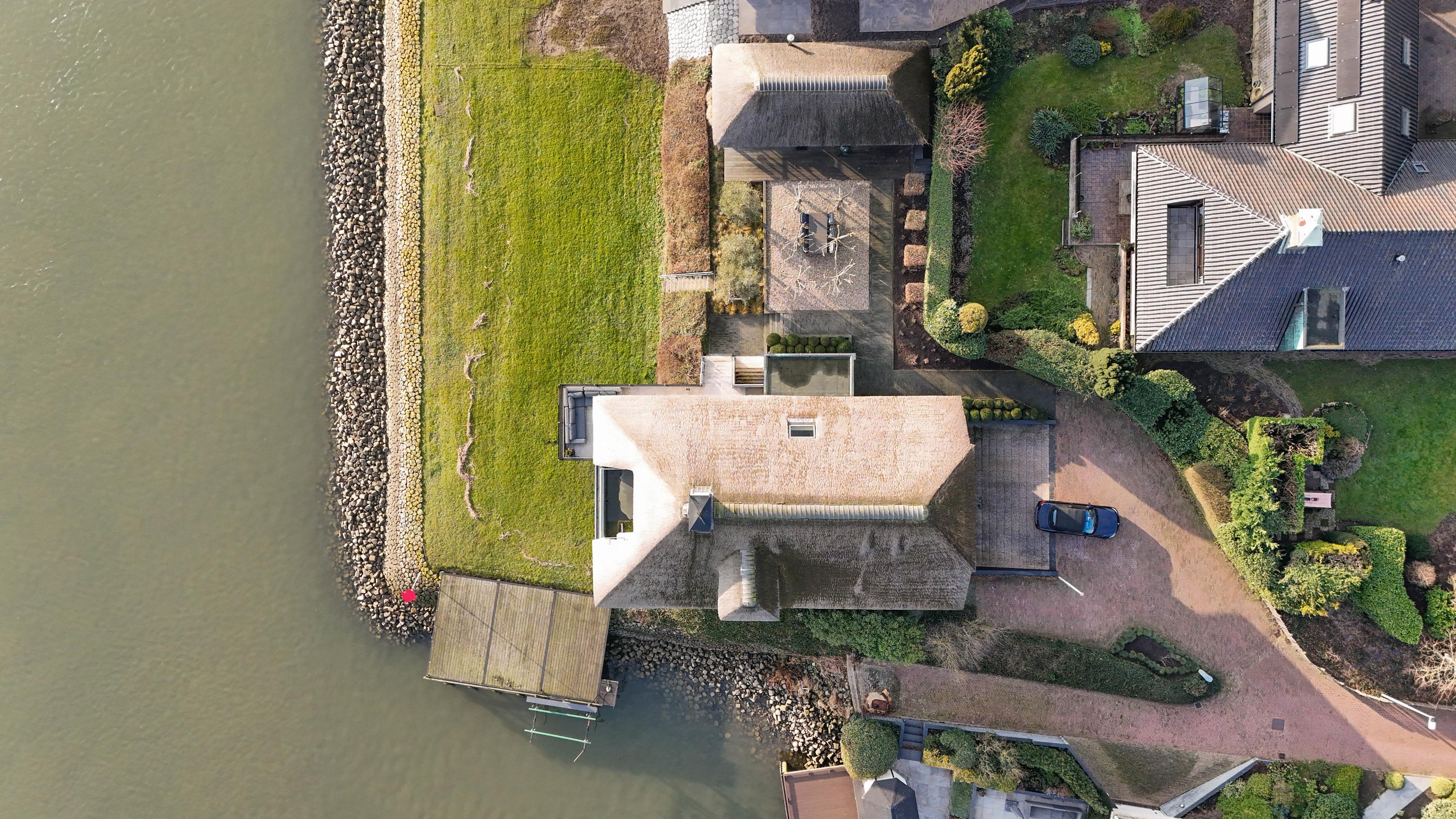 La villa con tejado de paja en Lekkerkerk ofrece una oportunidad poco común de vivir en una residencia frente al río, marcada por la distinción y la comodidad. Situada directamente a orillas del río Lek, esta villa se integra a la perfección con su entorno y proporciona acceso directo al agua mediante un embarcadero y elevador de barcos privados. La vivienda se asienta sobre una parcela de propiedad absoluta de 1.342 m², con una superficie habitable de 235 m² y otros 111 m² de espacios interiores adicionales. Refinada en cada detalle, la arquitectura de la villa conecta el interior y el exterior, distribuyéndose en cuatro plantas que crean una cuidada sensación de amplitud y privacidad.