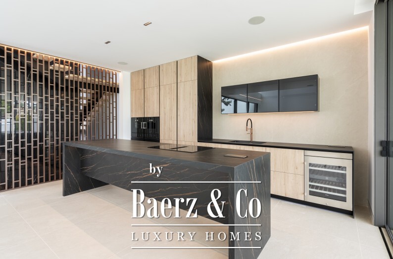 Las cuatro plantas distintivas de la propiedad están conectadas por una elegante escalera. Las zonas de estar y comedor de concepto abierto fluyen hacia una terraza soleada, ideal para reuniones y disfrutar del estilo de vida al aire libre de Marbella. Una cocina equipada con Gaggenau y armarios a medida destacan la atención al detalle y la comodidad diaria de la vivienda.