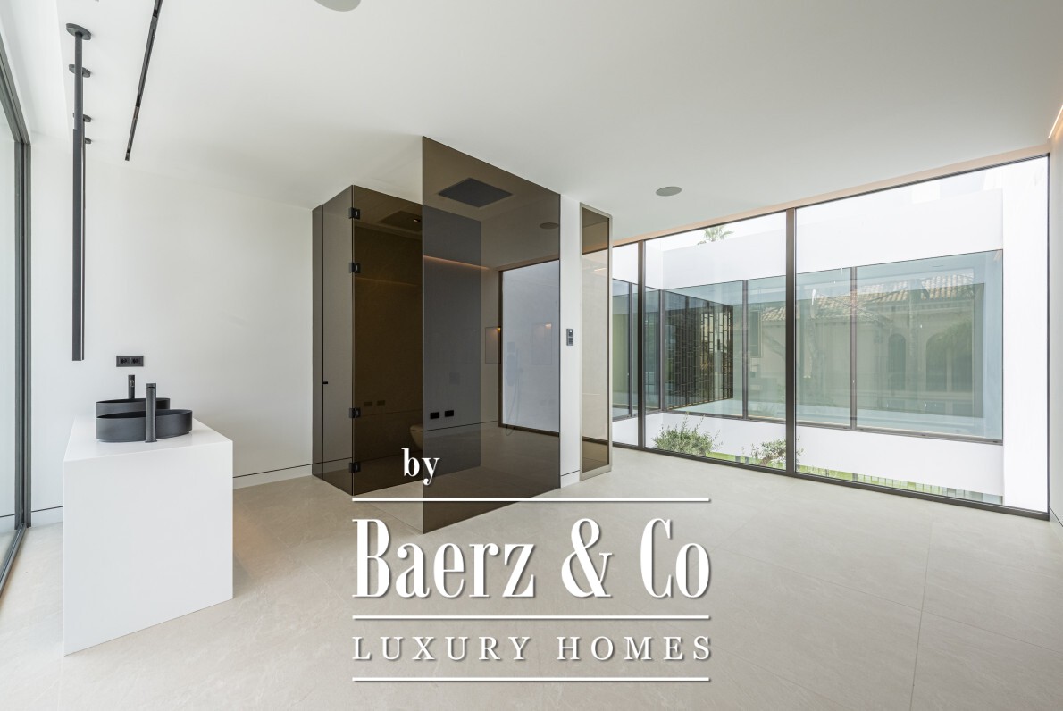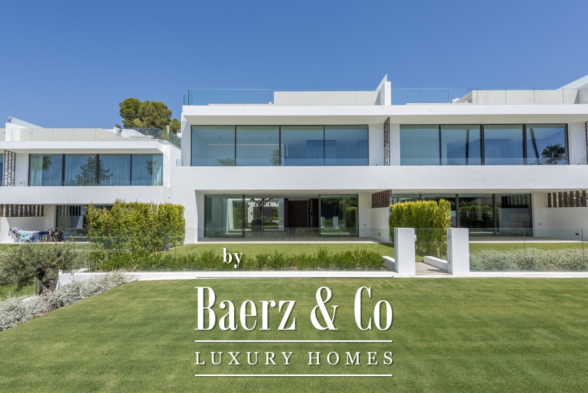 Este chalet pareado en Marbella está situado en el corazón de Nueva Andalucía, rodeado de los campos de golf más codiciados de la región y a pocos minutos de restaurantes con estrella Michelin, playas vírgenes y la vibrante energía de Puerto Banús. Completada en diciembre de 2023, la villa refleja una visión contemporánea contenida, con aproximadamente 423 m² de espacio interior, 246 m² de terrazas que la rodean y un jardín privado de 91 m².