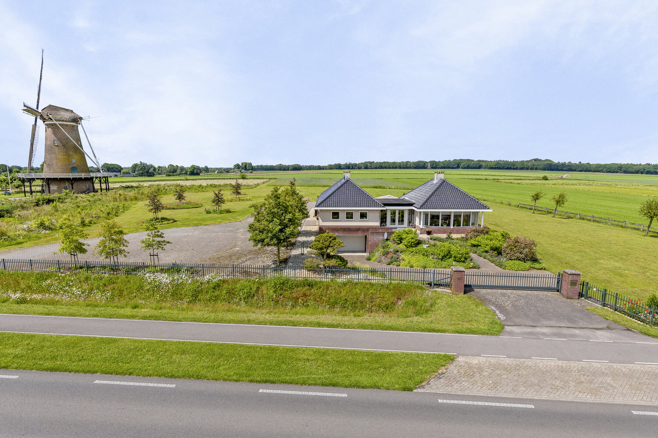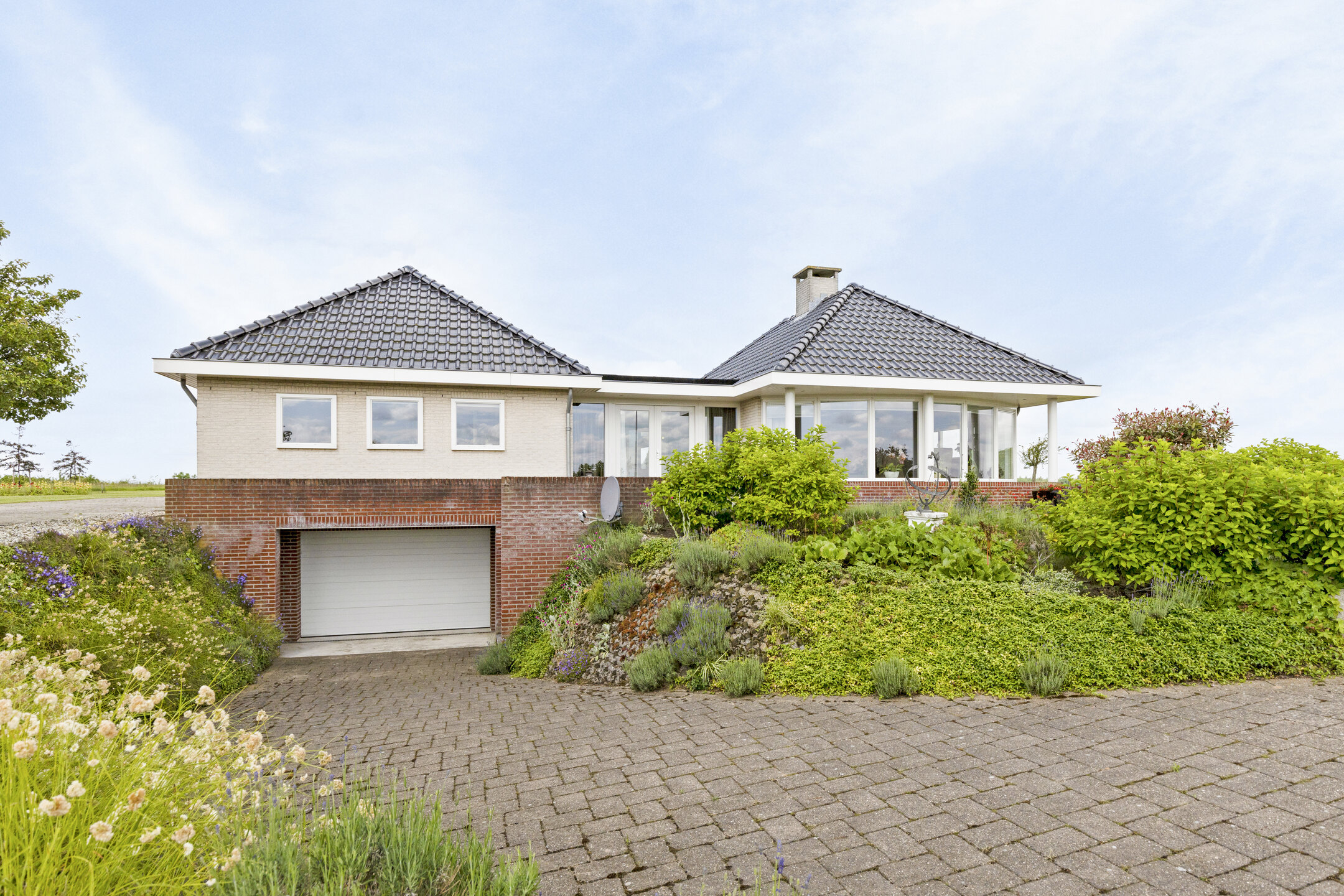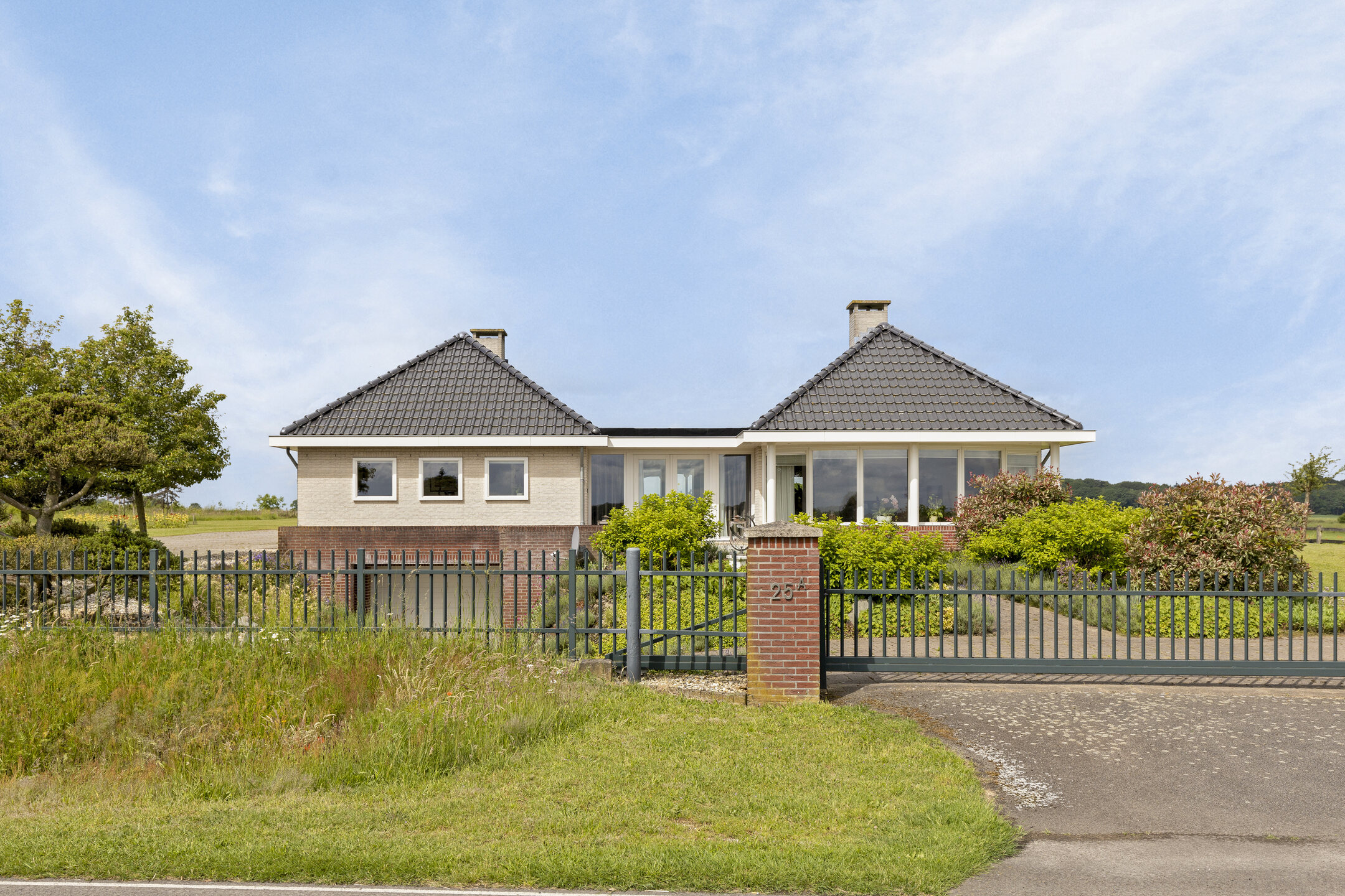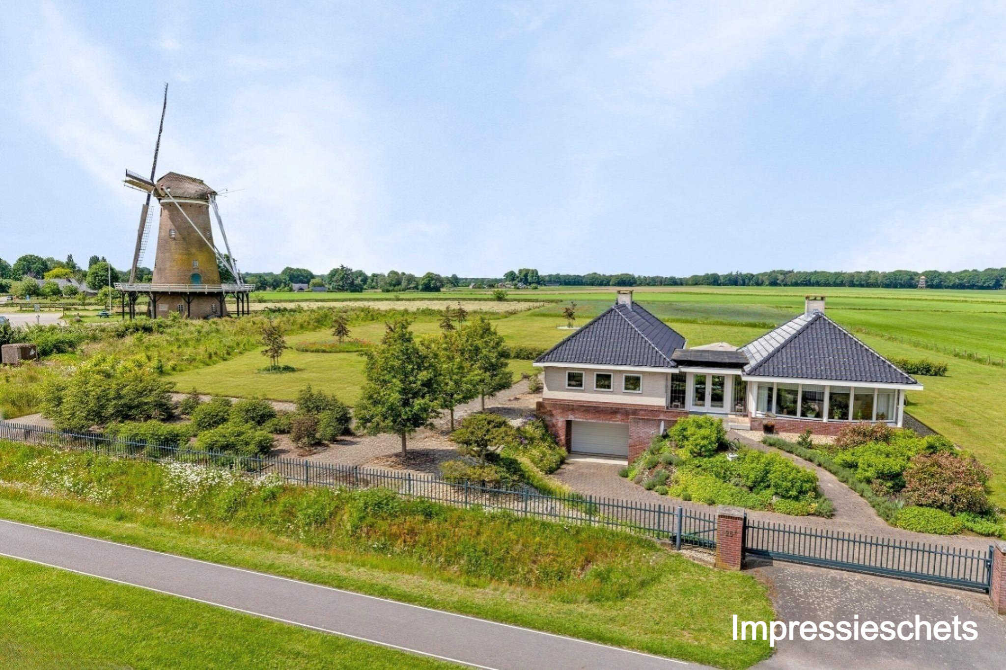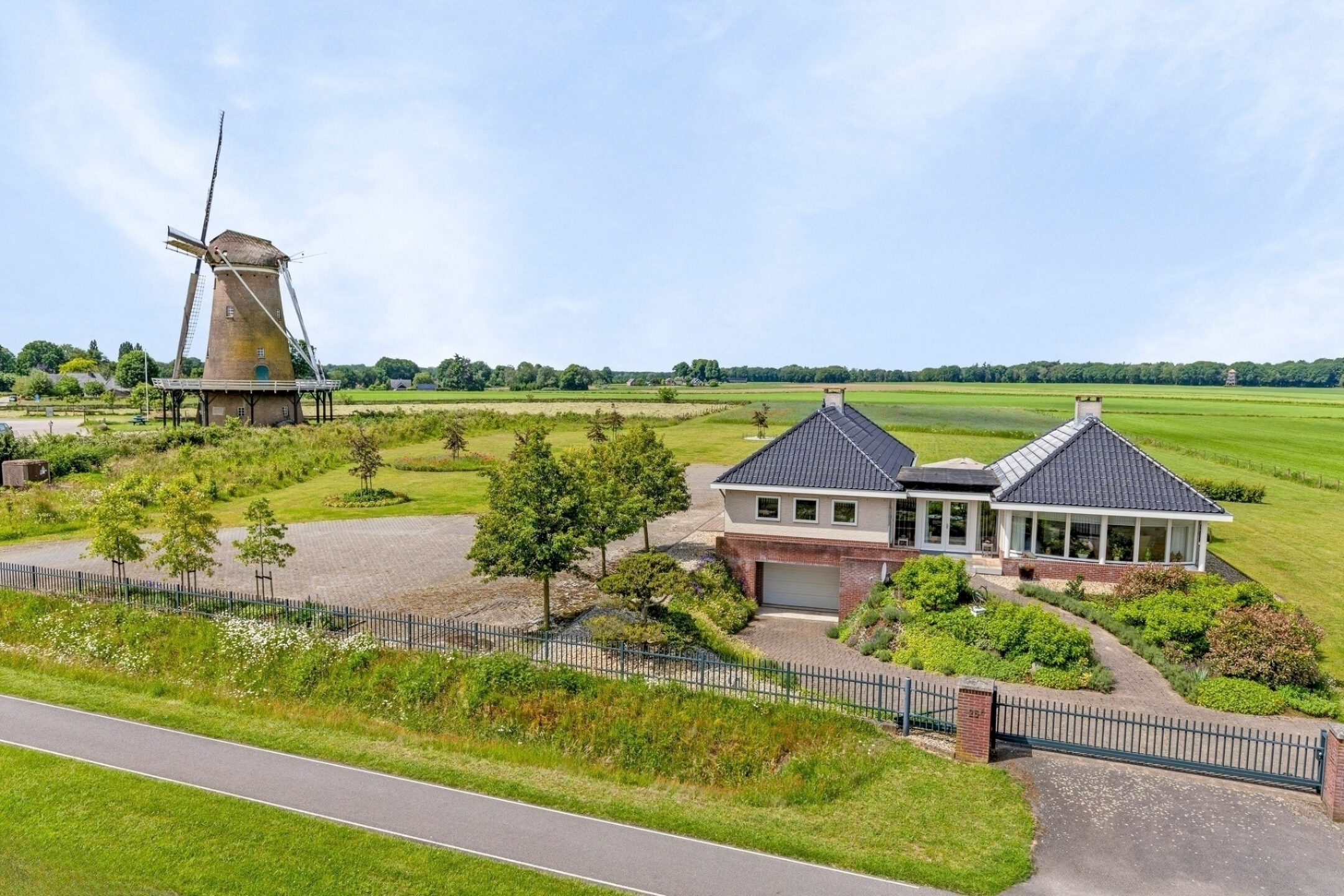 La casa de campo Neede se alza en una ubicación única sobre el Needse Berg, a 36 metros sobre el nivel del mar, ofreciendo extraordinarias vistas panorámicas de 360º sobre un paisaje en constante cambio. Esta propiedad combina presencia arquitectónica con una superficie habitable de 188 m², distribuidos en una sola planta con tres dormitorios, abundante luz natural y una distribución cuidadosamente diseñada. La casa de campo Neede proporciona una sensación de amplitud y claridad rara vez encontrada, donde jardín, cielo y estaciones se entrelazan en perfecta armonía.
