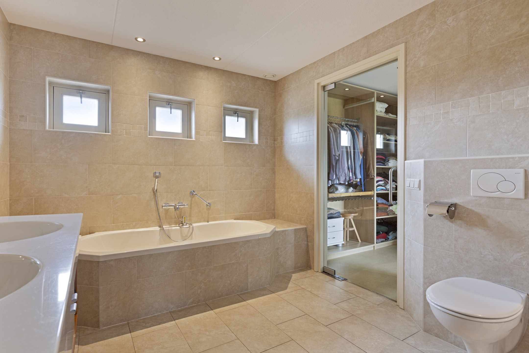 En el interior, el diseño se define por grandes espacios luminosos y acabados de calidad: suelos de cerámica con calefacción radiante, muebles de cocina en nogal y encimera de granito. El salón principal se abre al jardín y al horizonte a través de un ventanal semicircular y cuenta con chimenea de gas. La cocina abierta se orienta hacia el paisaje, mientras los dormitorios ofrecen distintas perspectivas, incluido el principal con vistas al jardín y un vestidor. El certificado energético clase A de la villa está garantizado por el amplio aislamiento de tejado, paredes y suelo, además de ventilación mecánica eficiente.