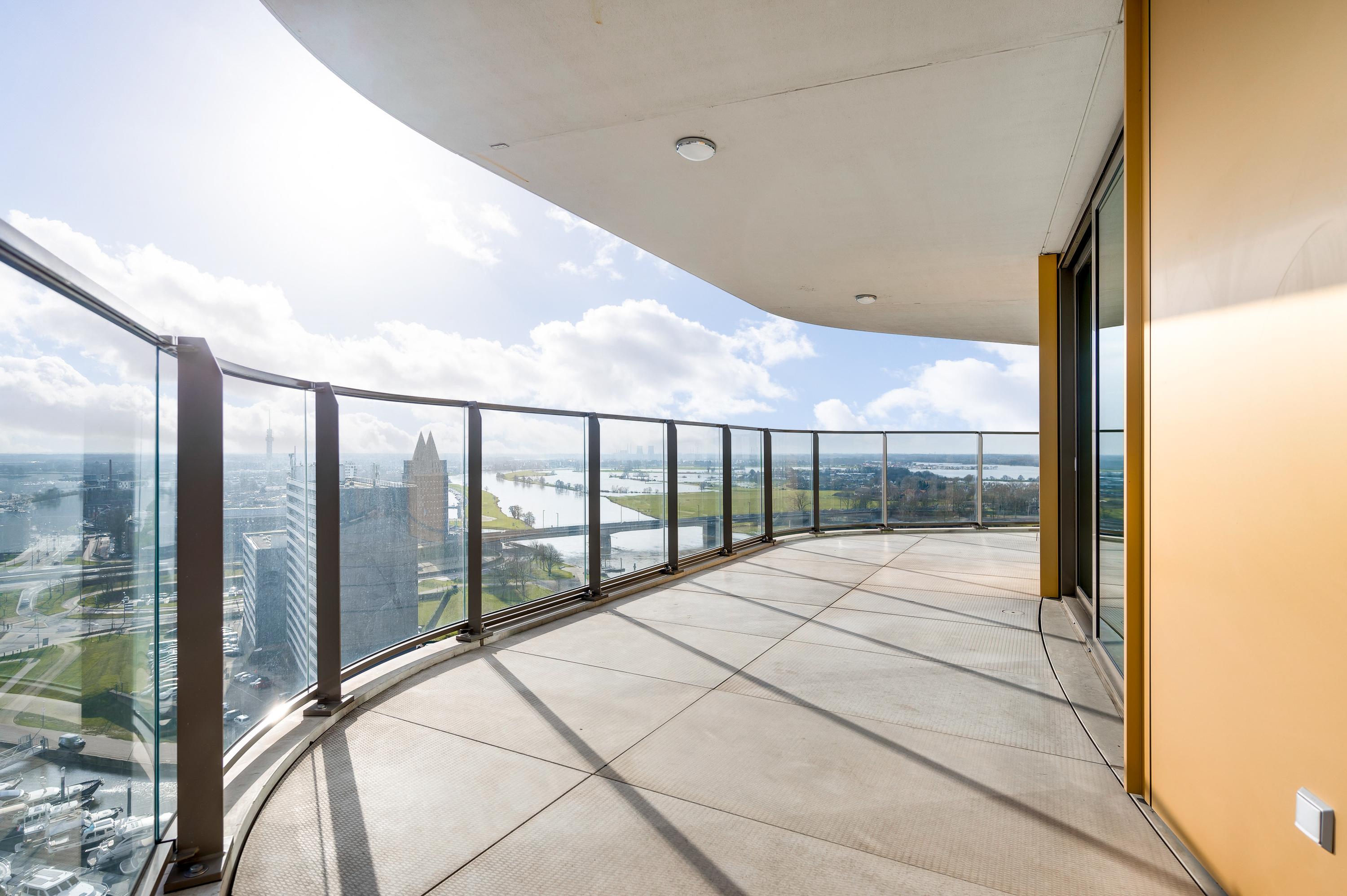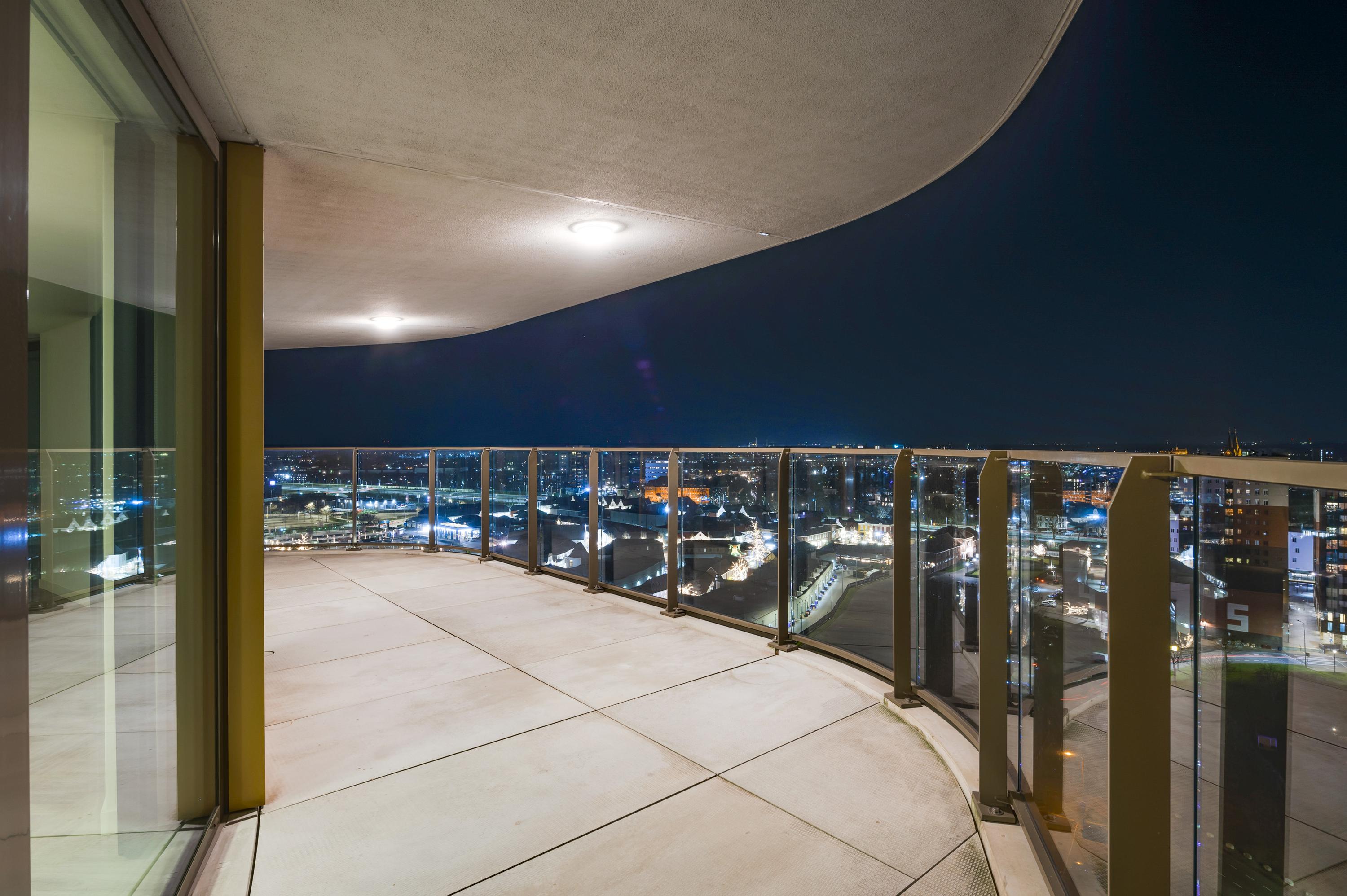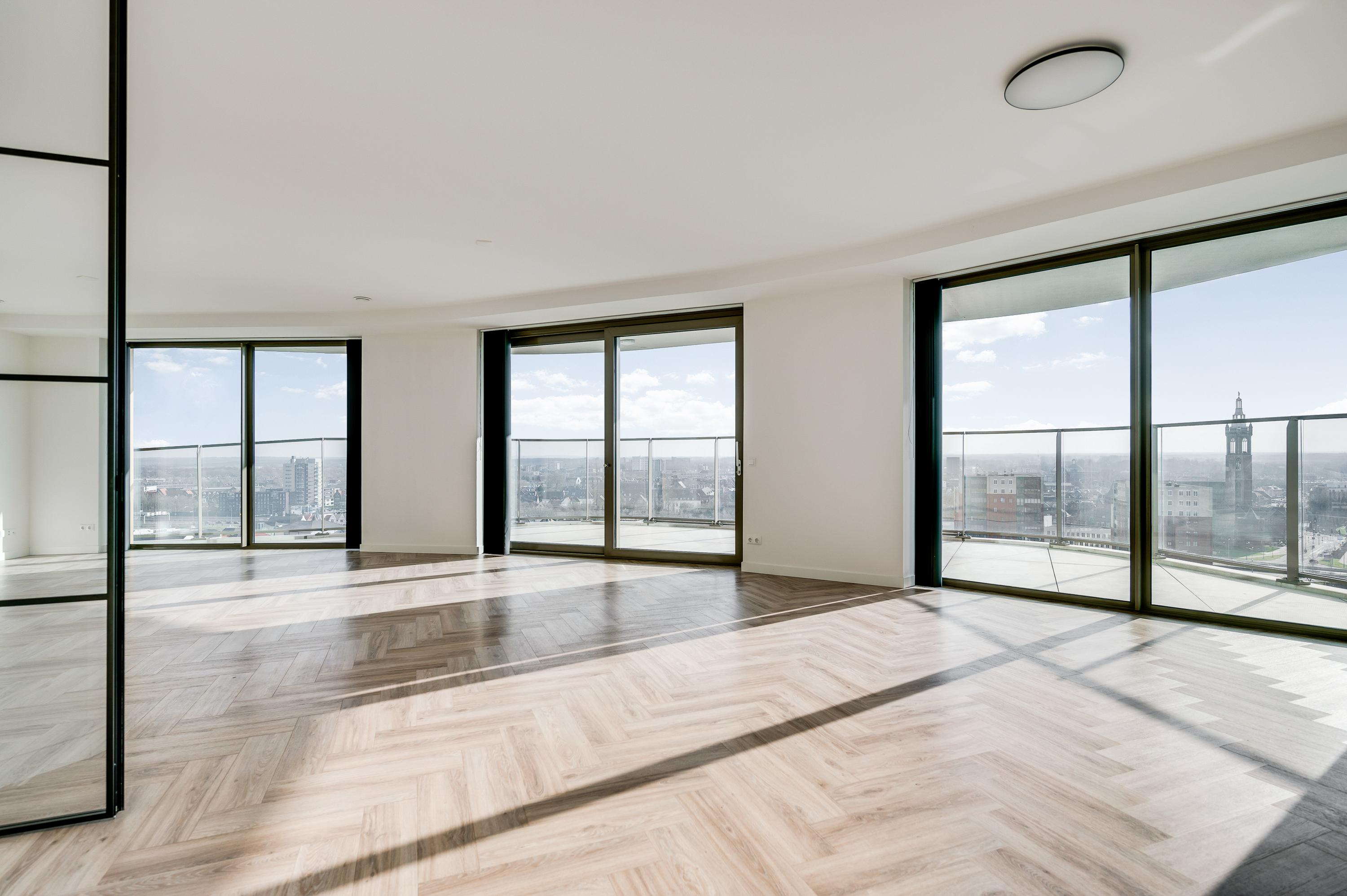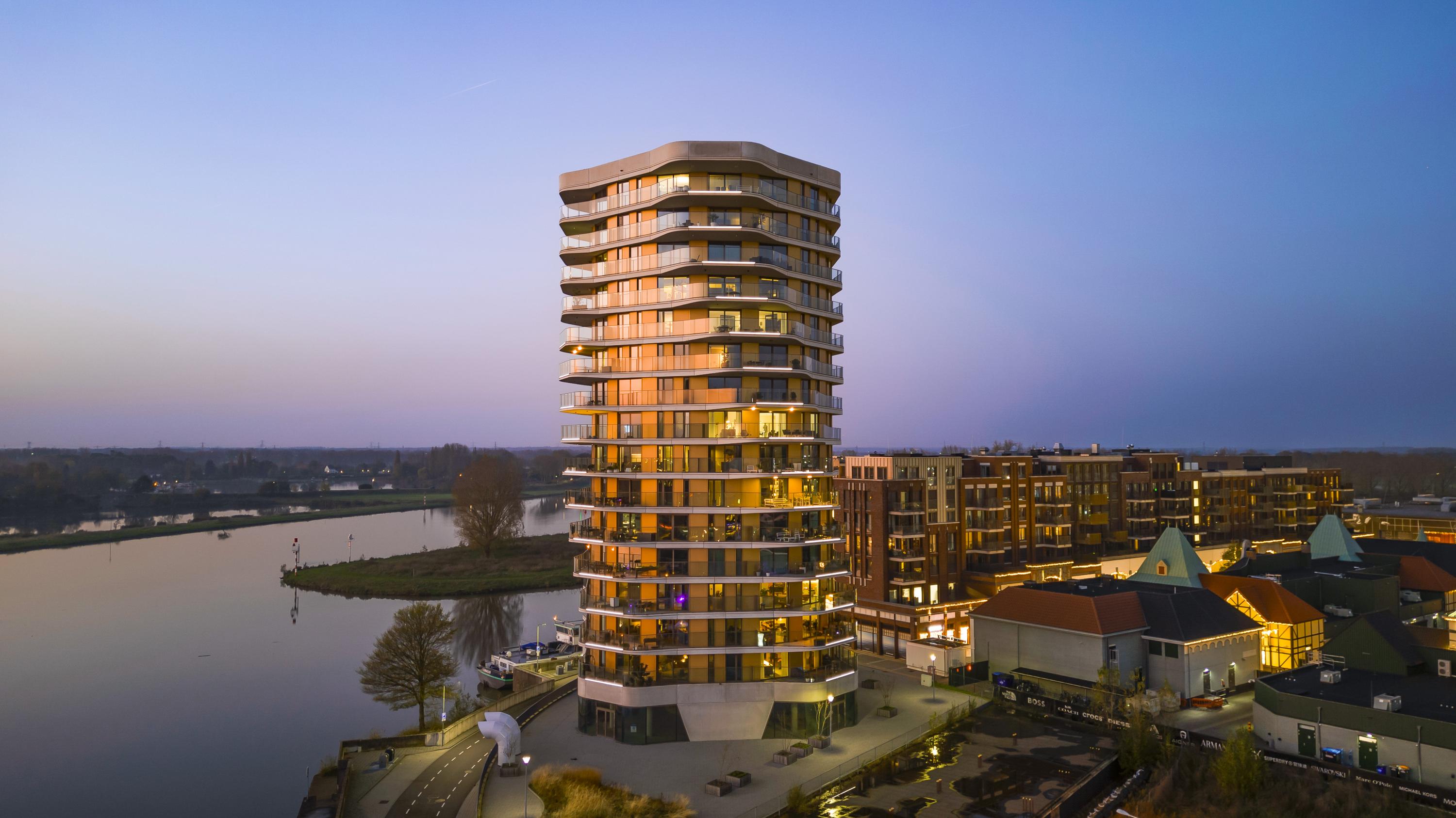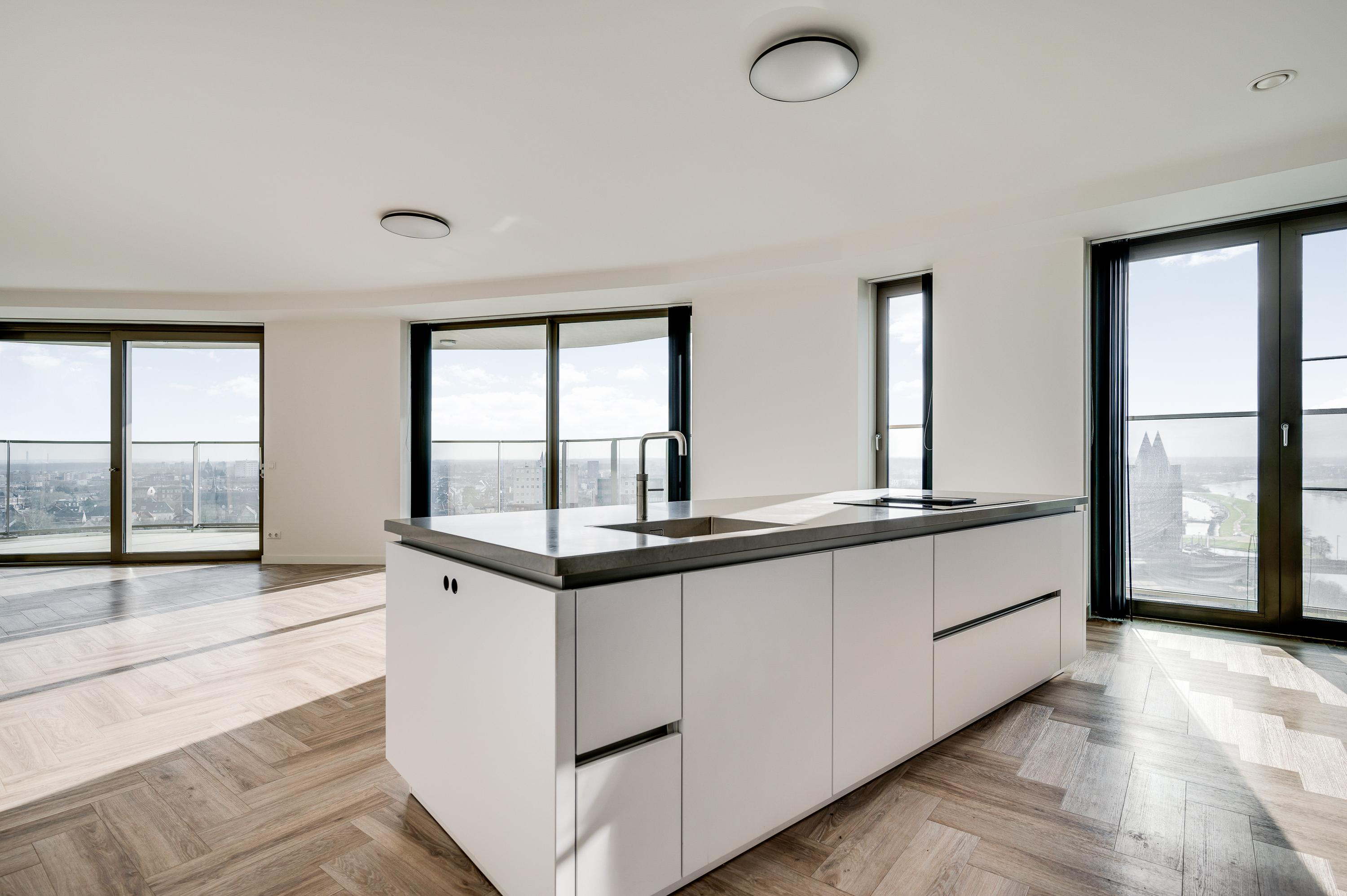 El ático Roermond ocupa la decimocuarta planta de Manhattan Urban Residence, diseñado para una vida contemporánea y moldeado por las amplias vistas de Maasplassen. Este ático en Roermond ofrece una superficie habitable de aproximadamente 185 m², realzada por techos de casi tres metros y ventanales de suelo a techo que bañan el interior de luz y enmarcan vistas panorámicas sobre la ciudad y el agua.
