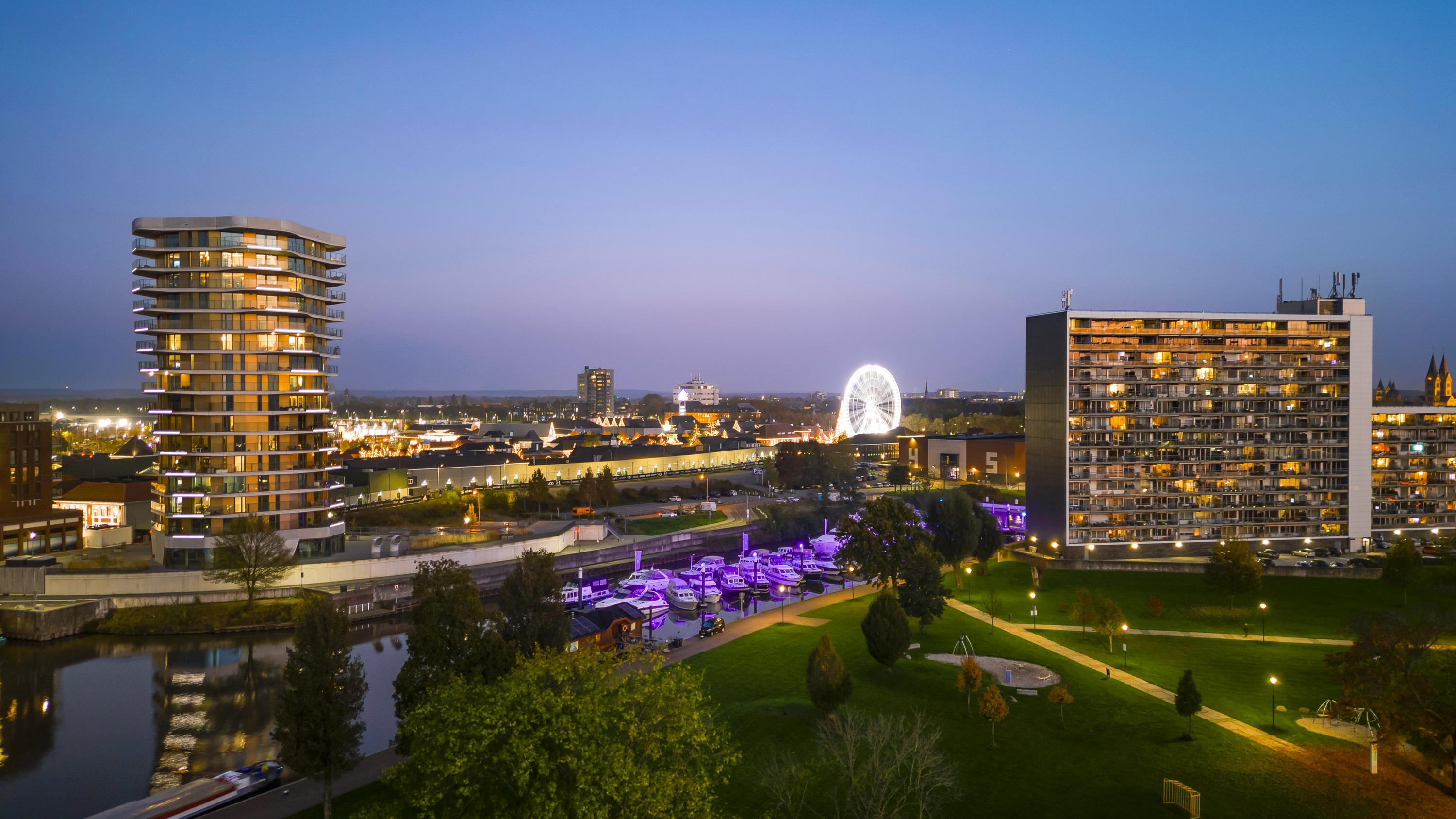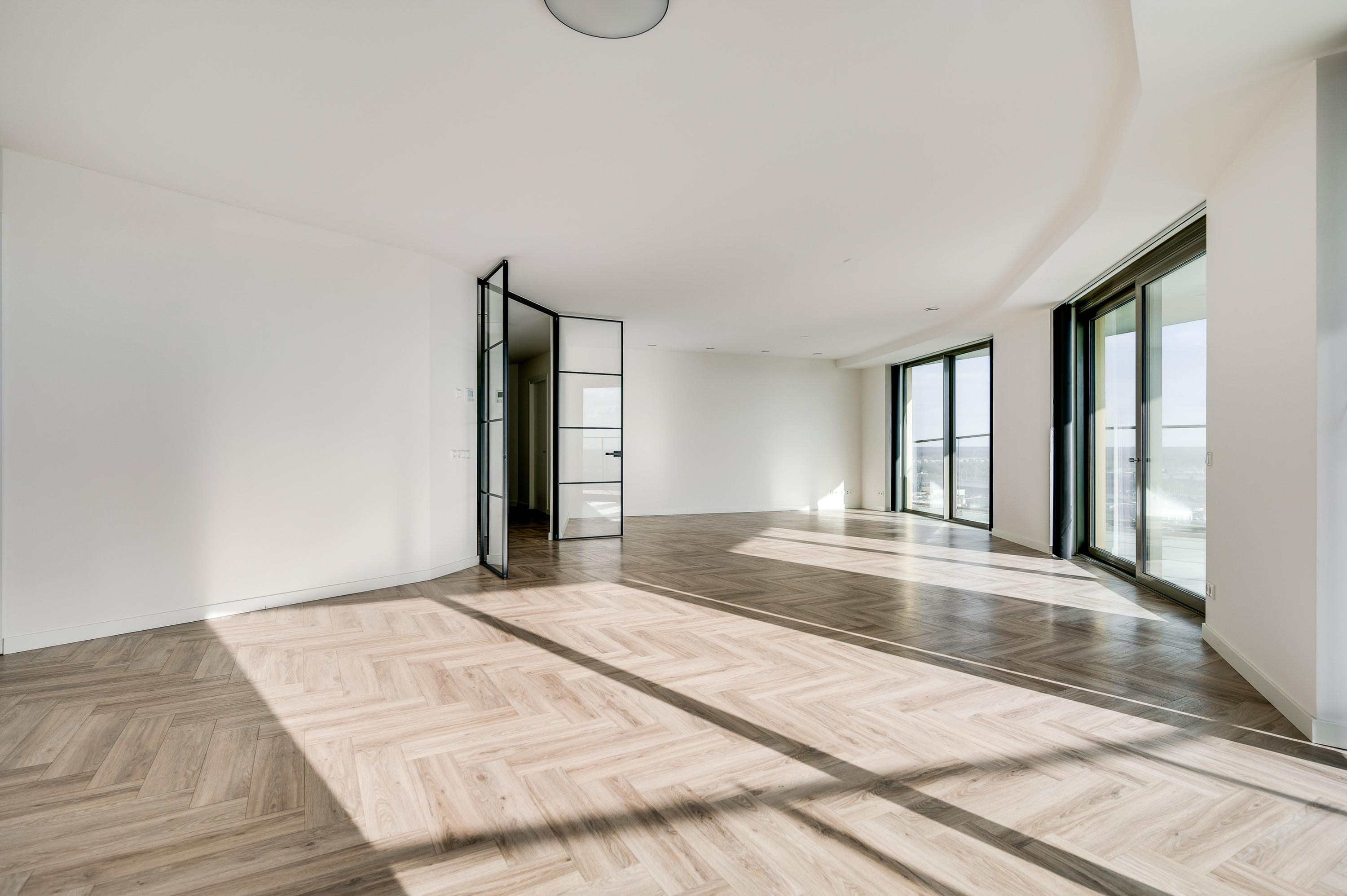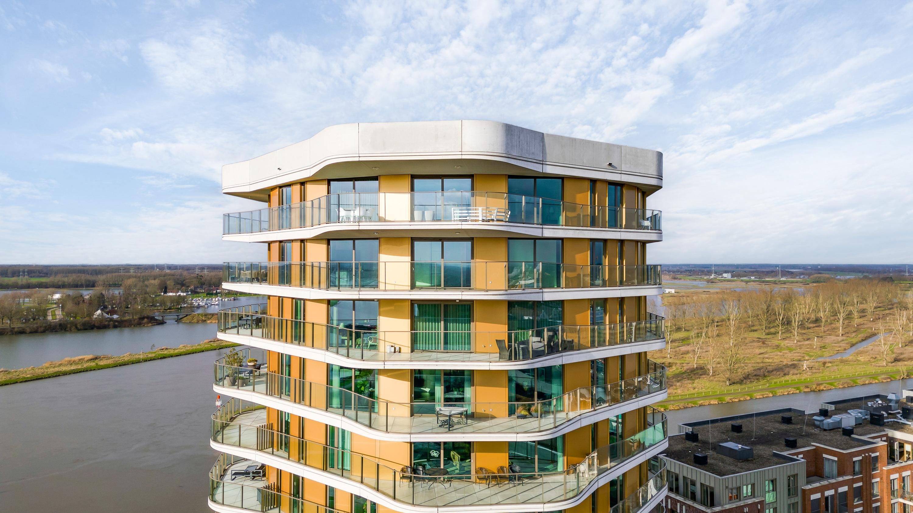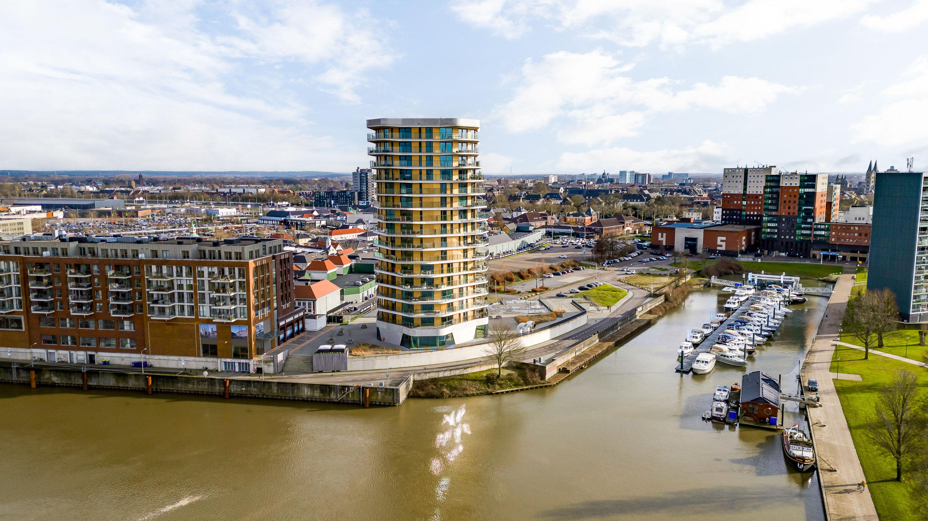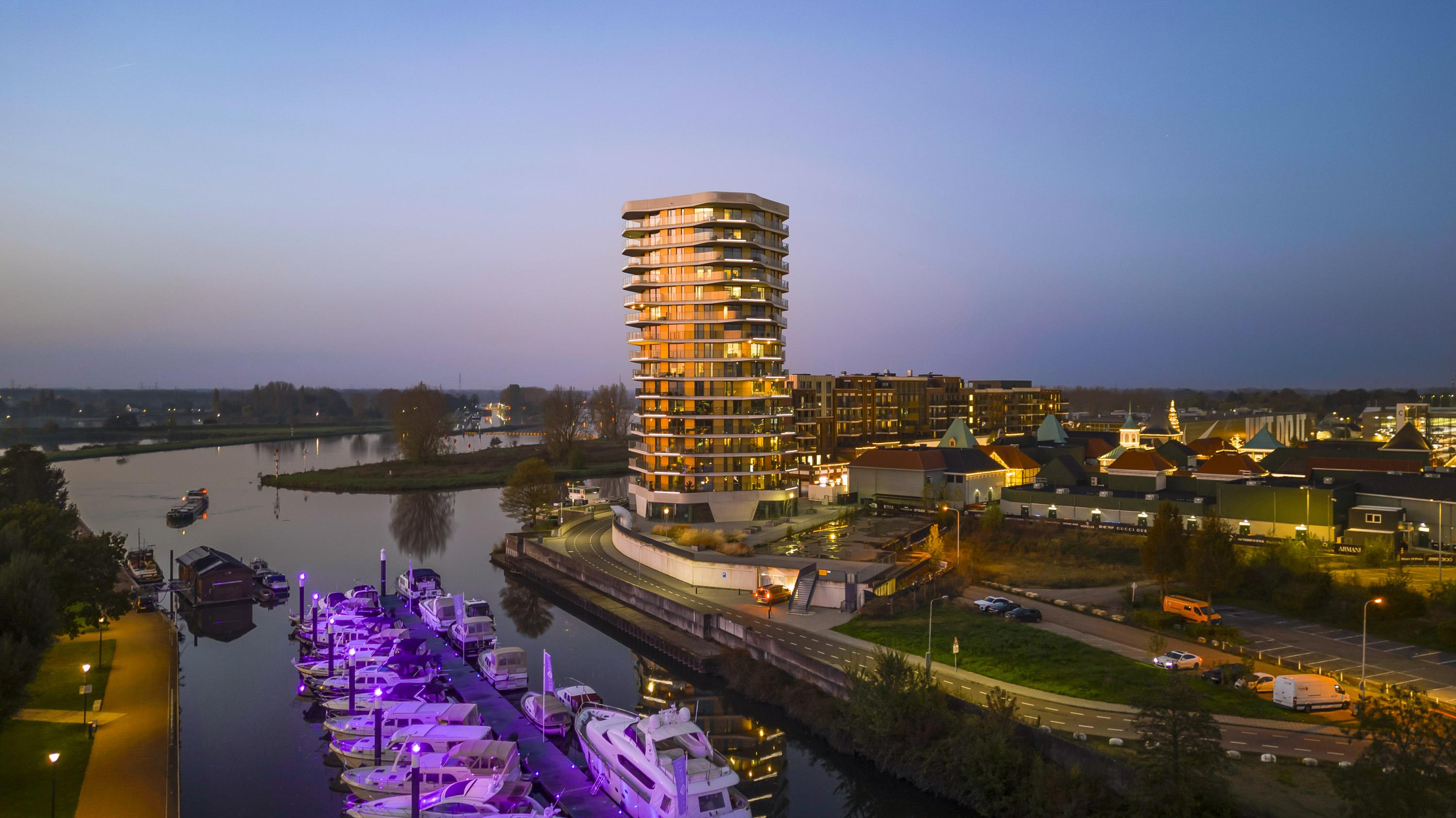 El ático Roermond ocupa la decimocuarta planta de Manhattan Urban Residence, diseñado para una vida contemporánea y moldeado por las amplias vistas de Maasplassen. Este ático en Roermond ofrece una superficie habitable de aproximadamente 185 m², realzada por techos de casi tres metros y ventanales de suelo a techo que bañan el interior de luz y enmarcan vistas panorámicas sobre la ciudad y el agua.