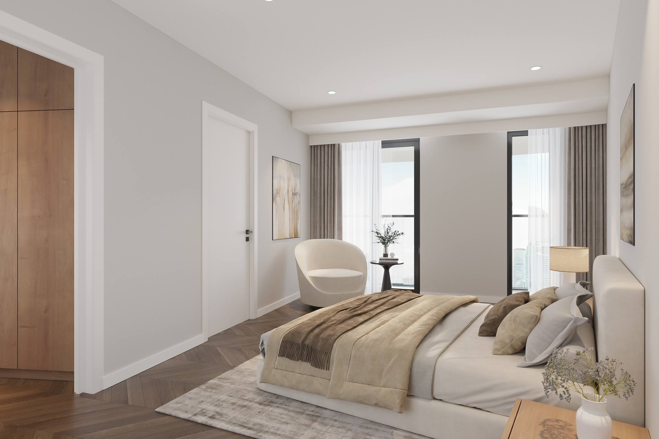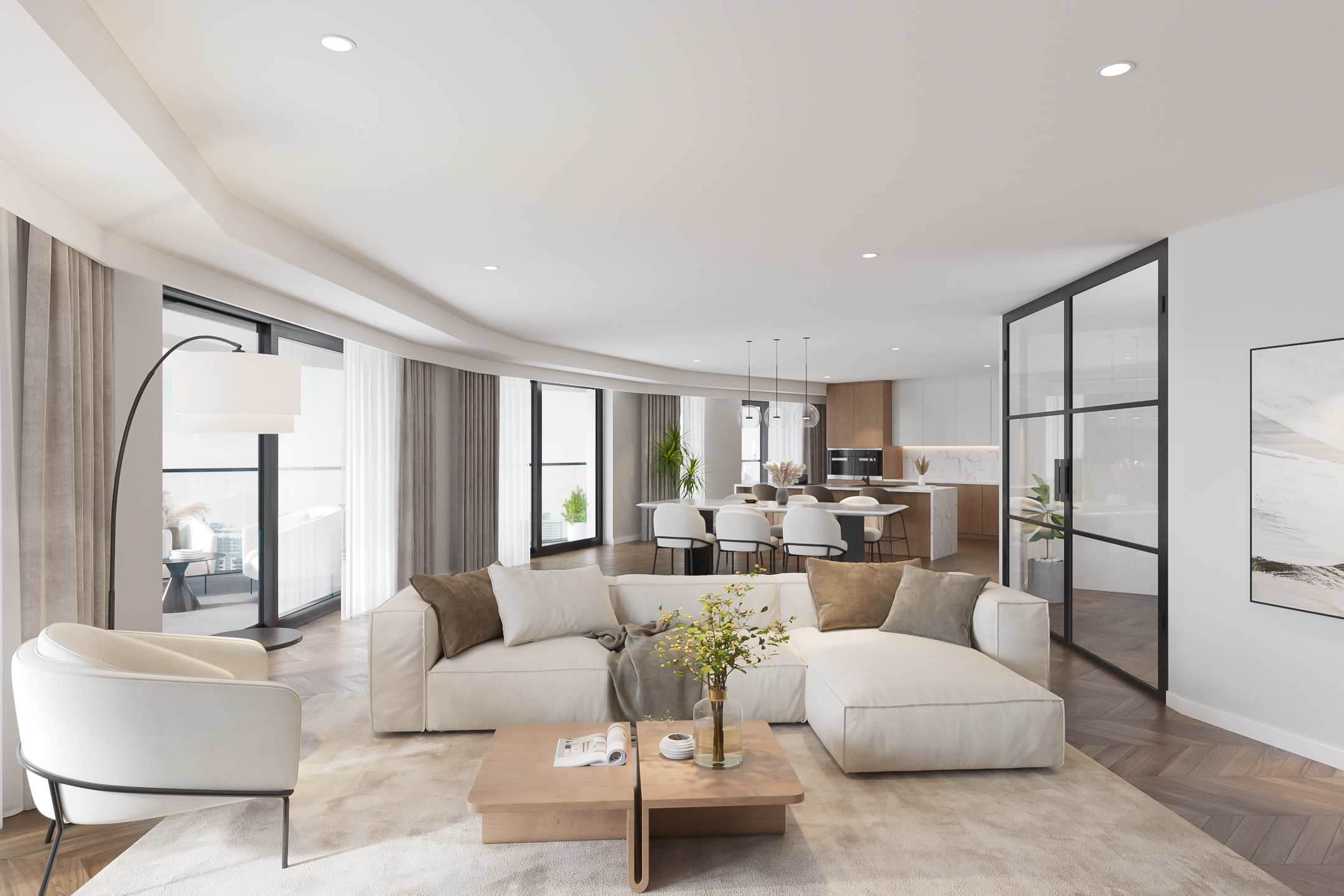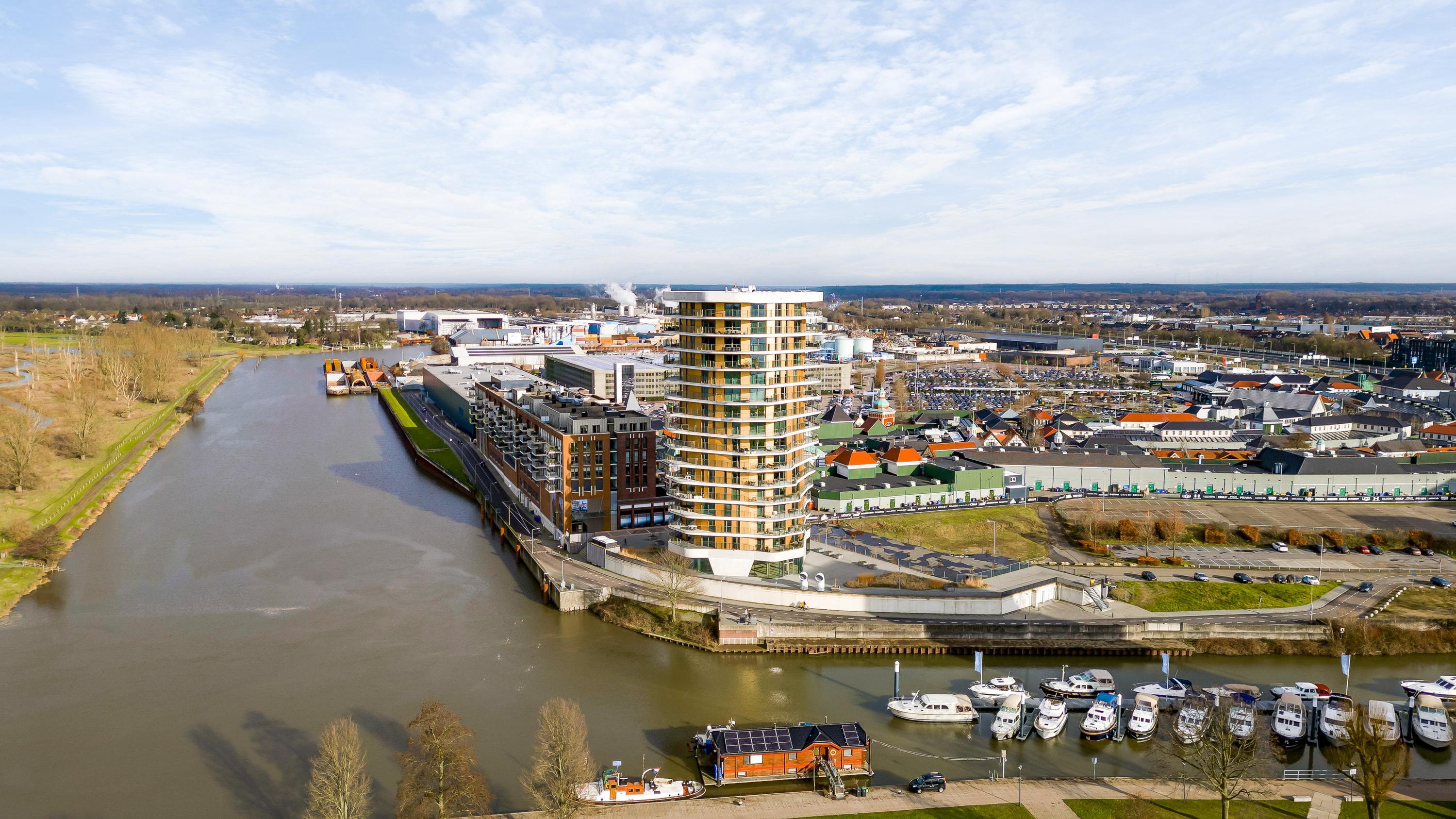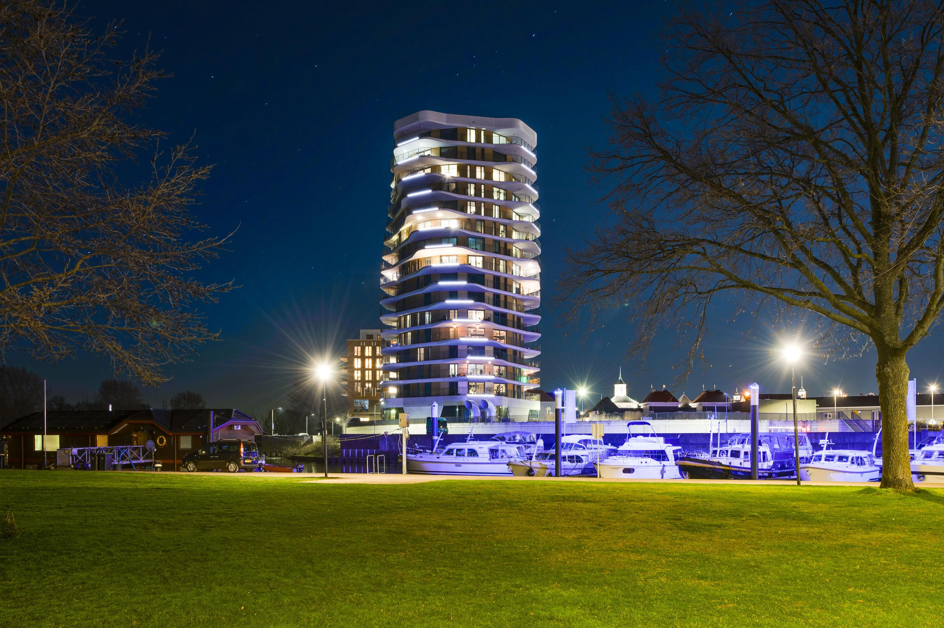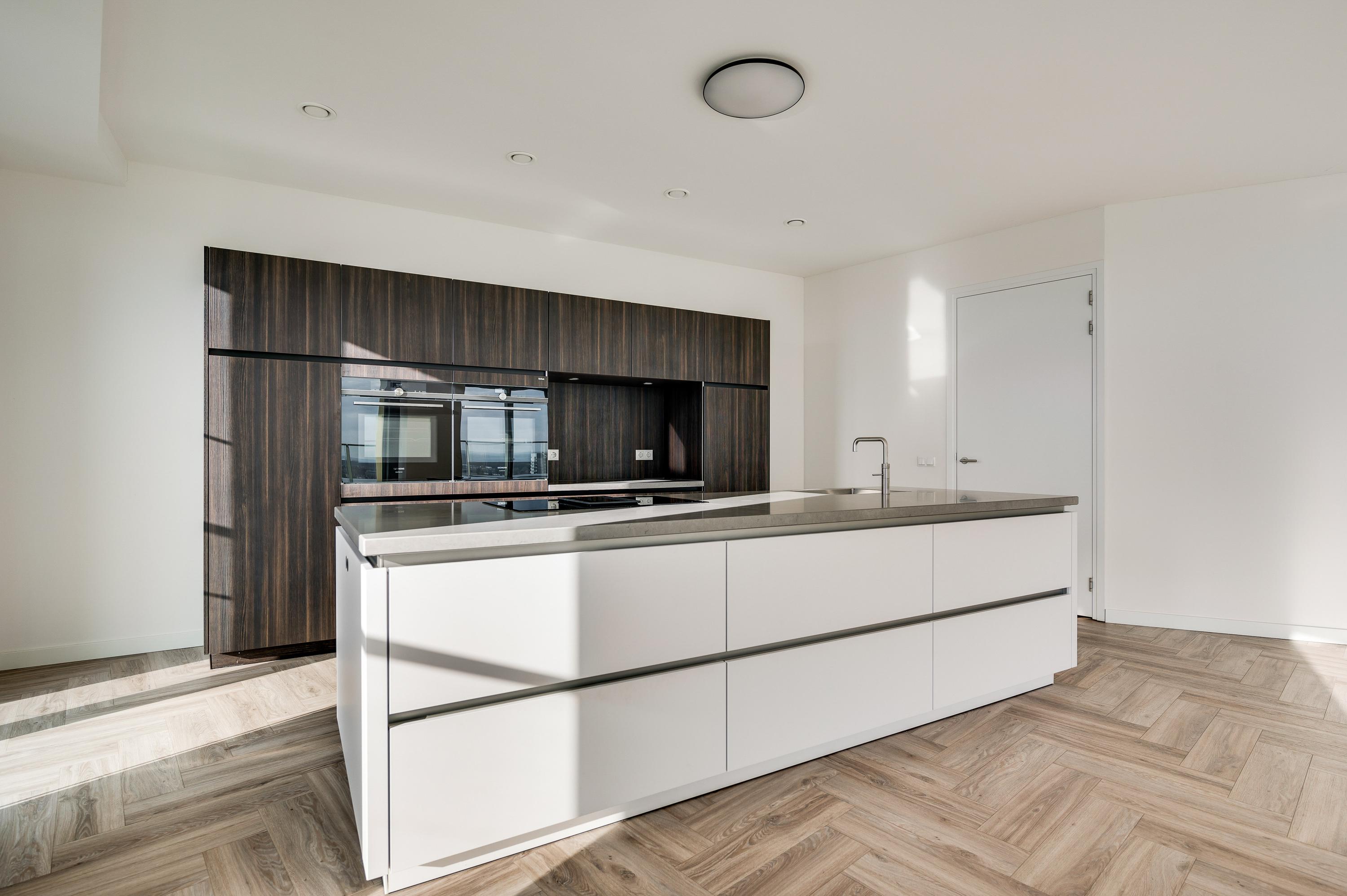 El ático Roermond ocupa la decimocuarta planta de Manhattan Urban Residence, diseñado para una vida contemporánea y moldeado por las amplias vistas de Maasplassen. Este ático en Roermond ofrece una superficie habitable de aproximadamente 185 m², realzada por techos de casi tres metros y ventanales de suelo a techo que bañan el interior de luz y enmarcan vistas panorámicas sobre la ciudad y el agua.
