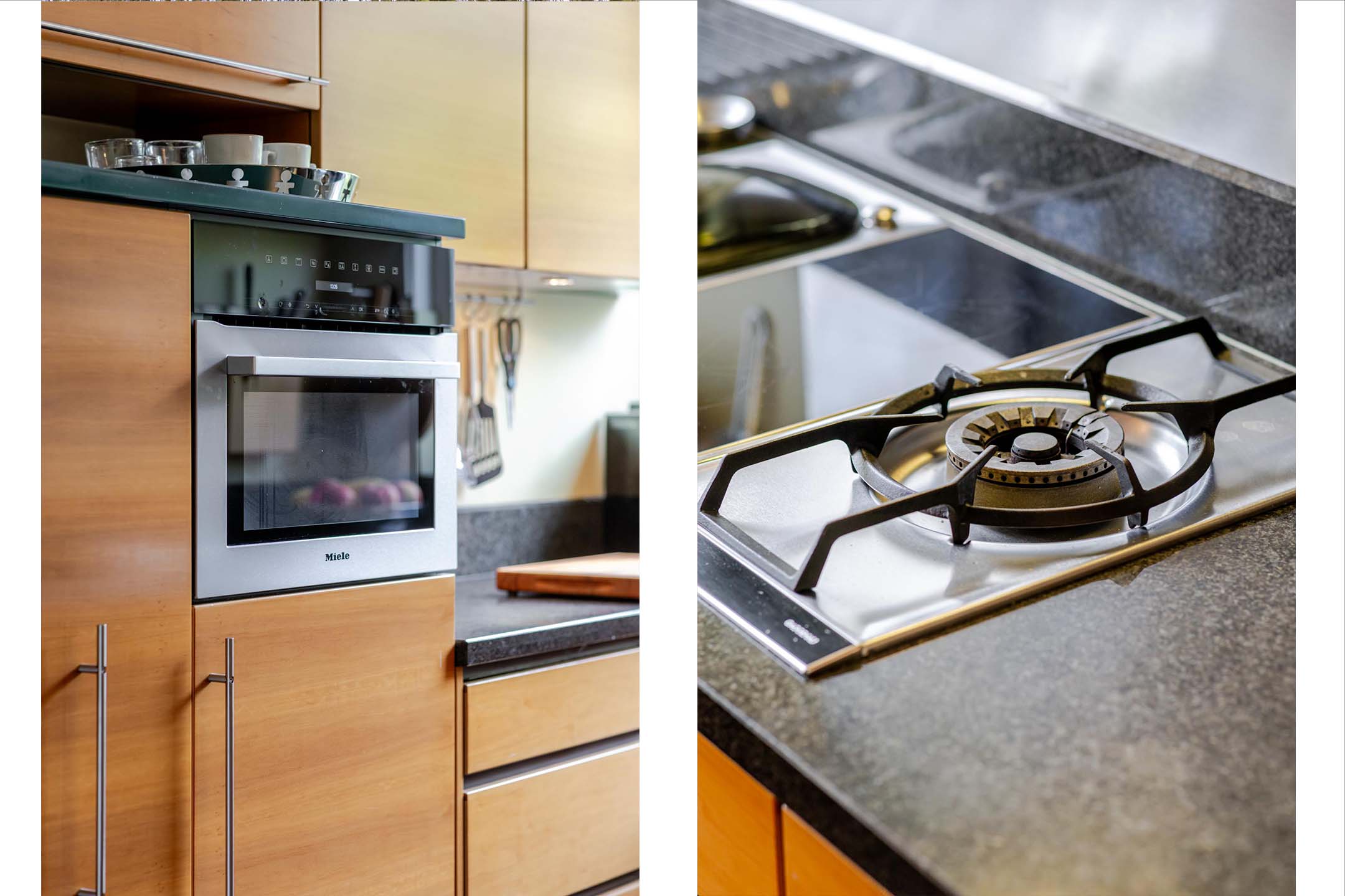La vivienda cuenta con aparcamiento privado dotado de estación de carga eléctrica, un tranquilo jardín trasero orientado al noreste de generosas dimensiones y toldos exteriores para protección solar. Dos baños dan servicio a los cinco dormitorios, todos con luz natural y vistas al follaje. Los acabados interiores incluyen suelo de parquet en espiga, armarios empotrados de época y puertas francesas que conectan la vida interior y exterior. El sótano ofrece un uso flexible, ideal para oficina, estudio o espacio de ocio.