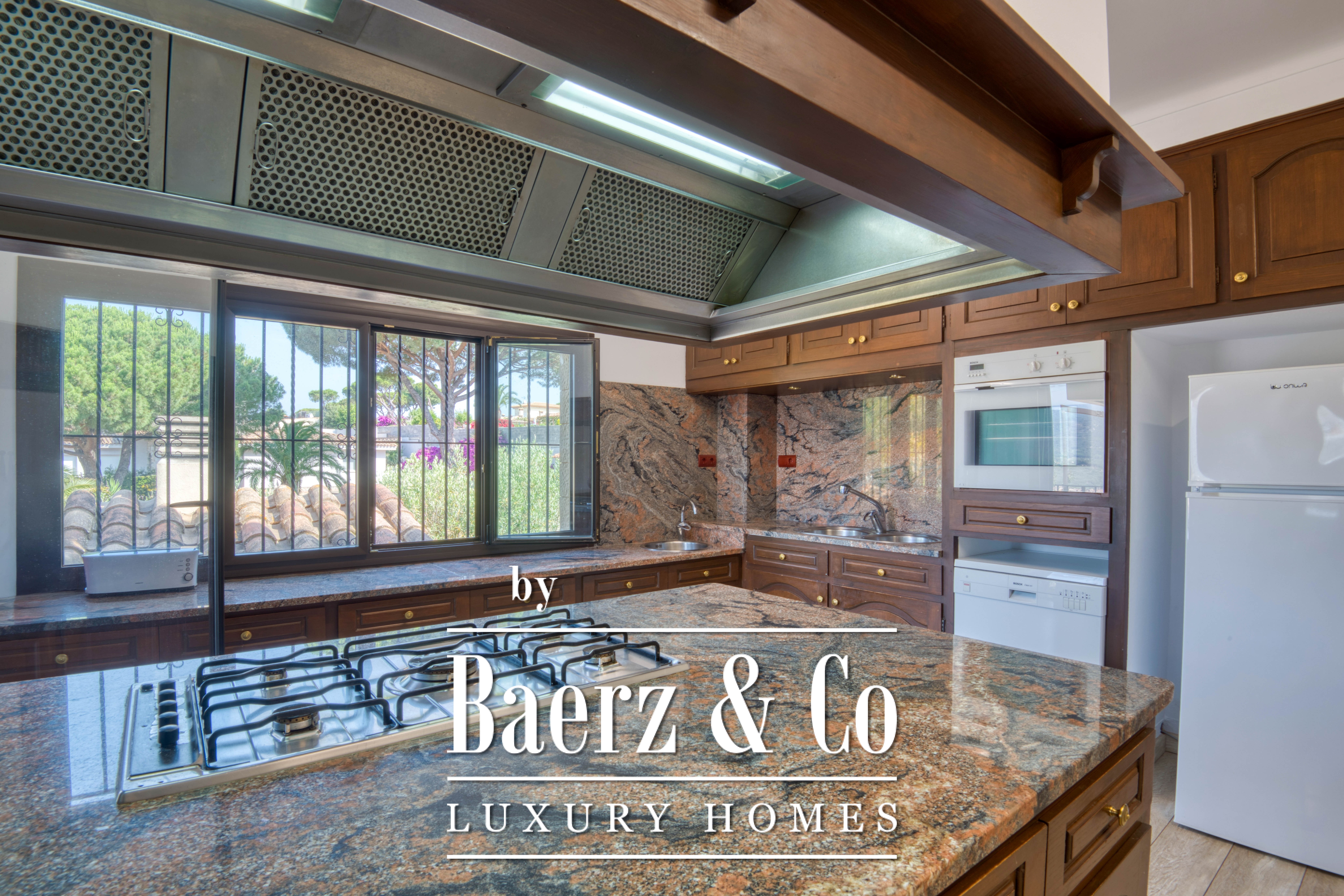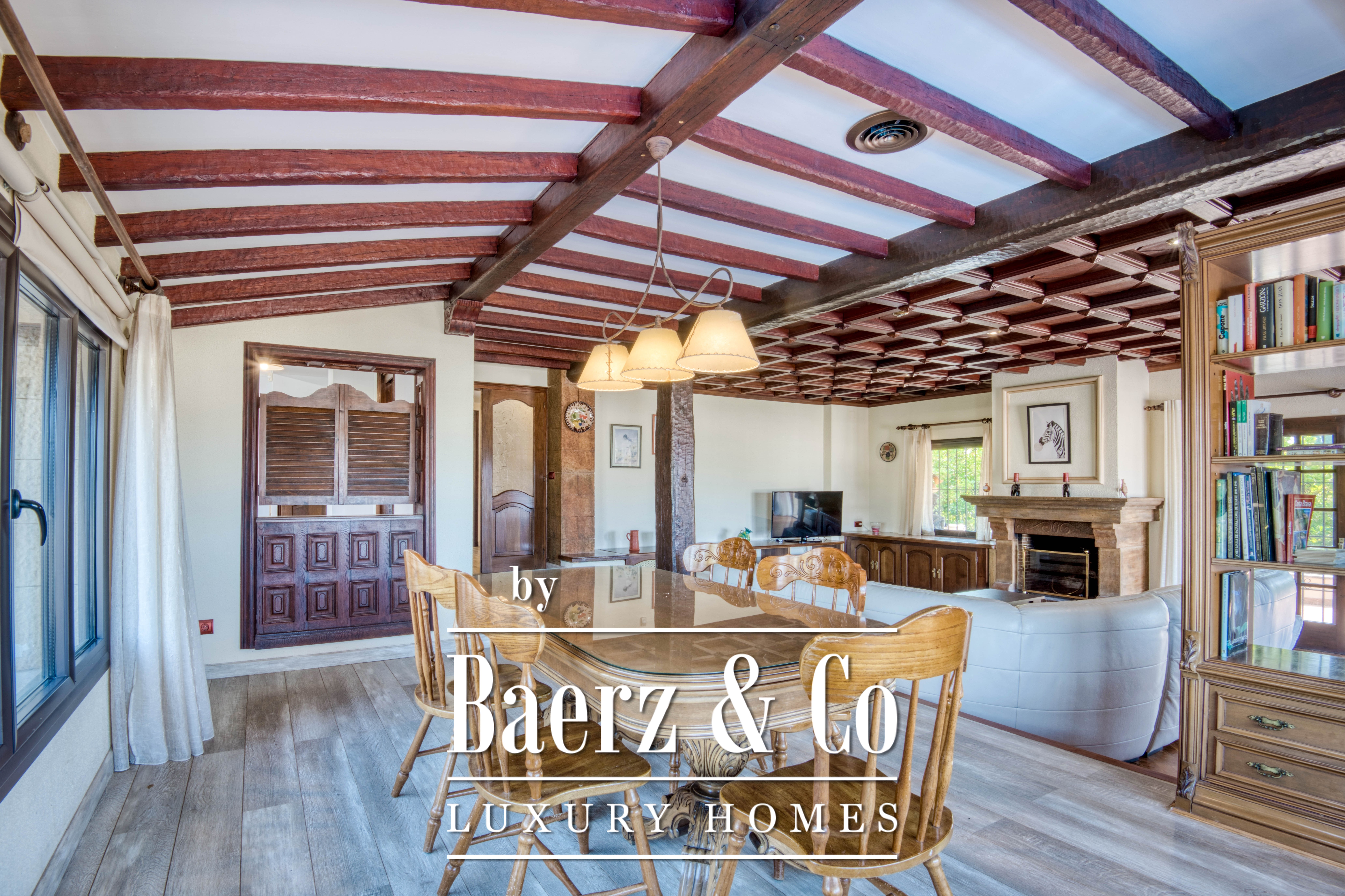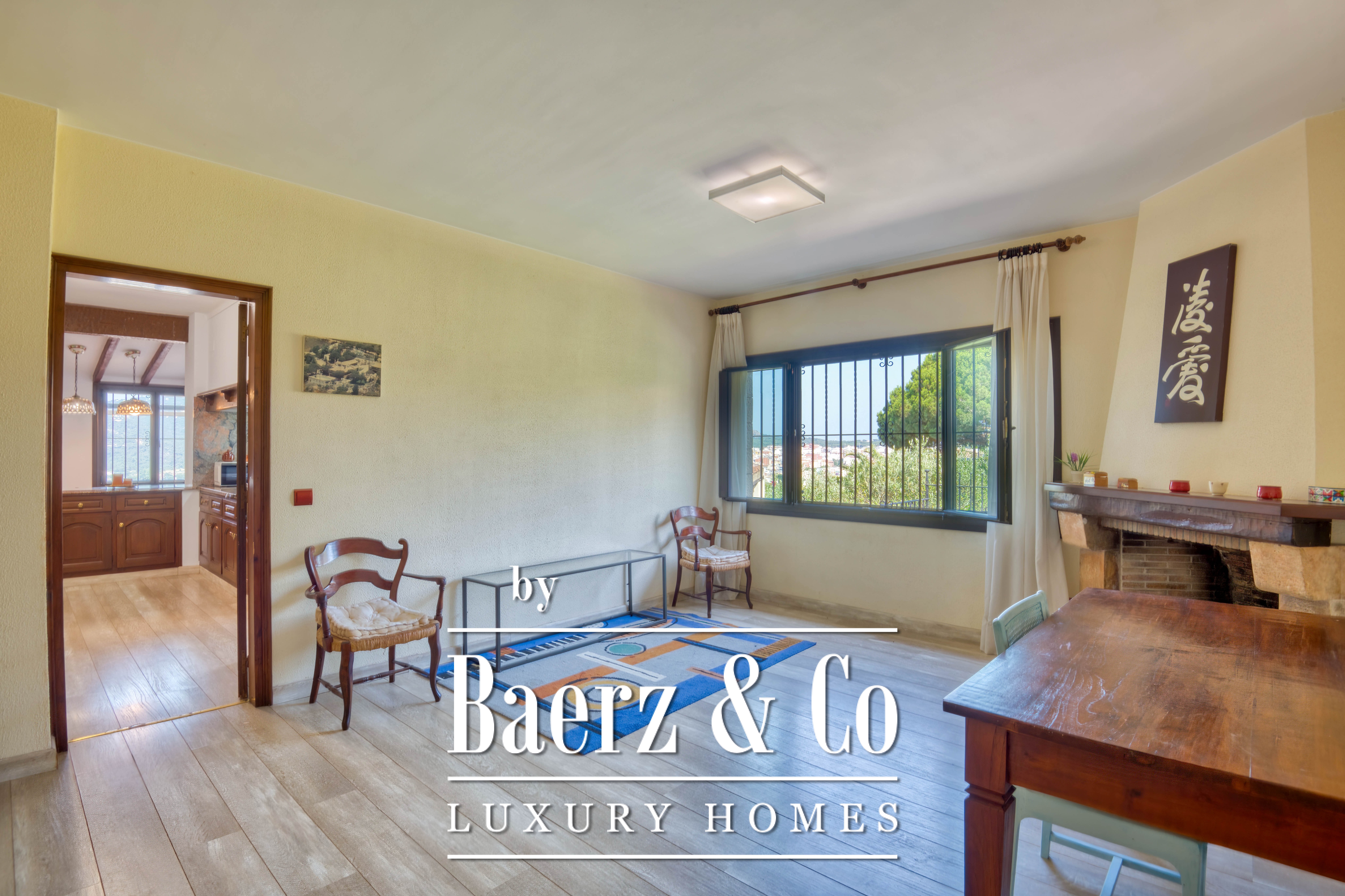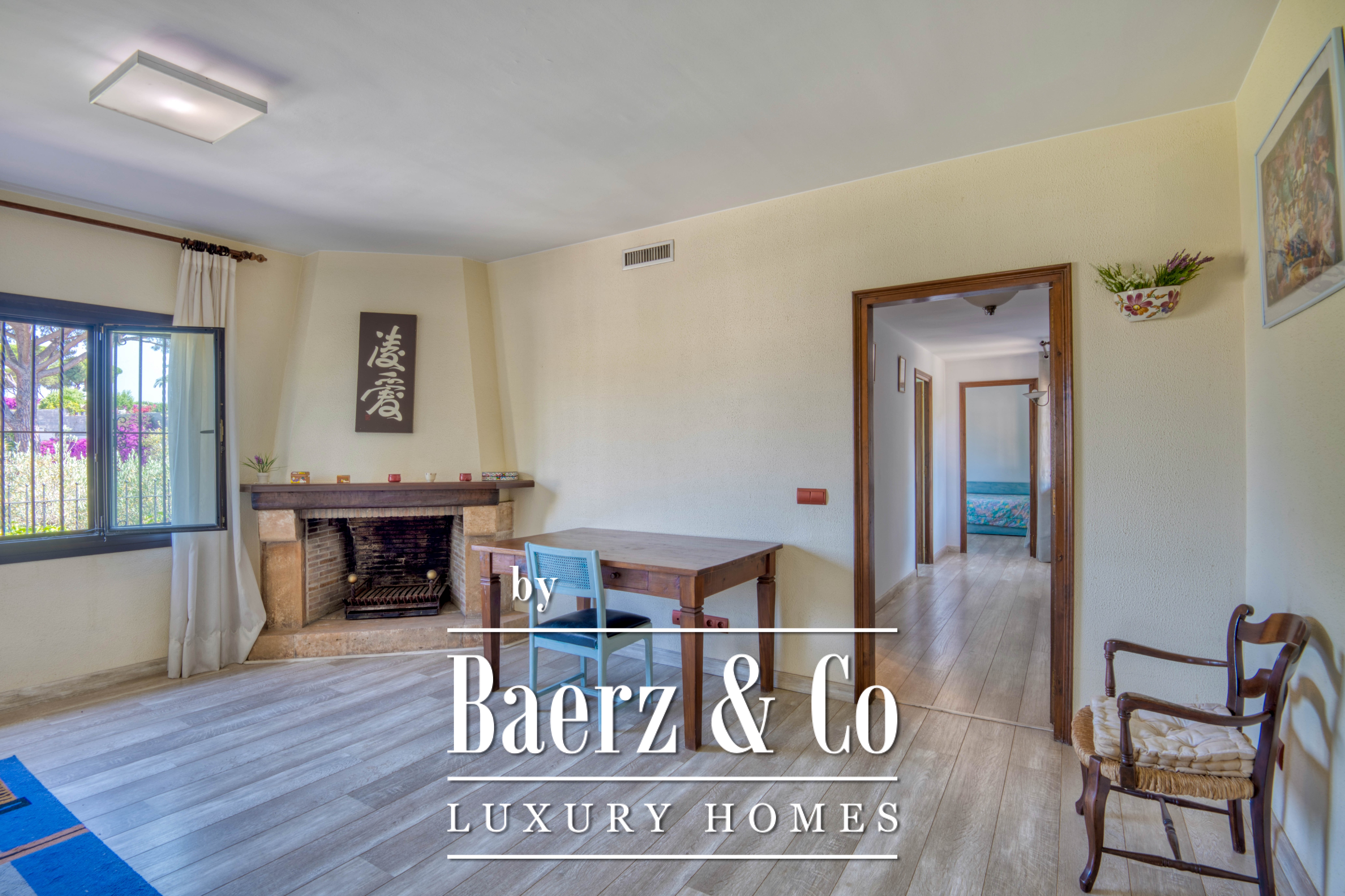 El corazón de la casa destaca con un gran salón con chimenea que fluye hacia un espacioso comedor, creando un entorno natural tanto para reunirse como para relajarse en tranquilidad. La cocina, independiente y totalmente equipada, facilita toda experiencia culinaria y está orientada hacia los jardines vibrantes. Los porches cubiertos y las terrazas orientadas al atardecer proporcionan espacios para la reflexión y comidas al aire libre, mientras el jardín privado, con paisajismo mediterráneo, envuelve la propiedad en serenidad.