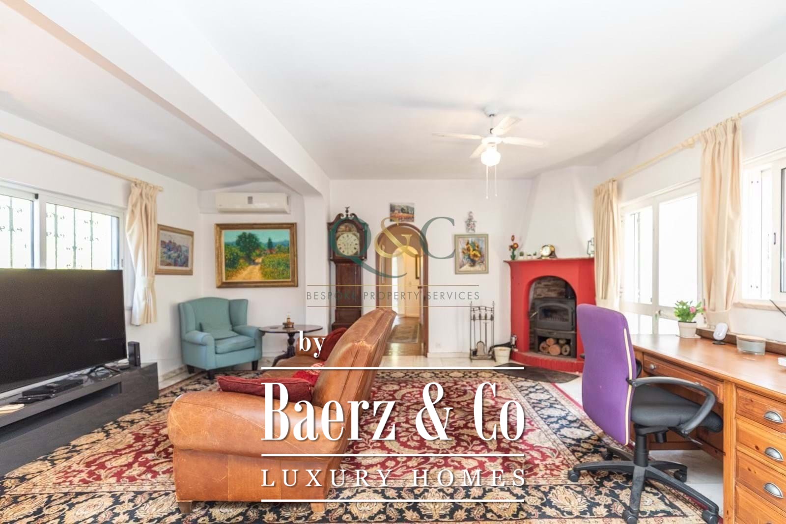La villa consta de cuatro dormitorios y tres baños, e incluye un anexo para invitados situado en una parte inferior de la parcela, que proporciona un dormitorio, un baño y una sala de estar adicionales, asegurando flexibilidad para la familia o los visitantes. La zona principal de estar presenta un diseño de planta abierta, chimenea de leña, aire acondicionado y puertas correderas que conectan perfectamente con las zonas exteriores cubiertas para comer. El dormitorio principal ofrece acceso directo a una terraza cubierta y a una amplia piscina climatizada de agua salada, mientras que una habitación superior con entrada independiente se puede adaptar como oficina o espacio de ocio con vistas inspiradoras.
