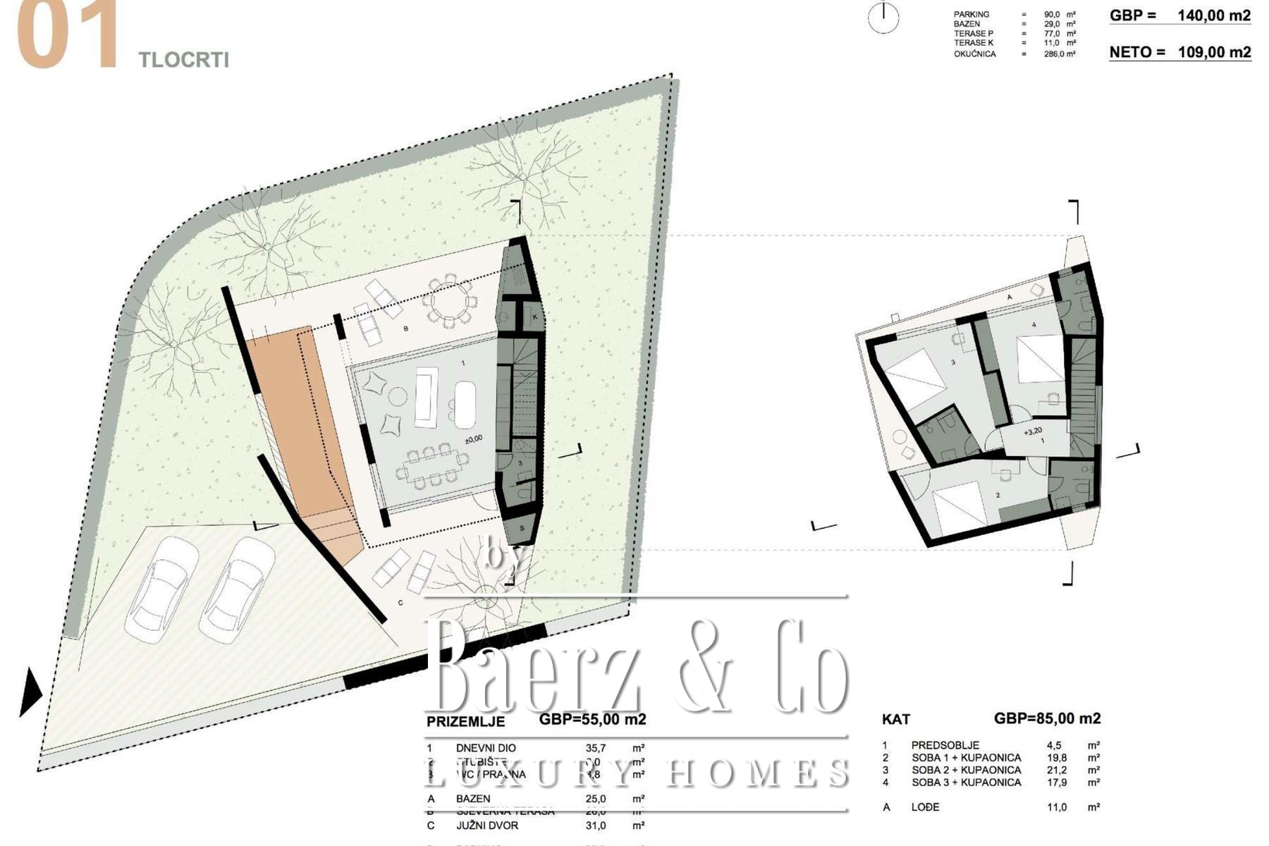 La villa de lujo Sutivan capta la esencia de la serenidad mediterránea y se ubica dentro de una exclusiva urbanización compuesta por 14 nuevas propiedades a tan solo 140 metros del mar. Esta residencia contemporánea ofrece 140 m² de superficie habitable, distribuidos en dos plantas cuidadosamente diseñadas para armonizar la sofisticación interior con la naturaleza costera de Croacia.