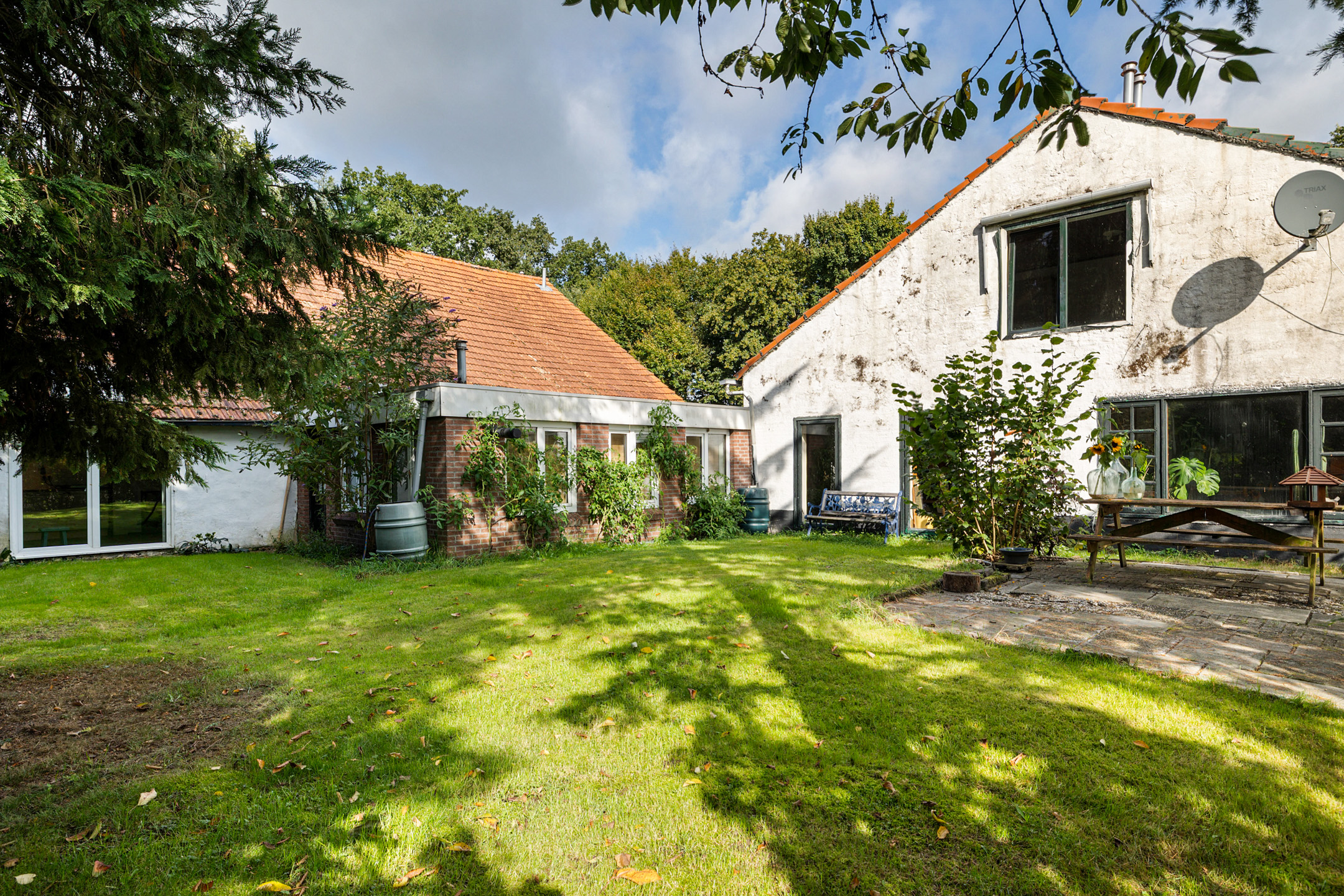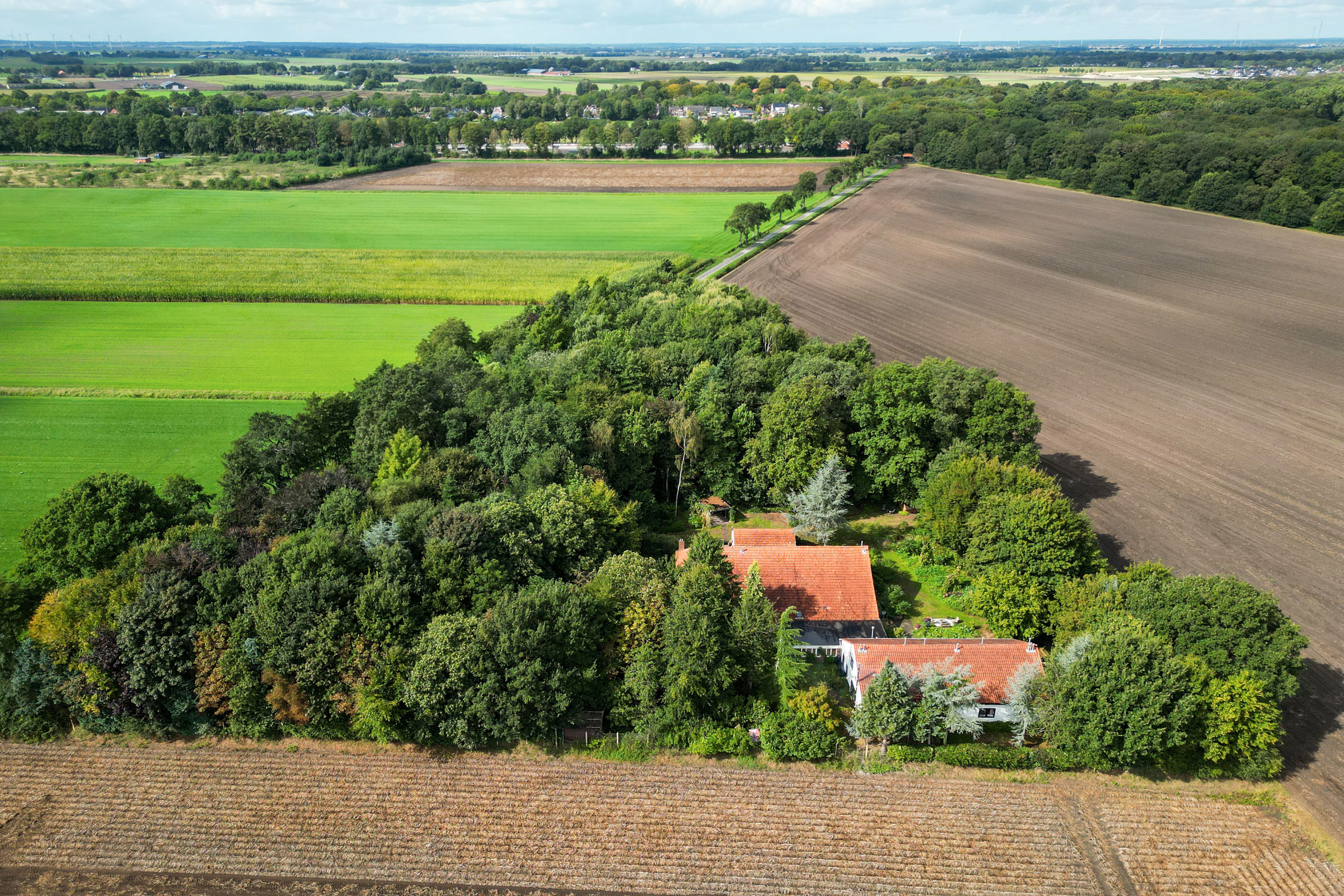 La finca rural Ter Apel ofrece una rara convergencia de amplitud, privacidad y potencial arquitectónico en el enclave boscoso de Barnflair dentro de Westerwolde. Esta casa de campo doble, que data de 1872, se ubica discretamente en un camino rural que se convierte en vía ciclista, rodeada de prados, campos de cultivo y arboledas. Situada en una extensa parcela de 12.320 m² con jardines consolidados, huerto y un bosque privado, la propiedad brinda 784 m² de superficie habitable cuidadosamente distribuidos. La disposición se reparte entre una vivienda principal independiente con terraza y almacén privados, una vivienda trasera con zonas de trabajo y vida, y un granero central con apartamento tipo estudio. En conjunto, la finca dispone de 14 dormitorios, 3 cocinas y 3 baños, además de estancias auxiliares y espacios de almacenamiento. Cada unidad residencial disfruta de vistas abiertas al verde, lo que convierte la casa en una opción excepcionalmente adaptable para varios núcleos familiares, doble residencia o discretos usos empresariales y creativos. Materiales originales, desde puertas correderas hasta vigas expuestas y madera natural, aguardan restauración o una nueva interpretación. Calefactores de gas, estufas de leña y pellet proporcionan calidez en todo el inmueble. La vida al aire libre gira en torno a los terrenos ajardinados, una antigua pista y recintos privados para animales, todo ello perfectamente delimitado e inmerso en la tranquilidad de la naturaleza. La fauna silvestre convive en la finca y una fuente de agua natural abastece el riego. La propiedad goza de una localización tranquila cerca de la frontera alemana, con servicios como colegios, tiendas y rutas por el bosque a poca distancia. Ter Apel es mucho más que una residencia: es una propuesta en evolución para quienes buscan espacio, autenticidad y la oportunidad de dejar huella en uno de los entornos más privados de Groningen.
