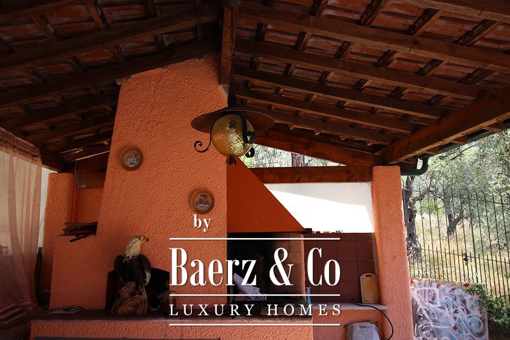 In the large garden are fruit, olive trees, an large covered outdoor kitchen with a traditional pizza oven and a BBQ, and a delightful large swimming pool.