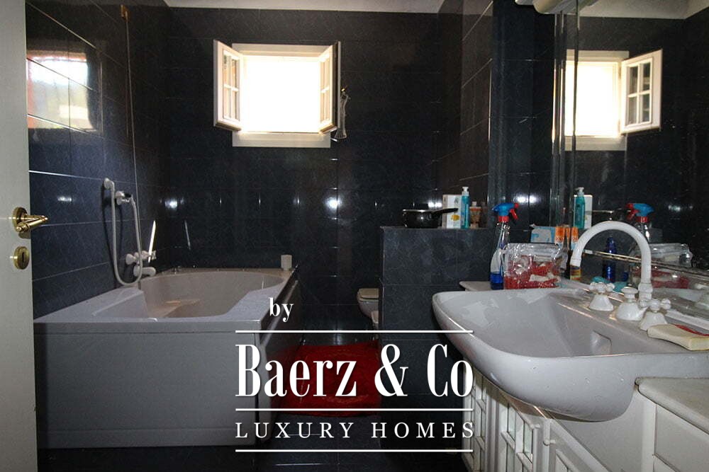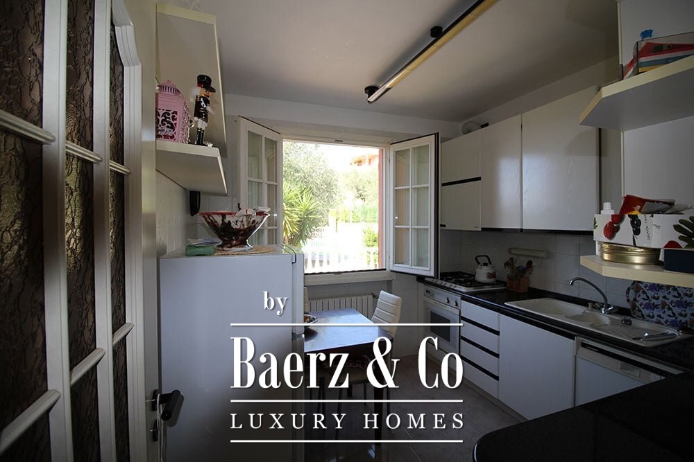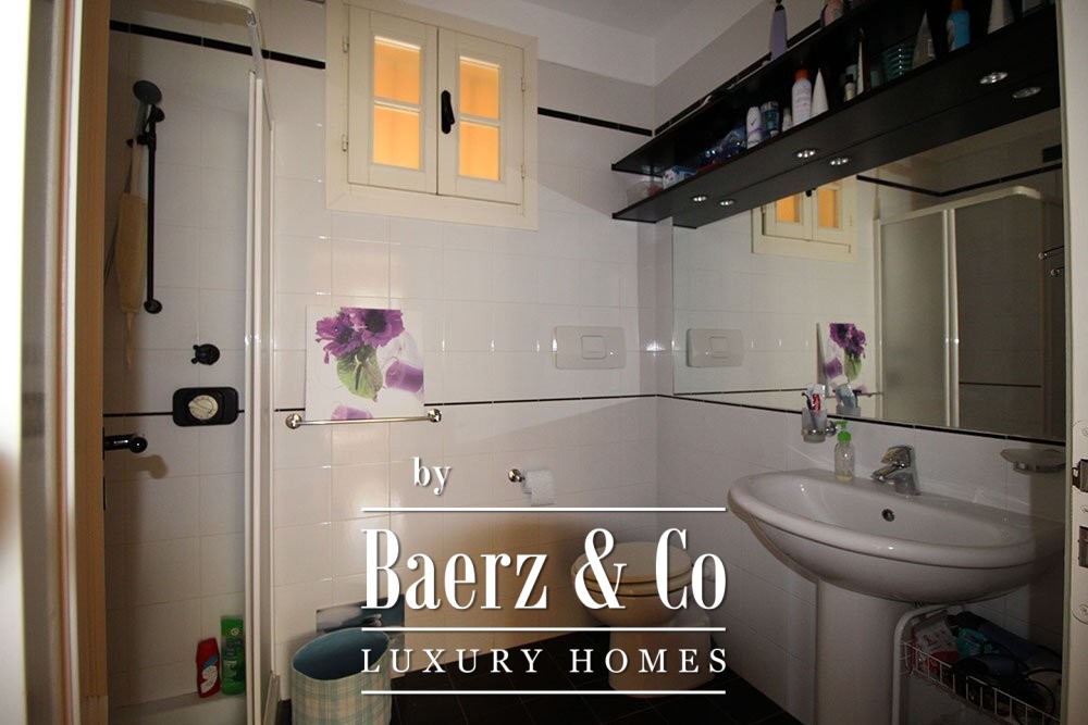 At the ground floor is the first apartment with the living room and a large kitchen, two bedrooms and bathroom. The apartment has access to the beautiful well kept garden and the swimming pool.