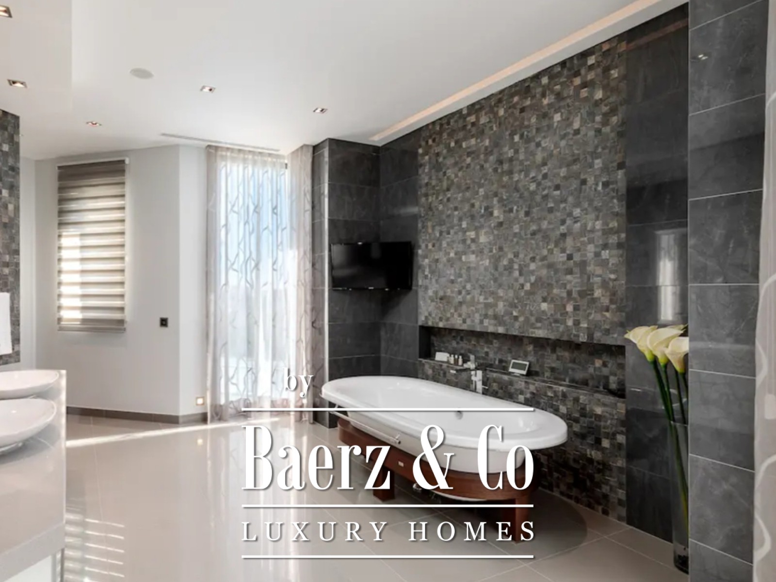 Al acceder por una majestuosa entrada con techo de cuatro metros de altura, se le da la bienvenida a una amplia sala de estar equipada con sistema domótico. La vivienda se despliega en diferentes niveles inundados de luz natural, con cocina de concepto abierto, comedor y salón de televisión, todos comunicados sin fisuras con el jardín, la piscina infinita y la casa de la piscina.