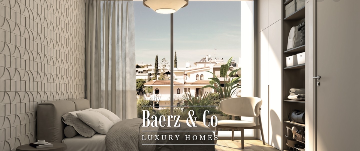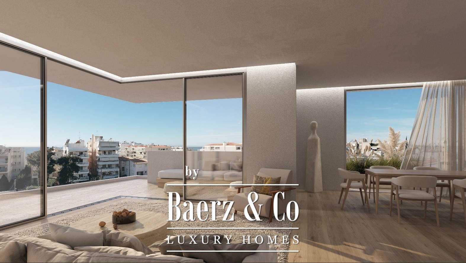 El apartamento se desarrolla en dos niveles diseñados cuidadosamente, con tres dormitorios espaciosos y cuatro baños de atención exquisita al detalle. Materiales lujosos y de alta calidad aportan una elegancia discreta a cada superficie, mientras los amplios ventanales permiten que la luz natural inunde los interiores, amplificando una atmósfera abierta y fresca y enmarcando panorámicas espectaculares del Egeo y las luces urbanas.