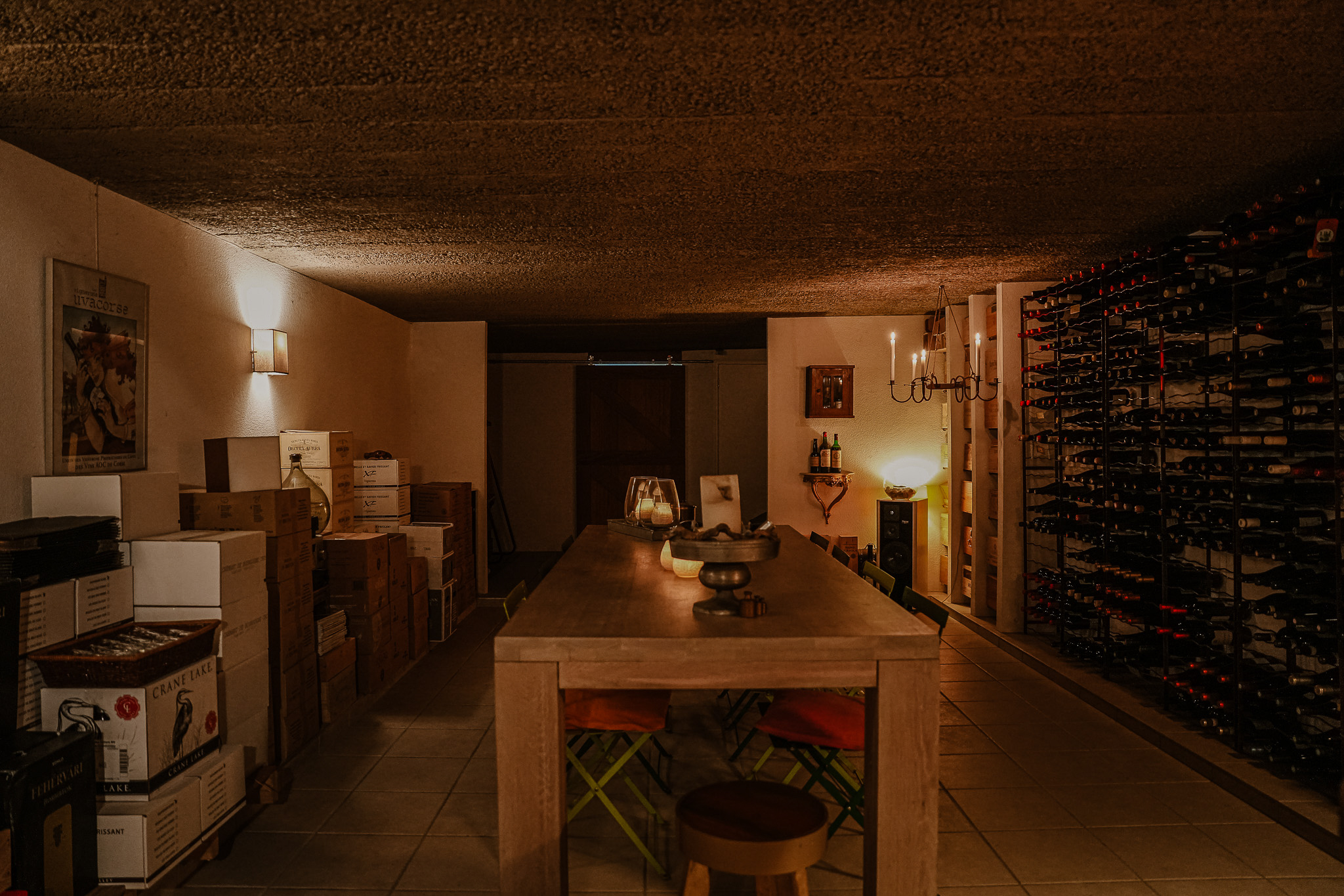 A spacious basement extends beneath the entire house, with a ceiling height of approx. 2.10 metres. Currently arranged as an atmospheric wine cellar where tastings are held, it could also serve as a hobby room, gym, or additional storage.