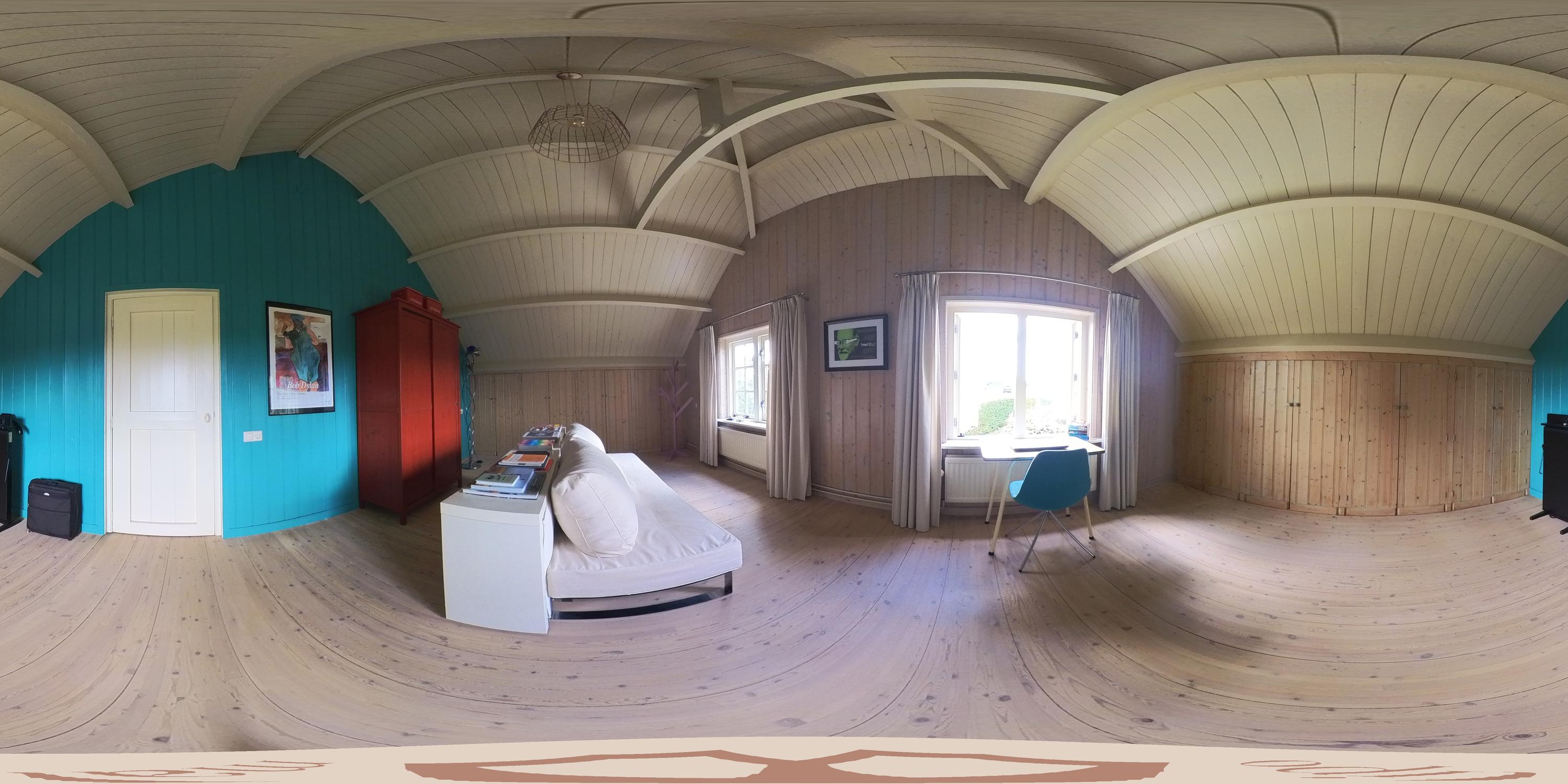 The east-facing bedroom spans the full depth of the house and is fitted with built-in wardrobes under the eaves. The master bedroom opens onto a wide balcony and an adjoining dressing room, currently in use as such but equally suited as an additional study or bathroom.
