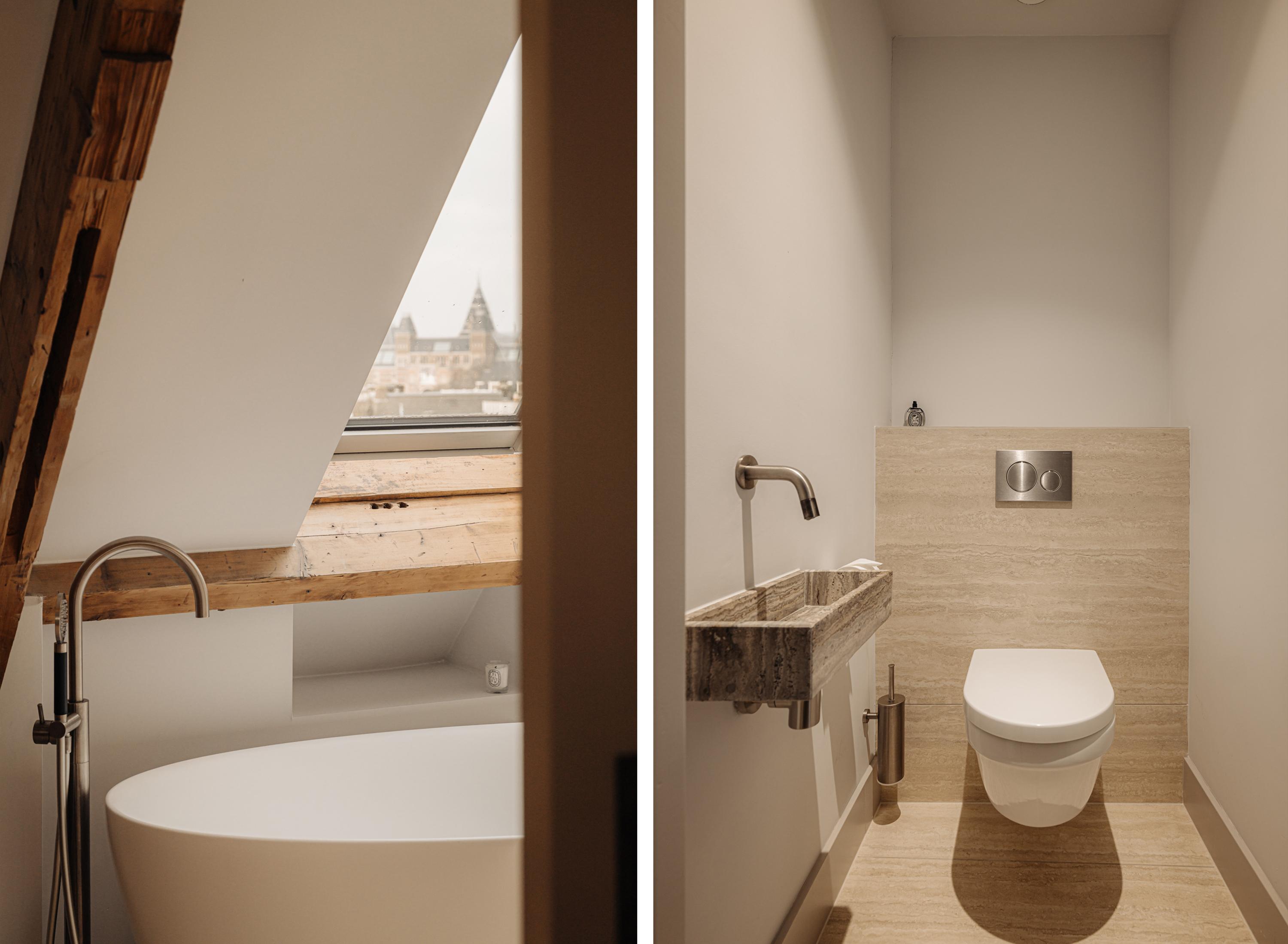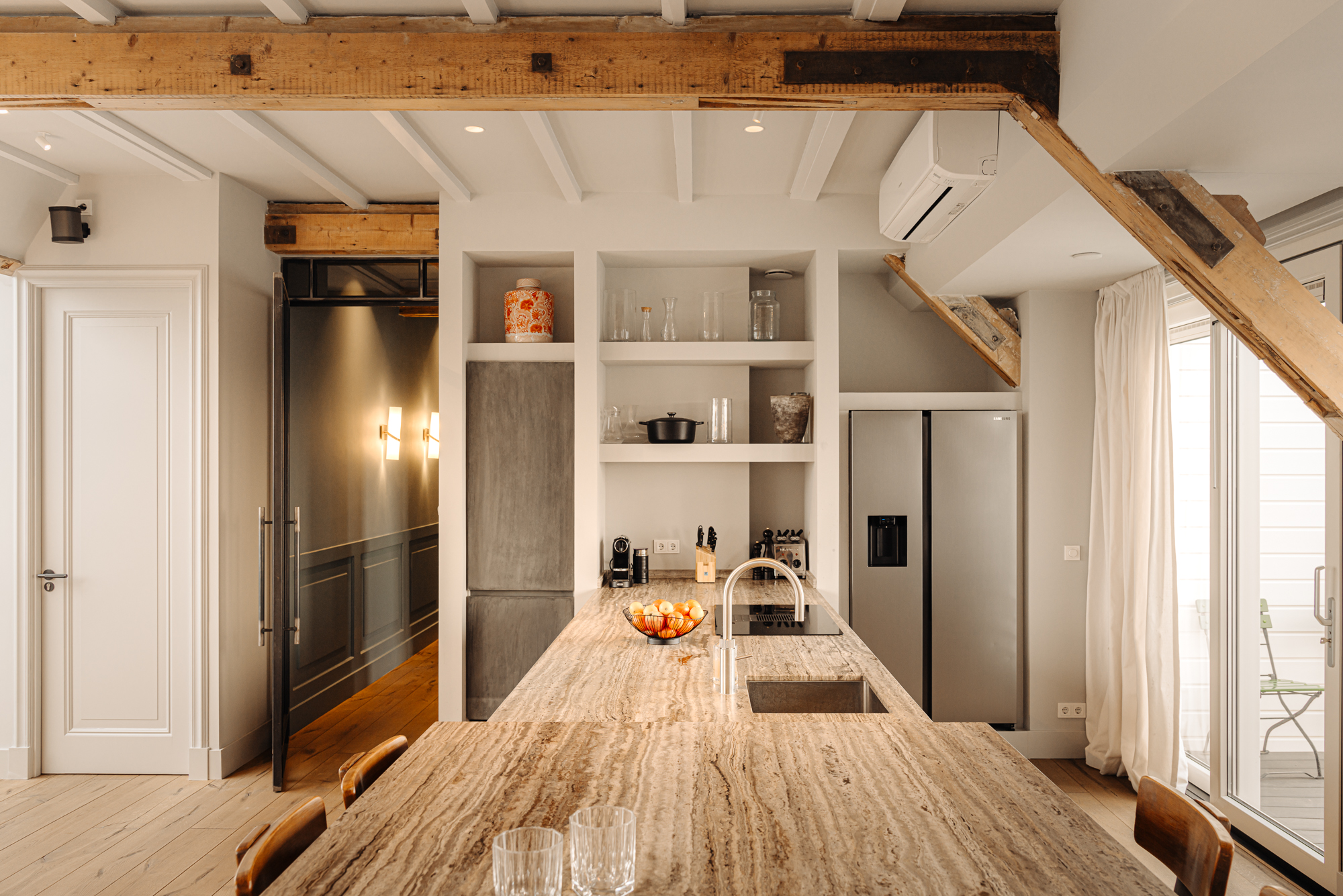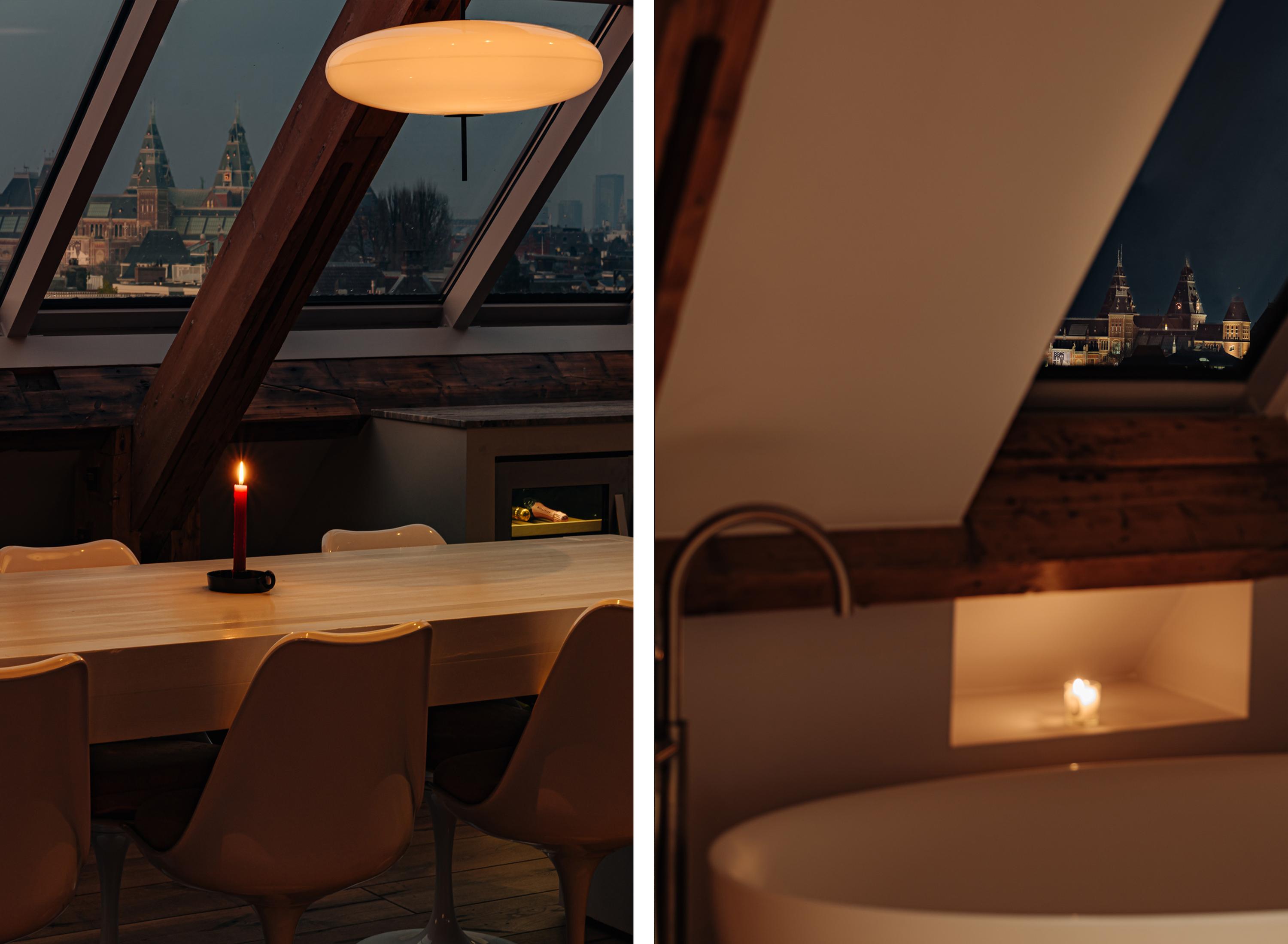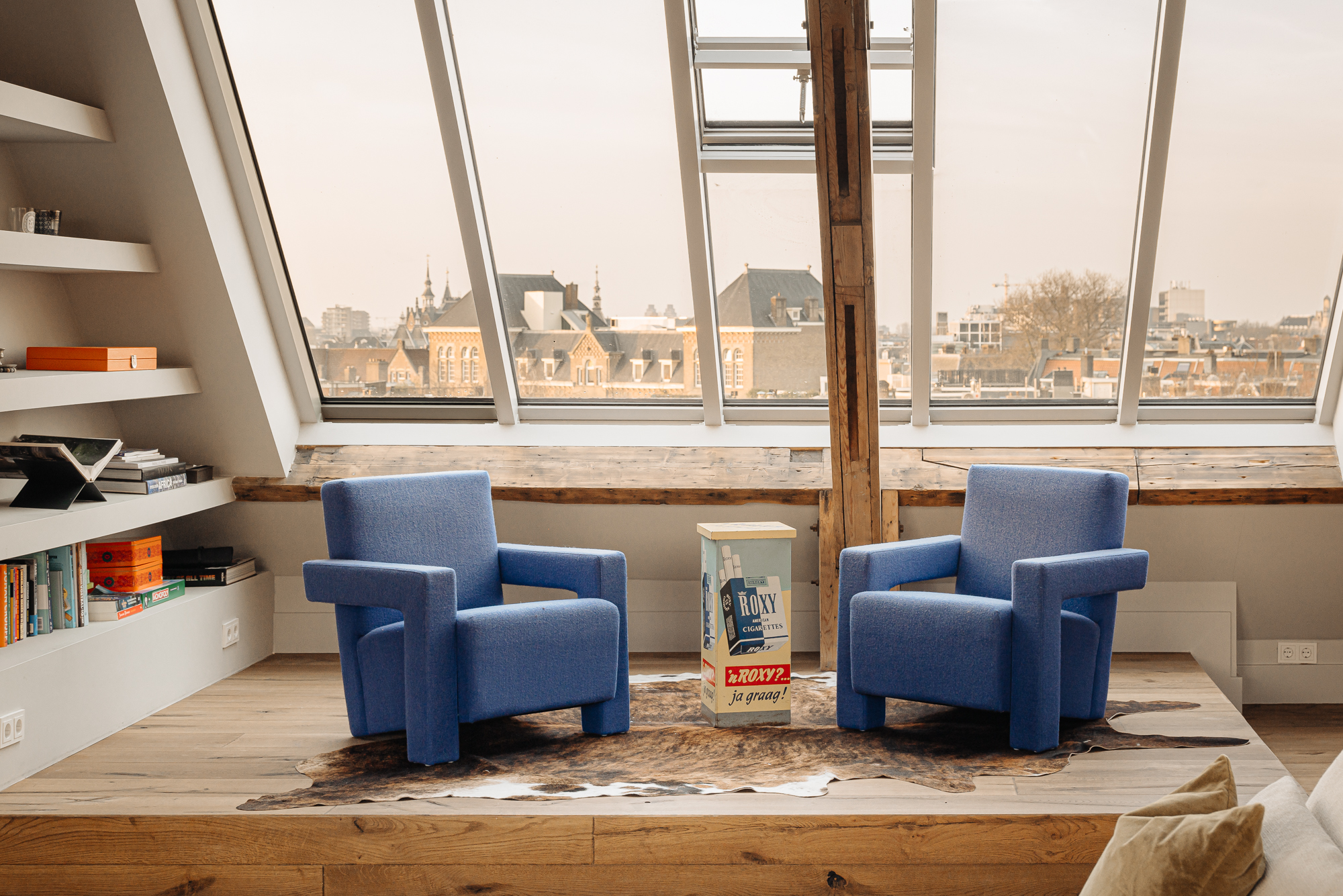 L’Appartement Amsterdam incarne une expérience résidentielle raffinée au dernier étage d’un élégant immeuble du quartier Amsterdam Oud-Zuid. Offrant environ 148 m² baignés de lumière, cette résidence conjugue harmonieusement confort moderne et luxe discret. L’espace de vie décloisonné, souligné par des poutres apparentes en bois et une vue panoramique sur la ville, s’ouvre sur deux balcons orientés sud pour un total de 8 m². De grandes baies vitrées de part et d’autre inondent l’intérieur de lumière naturelle et accentuent la sensation d’ouverture, tandis que les espaces, surélevés pour la réception et les repas, invitent à des instants de convivialité détendue.