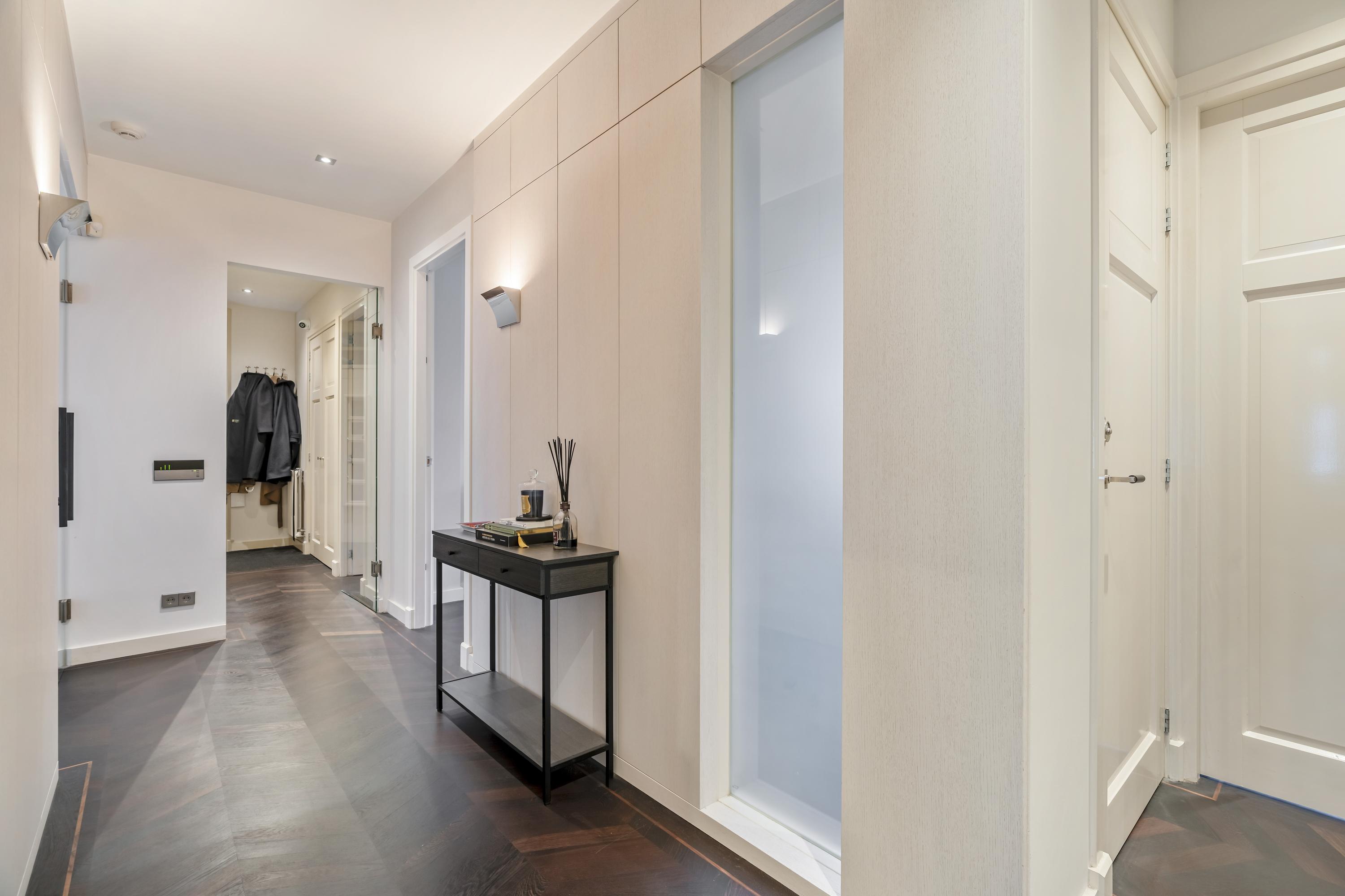 L’appartement Amsterdam Tintorettostraat offre une alliance rare de sophistication contemporaine et de charme établi, situé dans l’un des quartiers résidentiels les plus convoités d’Amsterdam. Couvrant 124 m², ce bien combine des détails architecturaux soigneusement pensés à des matériaux nobles. La pièce de vie spacieuse et baignée de lumière vous accueille avec une cheminée à gaz et de remarquables vitraux, tandis que les portes coulissantes et françaises donnent harmonieusement sur une cuisine Poggenpohl. Celle-ci, équipée d’appareils Gaggenau, d’une plaque Teppanyaki, d’une cave à vin, de deux réfrigérateurs et d’un éclairage design, constitue le centre social et pratique de l’appartement, rehaussé par une seconde cheminée à gaz.