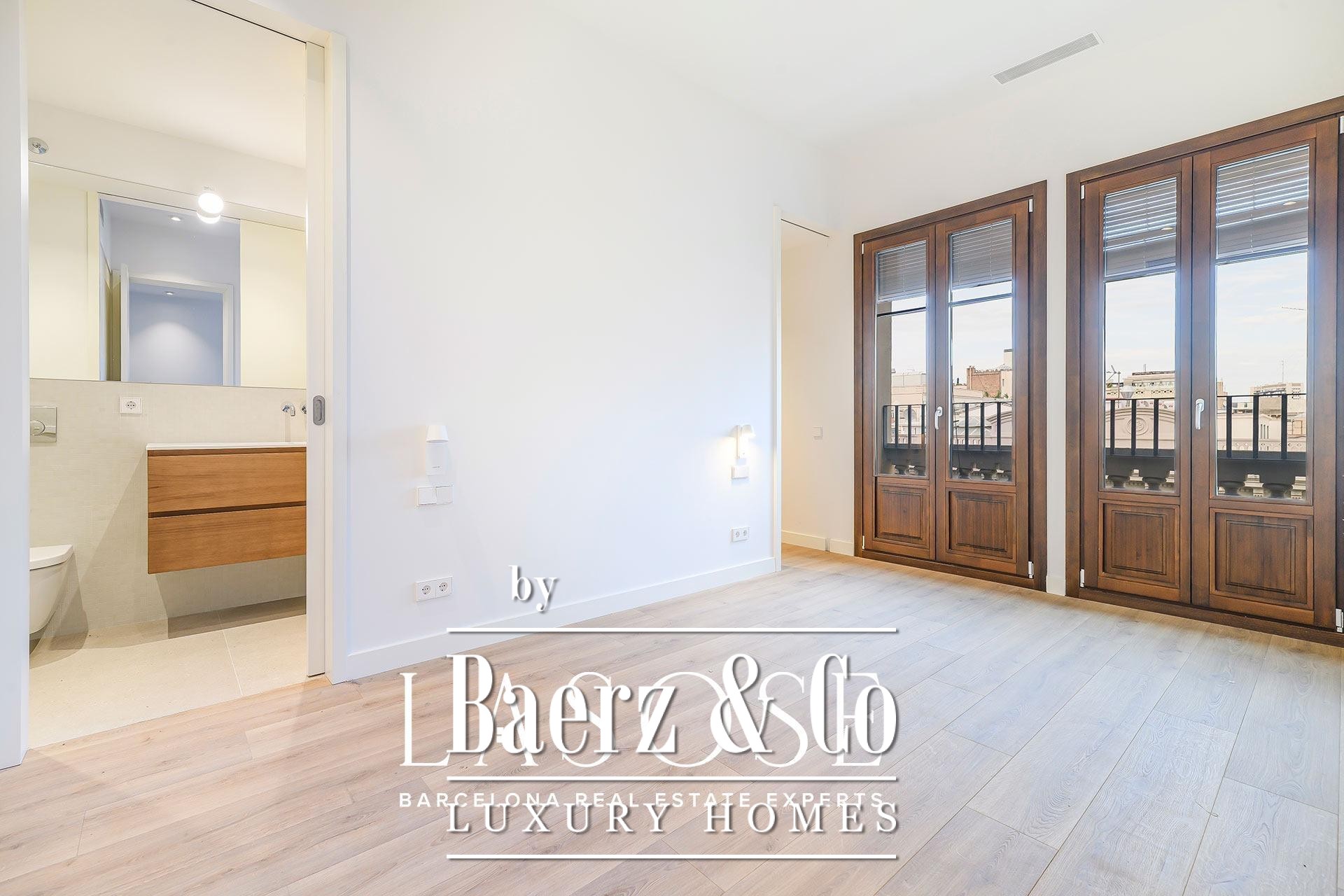 Chaque résidence, entièrement rénovée sur 110 m², offre une sensation d’espace affirmée grâce à de remarquables hauteurs sous plafond et une généreuse luminosité naturelle. Les aménagements soignés comprennent deux chambres et deux salles de bains, alliant fonctionnalité optimale et confort d’exception, tandis que les finitions haut de gamme et les menuiseries de performance supérieure assurent une sérénité durable. Les terrasses privées dévoilent des panoramas immersifs sur l’Eixample, offrant un refuge urbain rare, idéalement adapté au climat méditerranéen.