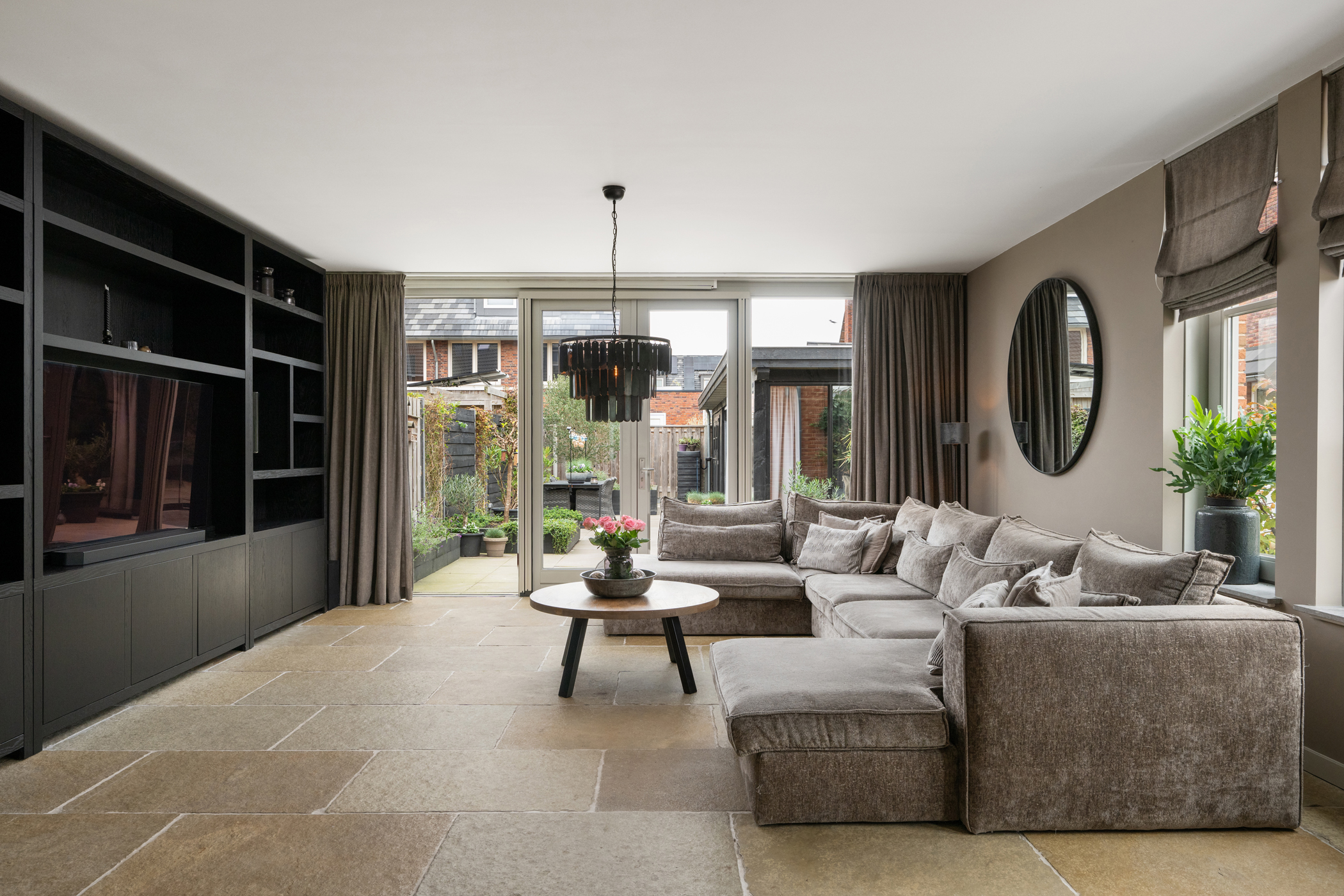 The garden-oriented living room offers a pleasant layout and flows naturally into the modern open kitchen with a large cooking- and sink-island — an ideal setting for cooking, dining and relaxing together. On the upper floors you’ll find four well-proportioned bedrooms, a luxury bathroom and two separate toilets.