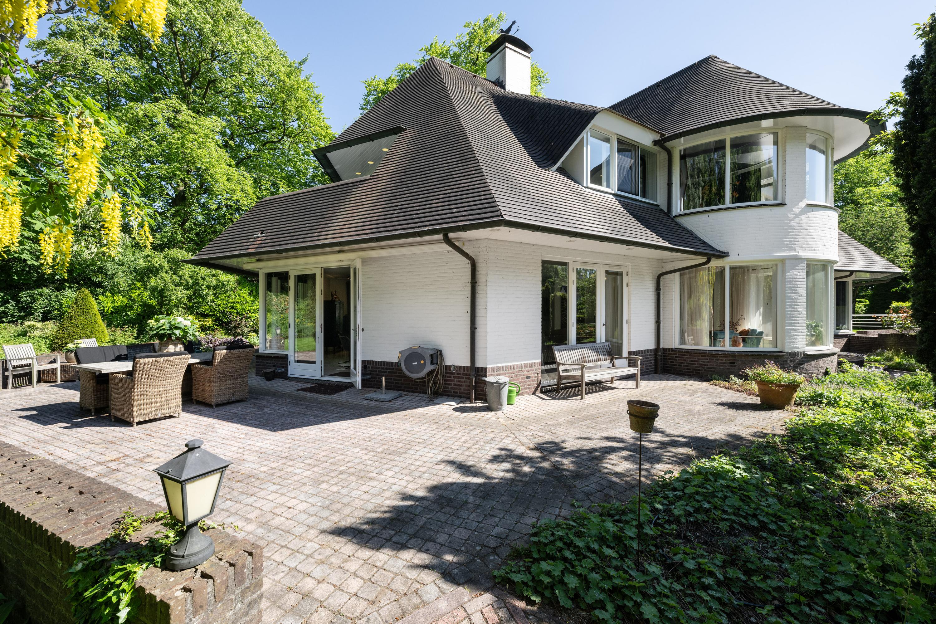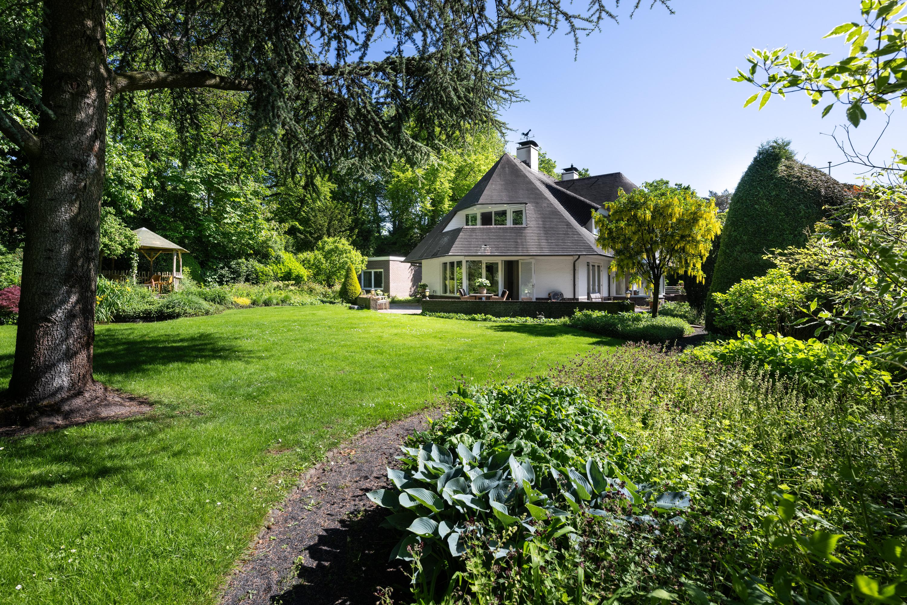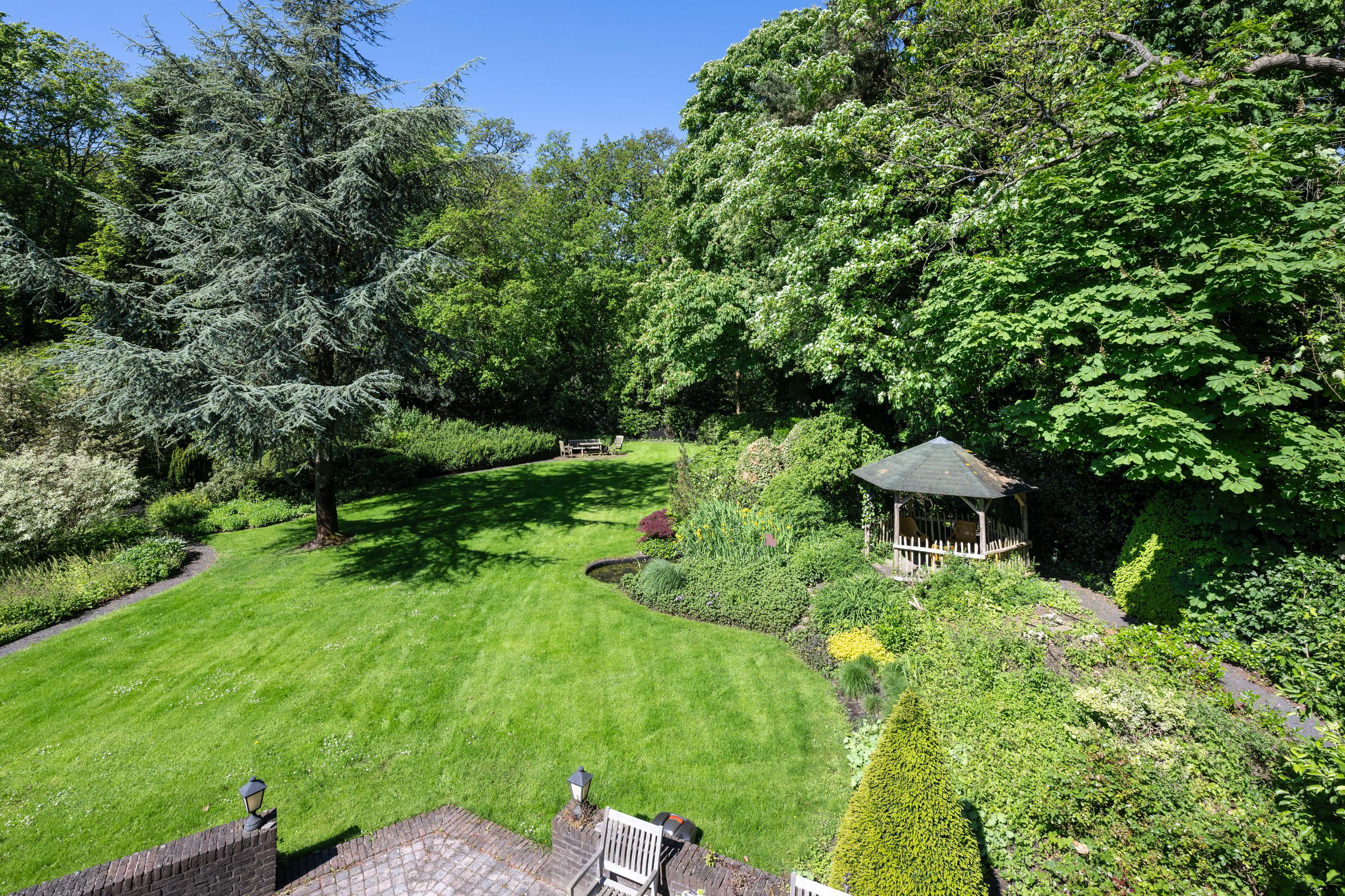 This classic-style country house with indoor swimming pool and double garage is situated in a unique location in Bloemendaal, in the small-scale residential area of Springerhof. The location on the edge of the Schapenduinen forest offers a combination of natural surroundings and close proximity to the village of Bloemendaal. The plot is 2,460m² in size with a beautifully landscaped garden featuring multiple terraces, a pond and a gazebo. There is a private water source and a sprinkler system.