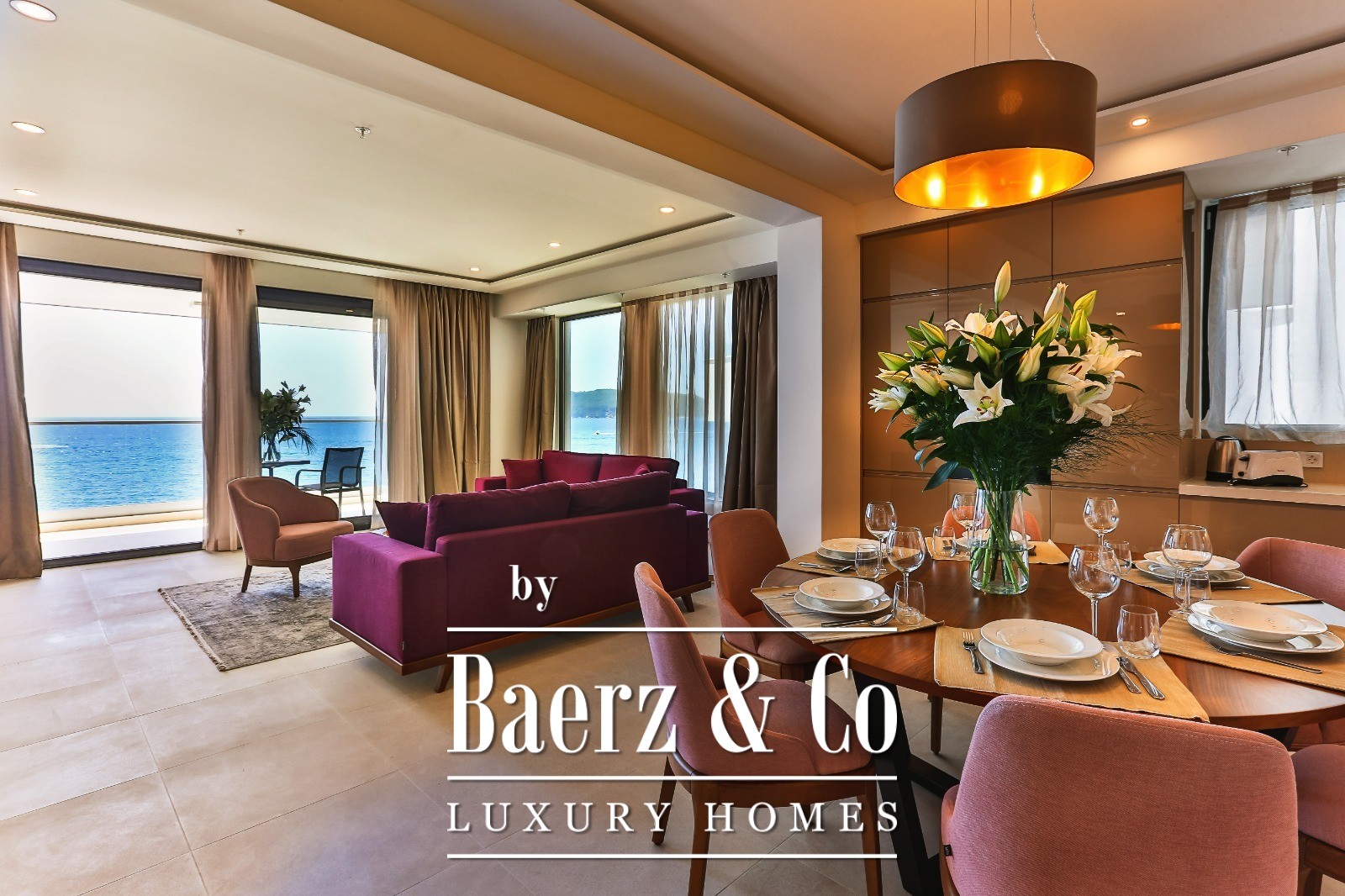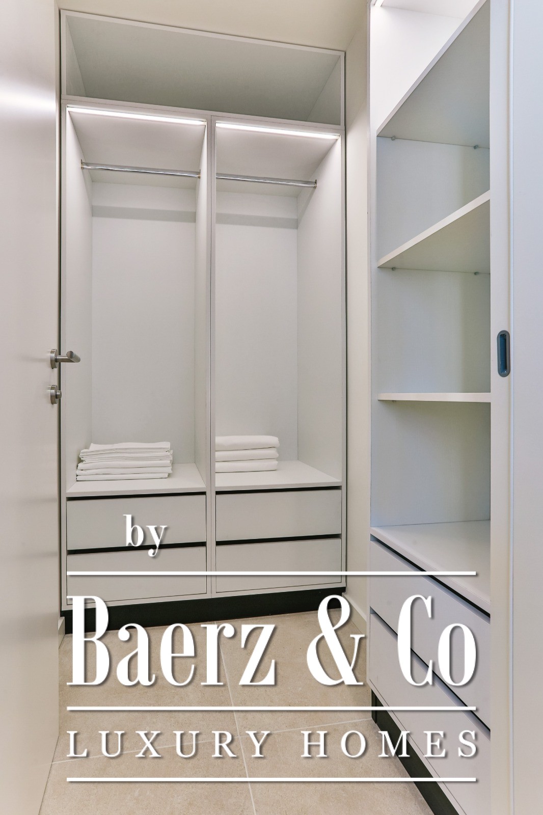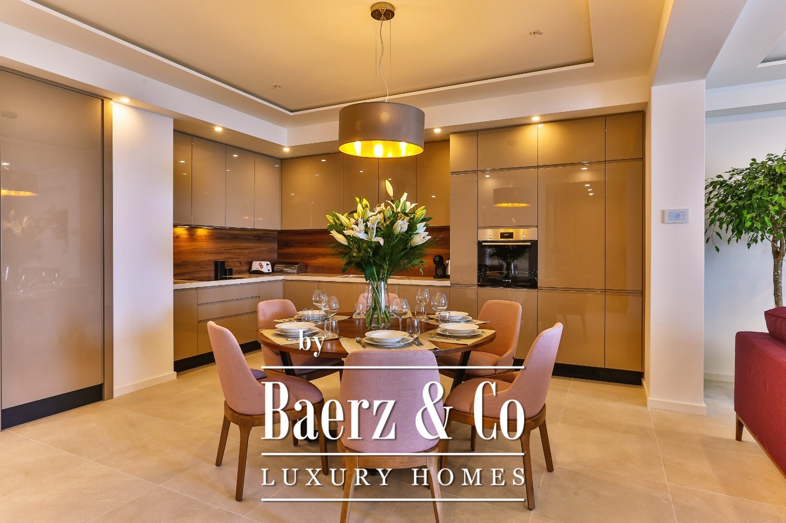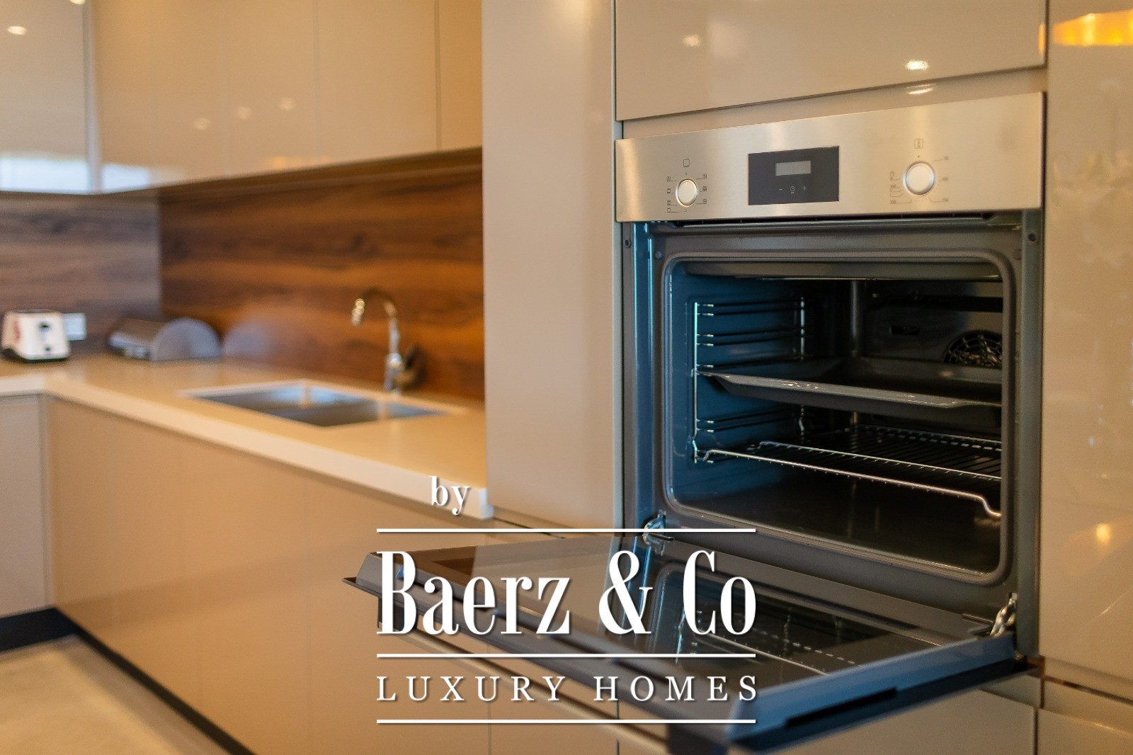 Situé au cinquième étage d’une élégante résidence de 12 étages, ce logement de 107 m² a été conçu pour allier confort et art de vivre contemporain. Il comprend deux chambres, deux salles de bains, un hall d’entrée et une pièce à vivre ouverte avec cuisine et coin repas. De larges baies vitrées s’ouvrent sur une terrasse spacieuse, offrant une vue panoramique sur la mer et cultivant une sensation de sérénité et de continuité entre intérieur et rivage.