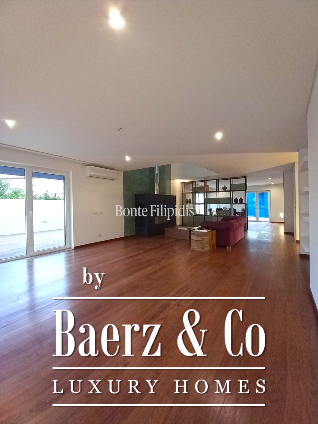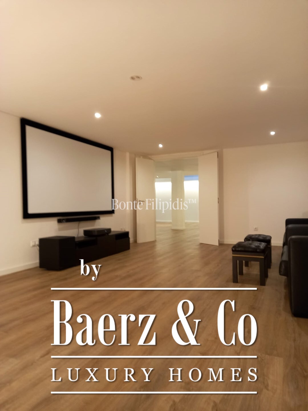 The villa is equipped with air conditioning and heating throughout, including the basement, underfloor heating, and pre-installation for home entertainment systems.