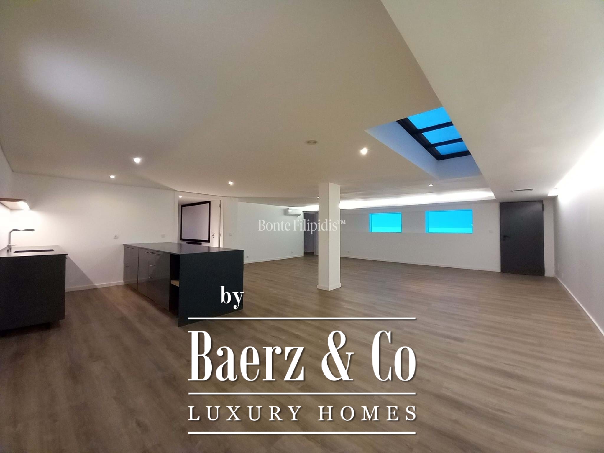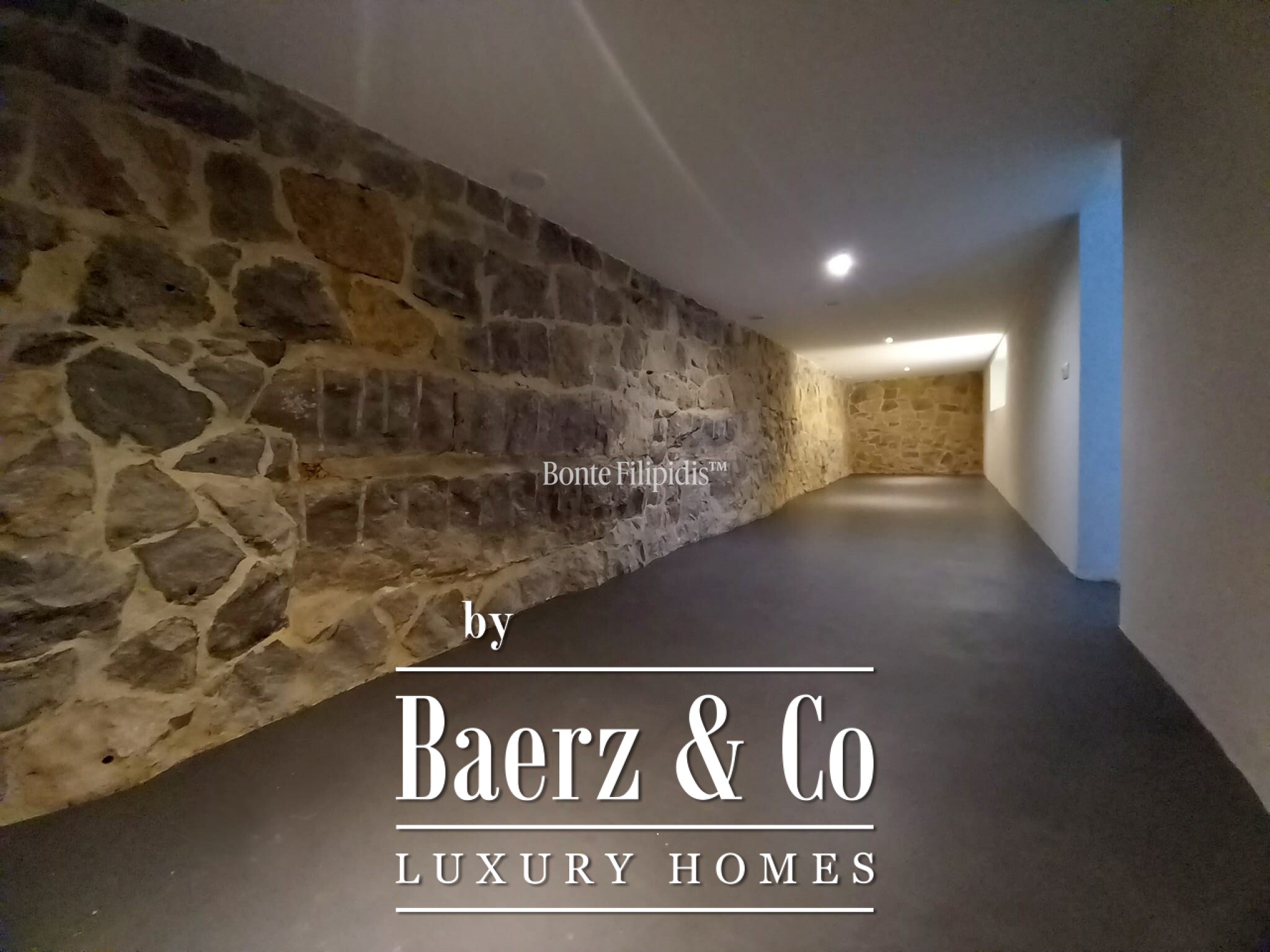The lower level, with approximately 300 sqm, serves as a leisure and support floor. It includes a 61.49 sqm garage, a 14.63 sqm staff or guest bedroom with private street access, a 31.29 sqm home cinema room, a 74.39 sqm entertainment area, a 31.59 sqm wine cellar, a bathroom, and several multipurpose rooms. This level offers flexibility for creating spaces such as a gym, spa and wellness area, games room, or additional social areas, depending on individual needs.