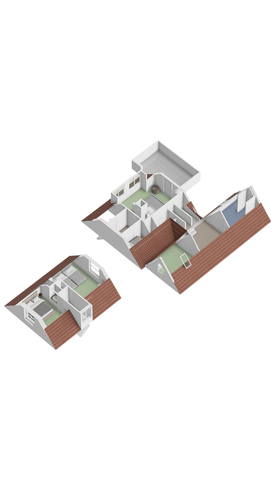 Through the front door, you enter a hallway that leads to the front house. At the front is the semi-open kitchen, equipped with a 5-burner gas hob, oven, dishwasher, and a freestanding fridge-freezer. Adjacent to the kitchen is the cozy dining room with beautiful light from the large windows, forming the warm heart of the home. Next to the dining room is a comfortable living room, which can easily switch functions with the dining room if desired. From the dining room, a staircase also leads to the first floor of the front part of the house.