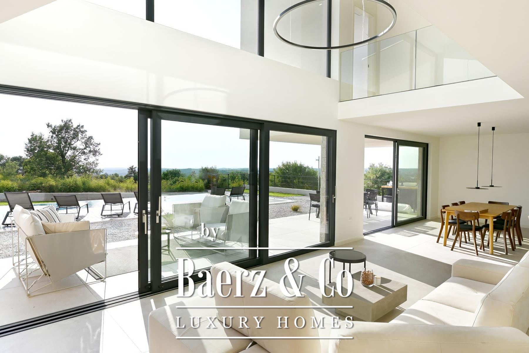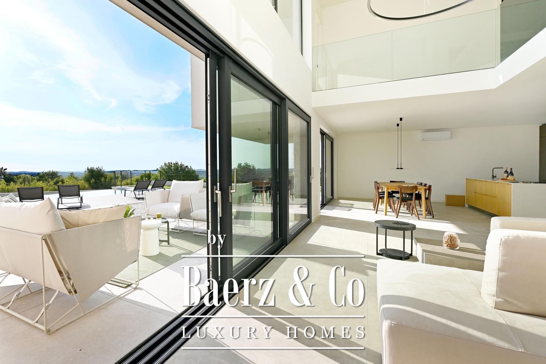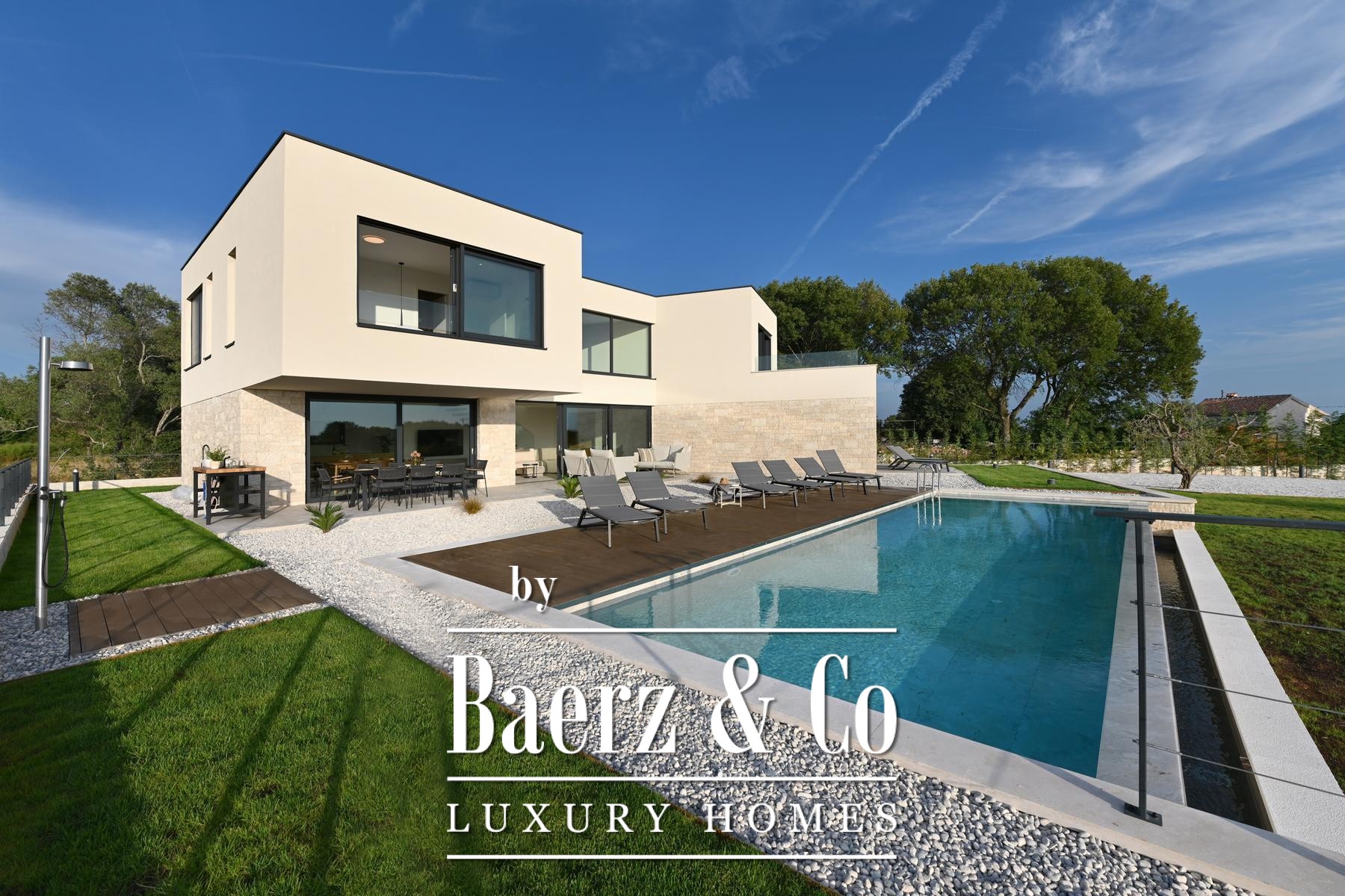 La Villa Kanfanar avec piscine invite à la découverte à la sortie de Rovinj, au sein du paisible village de Jural. Cette villa de 272 m² incarne l’art de vivre méditerranéen raffiné, nichée dans un environnement naturel préservé et à seulement 1 500 mètres de la mer, offrant ainsi intimité et sérénité. Répartie sur deux niveaux, la villa dispose d’un agencement soigné. Le rez-de-chaussée comprend un hall d’entrée accueillant, un salon lumineux entièrement vitré, une cuisine avec ilot central, un espace salle à manger, une chambre d’amis avec parquet, une salle de bains, des toilettes supplémentaires ainsi que deux généreuses terrasses couvertes propices à la convivialité et à la détente. À l’étage, trois chambres bénéficient chacune d’une salle de bains privative, avec en complément une terrasse non couverte offrant une vue imprenable sur la baie de Lim et l’Adriatique. Sur une parcelle de 871 m², cette propriété comprend une piscine de 11 x 4 mètres, une douche extérieure, un mobilier de jardin soigneusement sélectionné et de vastes espaces extérieurs. Climatisation dans chaque pièce et option de chauffage au sol assurent un confort toute l’année. La Villa Kanfanar avec piscine constitue une rare opportunité en Croatie, idéale pour la vie de famille privée ou pour l’investisseur recherchant un havre de paix près de la mer.