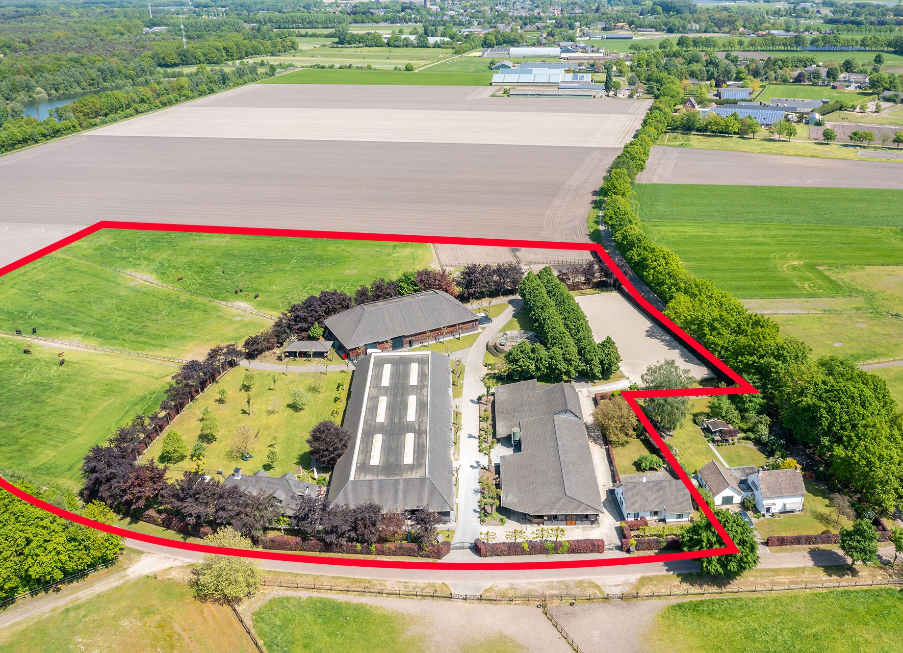 Ce domaine équestre à Leende propose une alliance rare entre art de vivre raffiné et installations équestres de pointe sur une parcelle de 38 230 m² au bord de la forêt du Leenderbos. L’ensemble comprend une ferme indépendante de 206 m² composée de deux chambres, un vaste séjour, une cuisine ouverte, une suite parentale, de généreux espaces techniques et des intérieurs intégralement isolés. Une ancienne ferme complémentaire accueille stagiaires et palefreniers tout en conservant son charme résidentiel avec trois chambres sur deux niveaux.