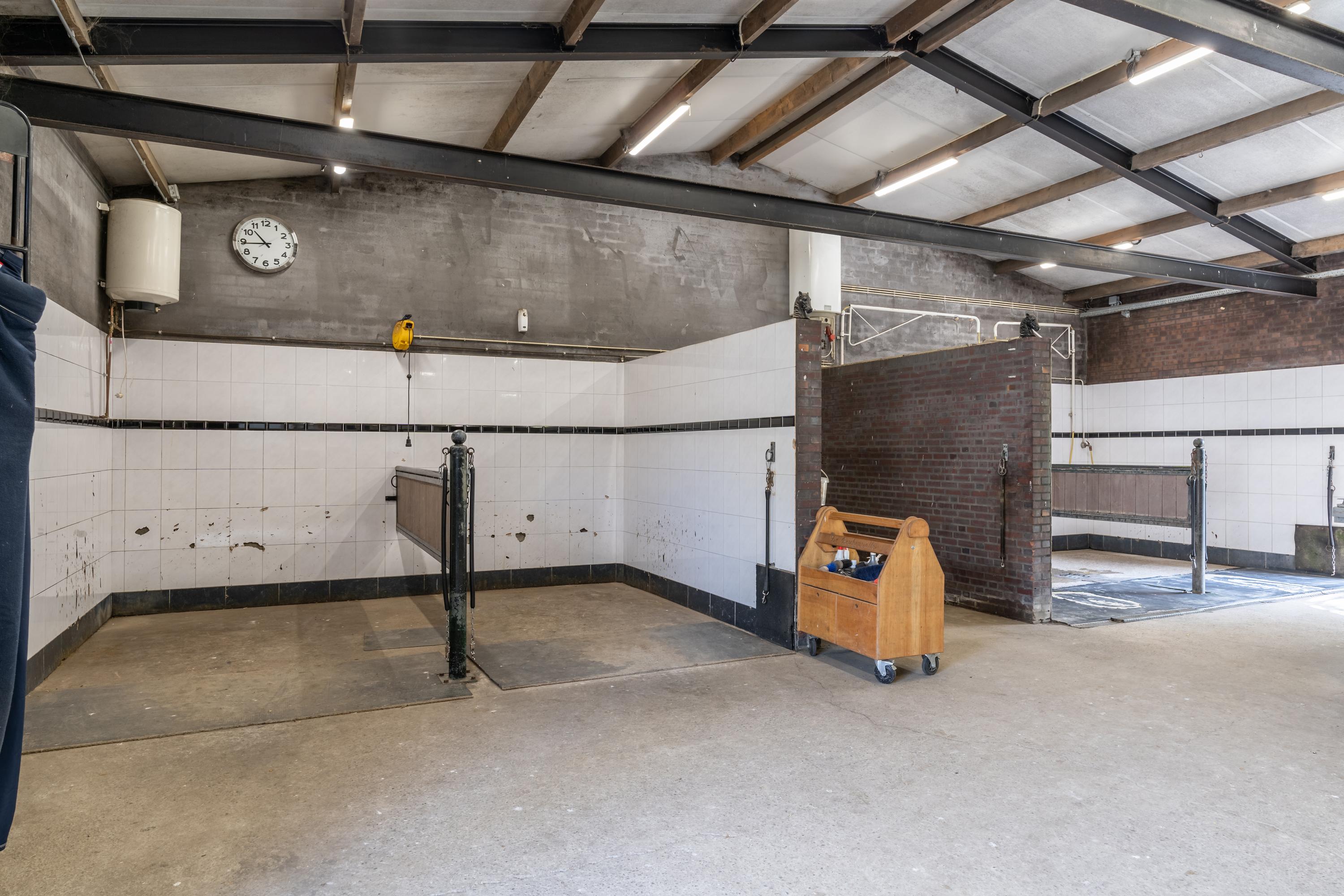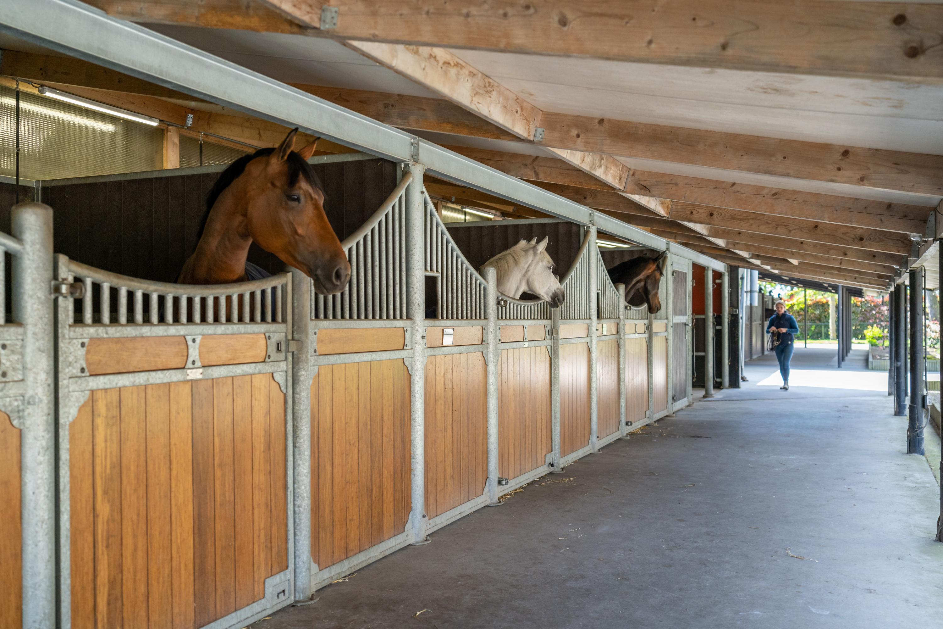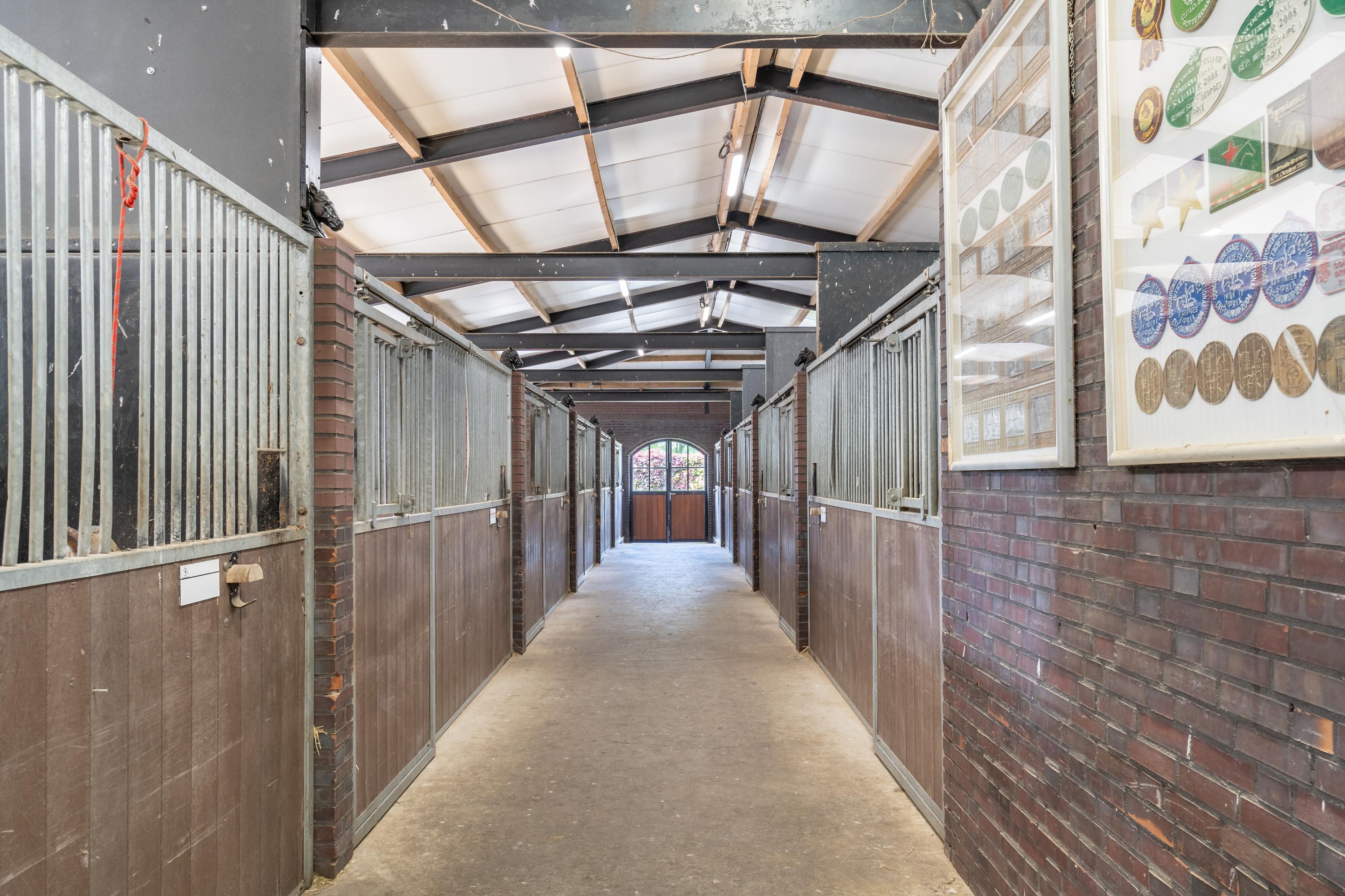 Consacré à la quête d’excellence équestre, le domaine abrite 33 boxes répartis sur trois ailes d’écuries, chacune conçue dans un mélange de maçonnerie, acier et finitions haut de gamme. Le manège intérieur mesure environ 22 sur 62 mètres et conjugue miroirs muraux, sol de type ebb and flow avancé, ainsi qu’une lumière naturelle abondante. Une carrière extérieure offre les mêmes proportions généreuses dans un écrin végétal. Les installations comprennent un marcheur Liberty pour chevaux, un rond de longe, trois paddocks à sol sableux, un hangar d’élevage et un ensemble complet de sellerie, buanderie et salles de pansage.