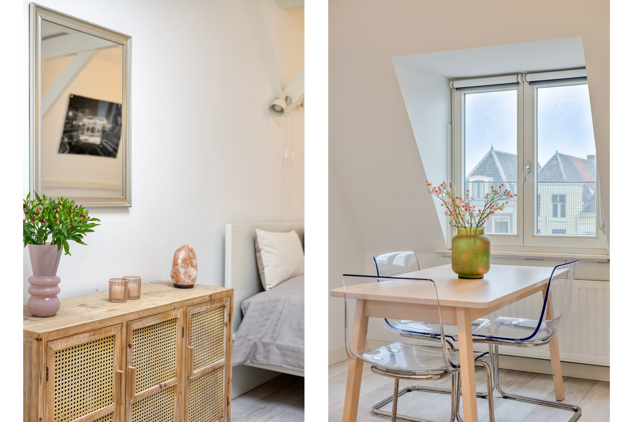 Trois terrasses distinctes sur le toit, dont une spacieuse attenante à la cuisine et à la salle à manger, offrent un espace extérieur rare en centre-ville. Les deux cuisines – l’une étant particulièrement adaptée aux passionnés de gastronomie – invitent à profiter du marché renommé de Leyde et des producteurs locaux, accessibles à pied depuis l’entrée. De vastes espaces de rangement se situent au sous-sol, en cave et dans les combles, garantissant un art de vivre organisé et raffiné.