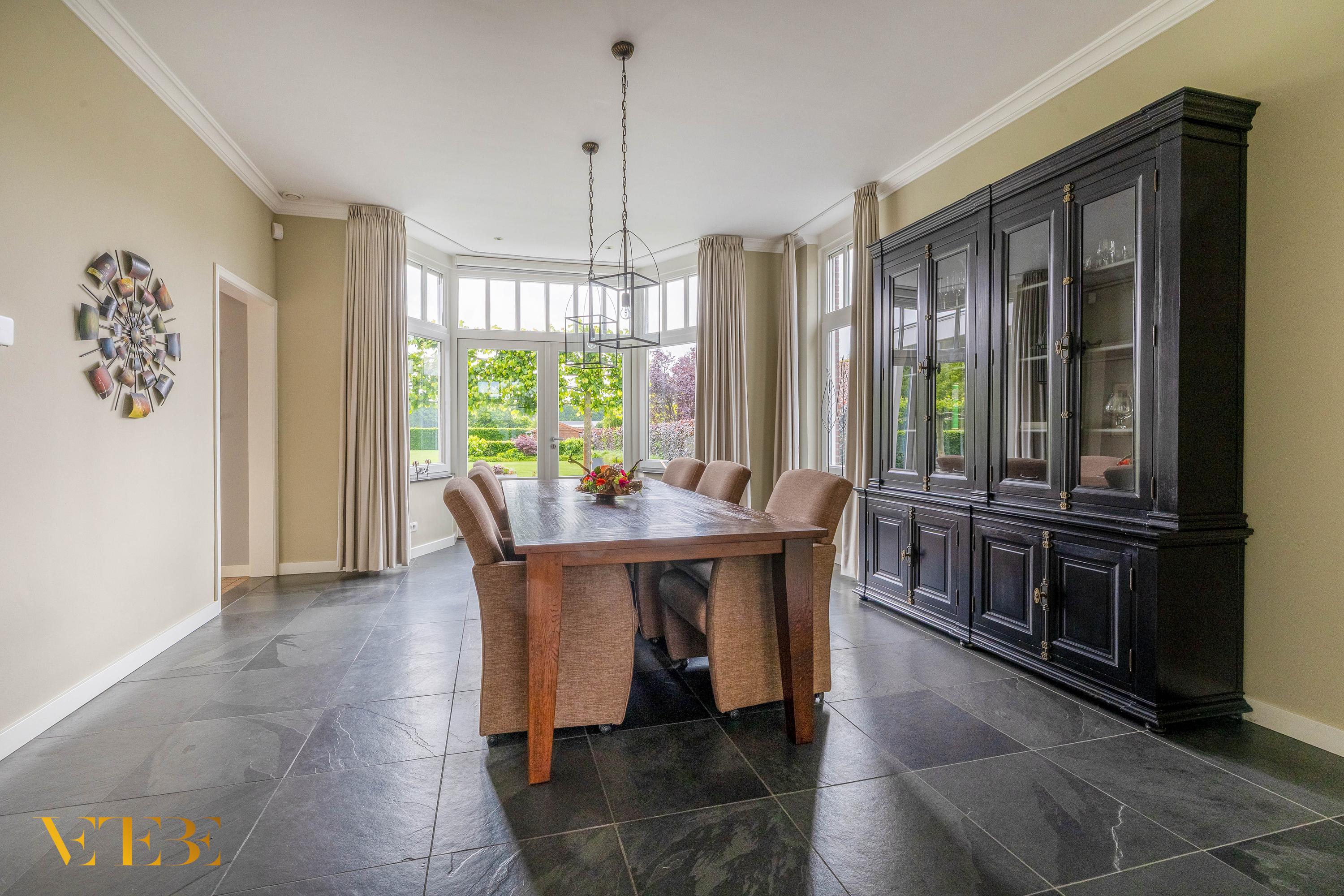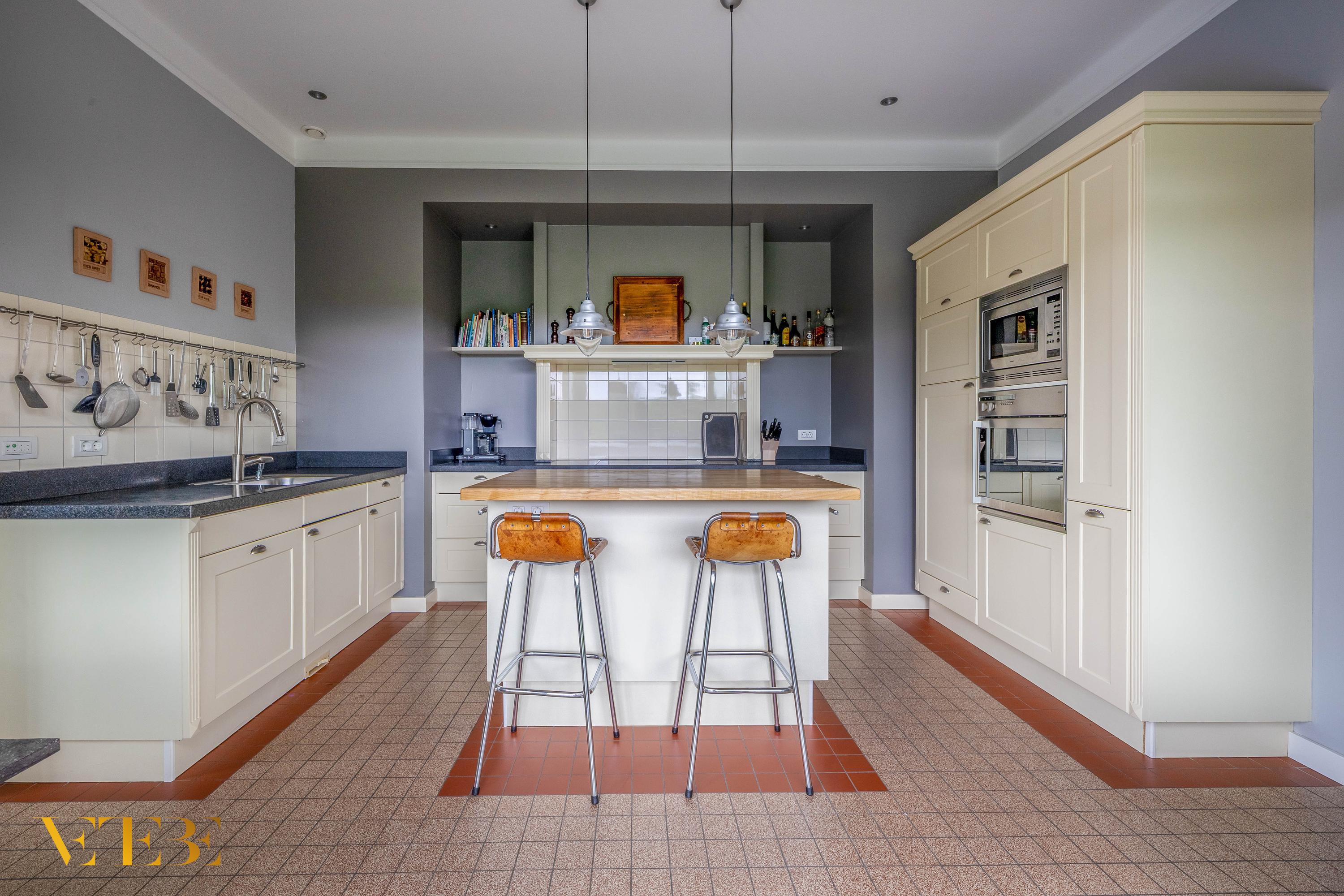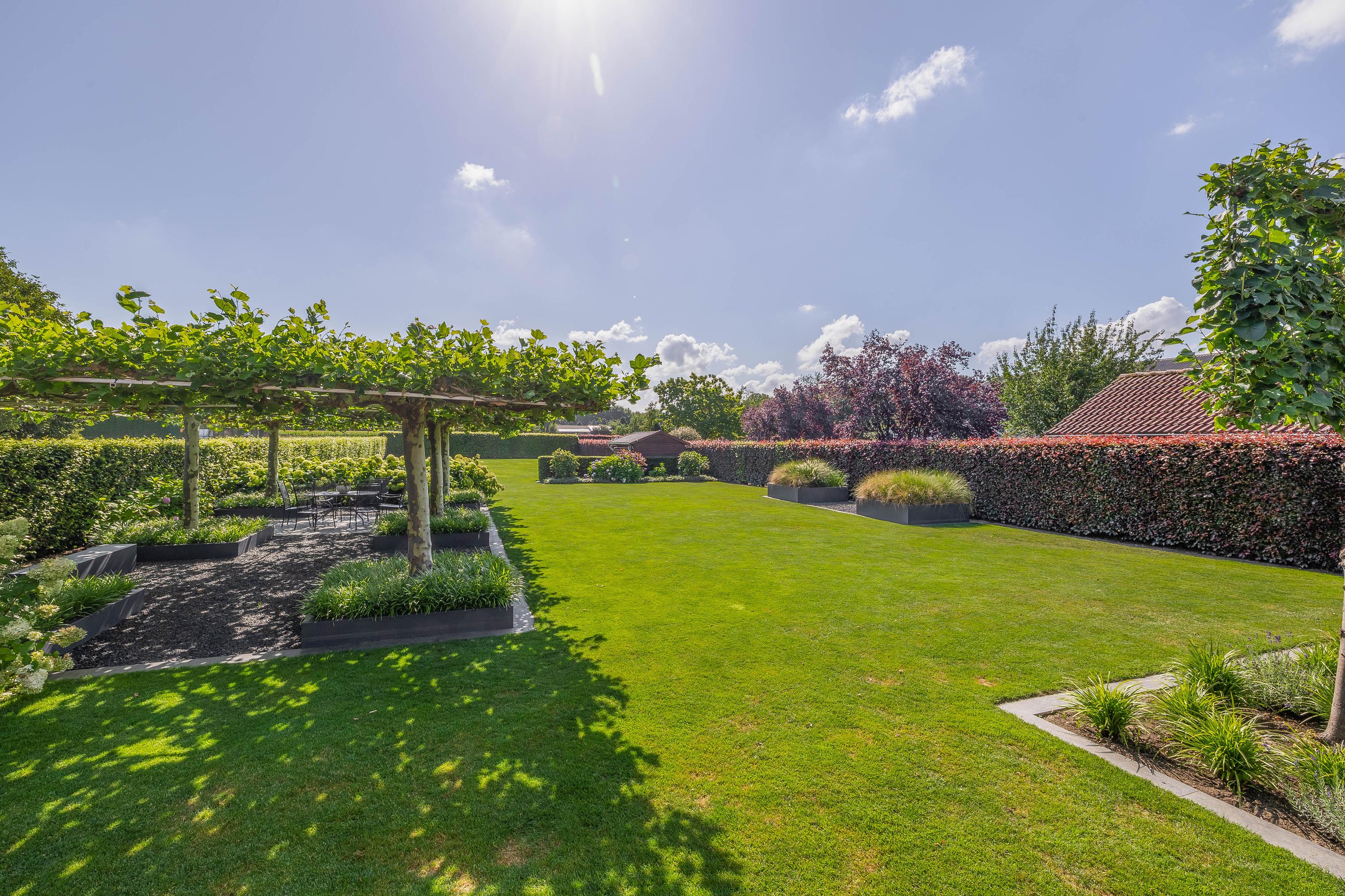 Cette villa individuelle à Lomm se distingue par son vaste terrain de 1 845 m² et sa surface habitable de 197 m². Rarement un jardin d’une telle profondeur est proposé : entièrement clos et soigneusement aménagé pour préserver la tranquillité et l’intimité. Les plantations matures encadrent une terrasse ombragée dotée d’un puits de lumière ; les pièces de vie, exposées sur trois façades, baignent dans la lumière, sublimées par de hauts plafonds et des finitions discrètes qui soulignent la quiétude de la villa.