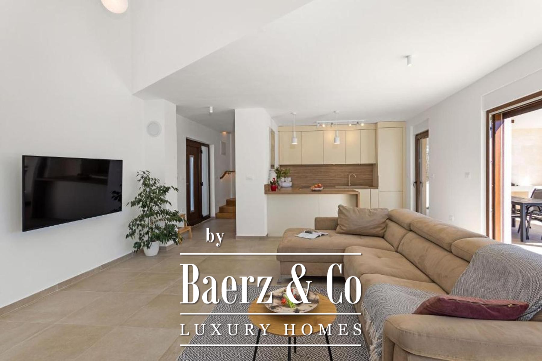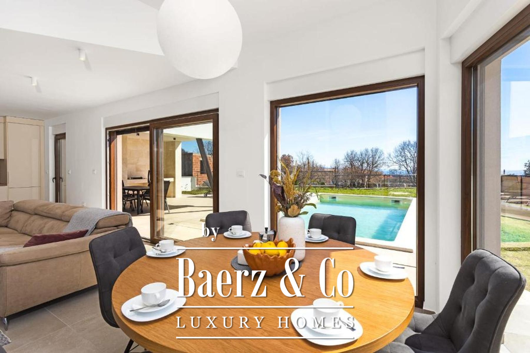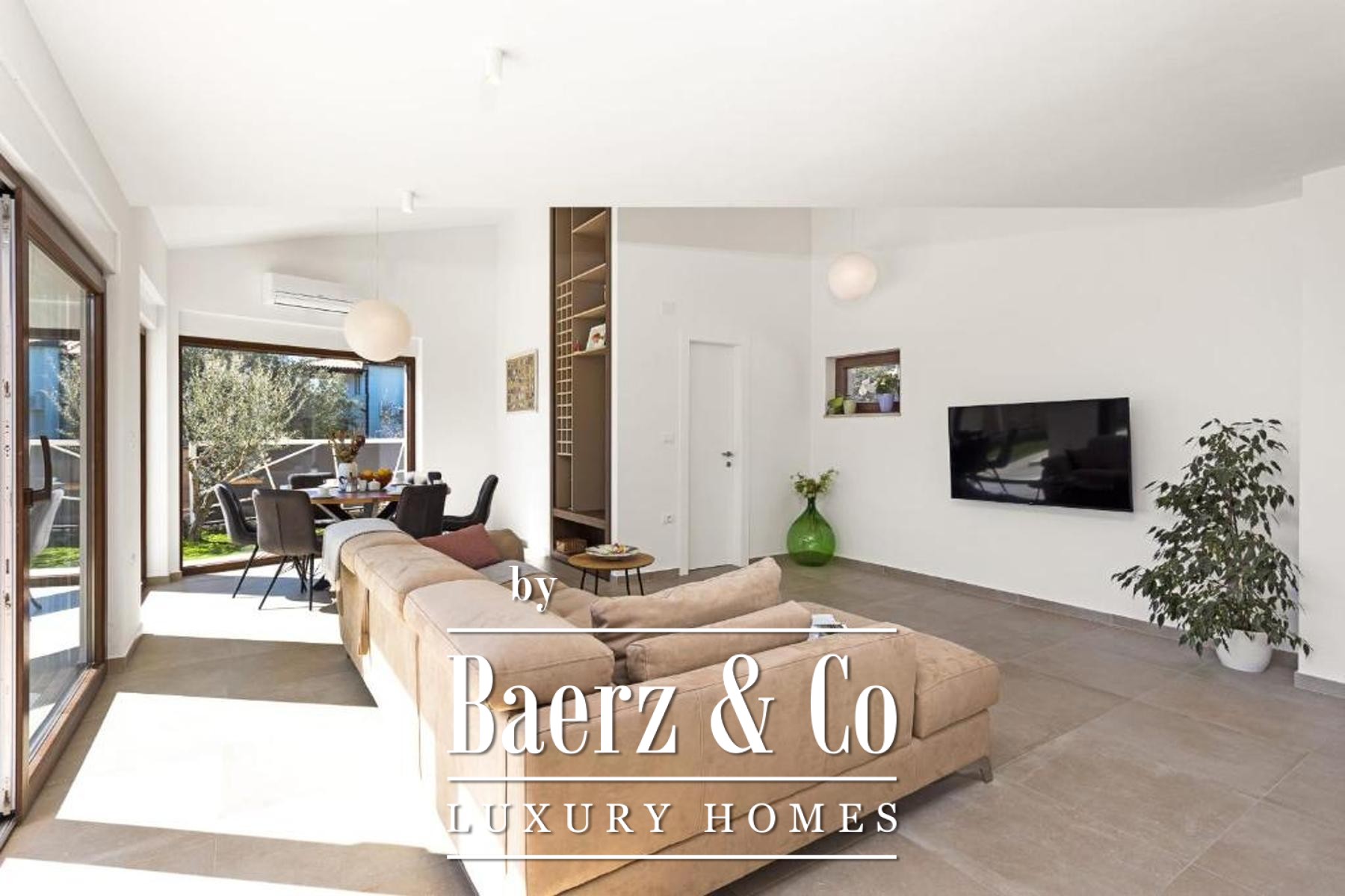 La villa moderne Marčana se niche paisiblement près de Krnica, attirant le regard par son design contemporain raffiné et ses vues marines panoramiques englobant les îles environnantes. Cette propriété offre une surface habitable de 100 m² élégamment répartie sur deux niveaux, conçue pour privilégier confort et espace. Le rez-de-chaussée accueille un séjour lumineux à concept ouvert mêlant salon, cuisine et salle à manger, où de larges baies vitrées invitent la lumière naturelle et créent une fluidité parfaite entre intérieur et extérieur. Une salle de bains ainsi qu’une réserve dédiée apportent fonctionnalité à ce niveau.