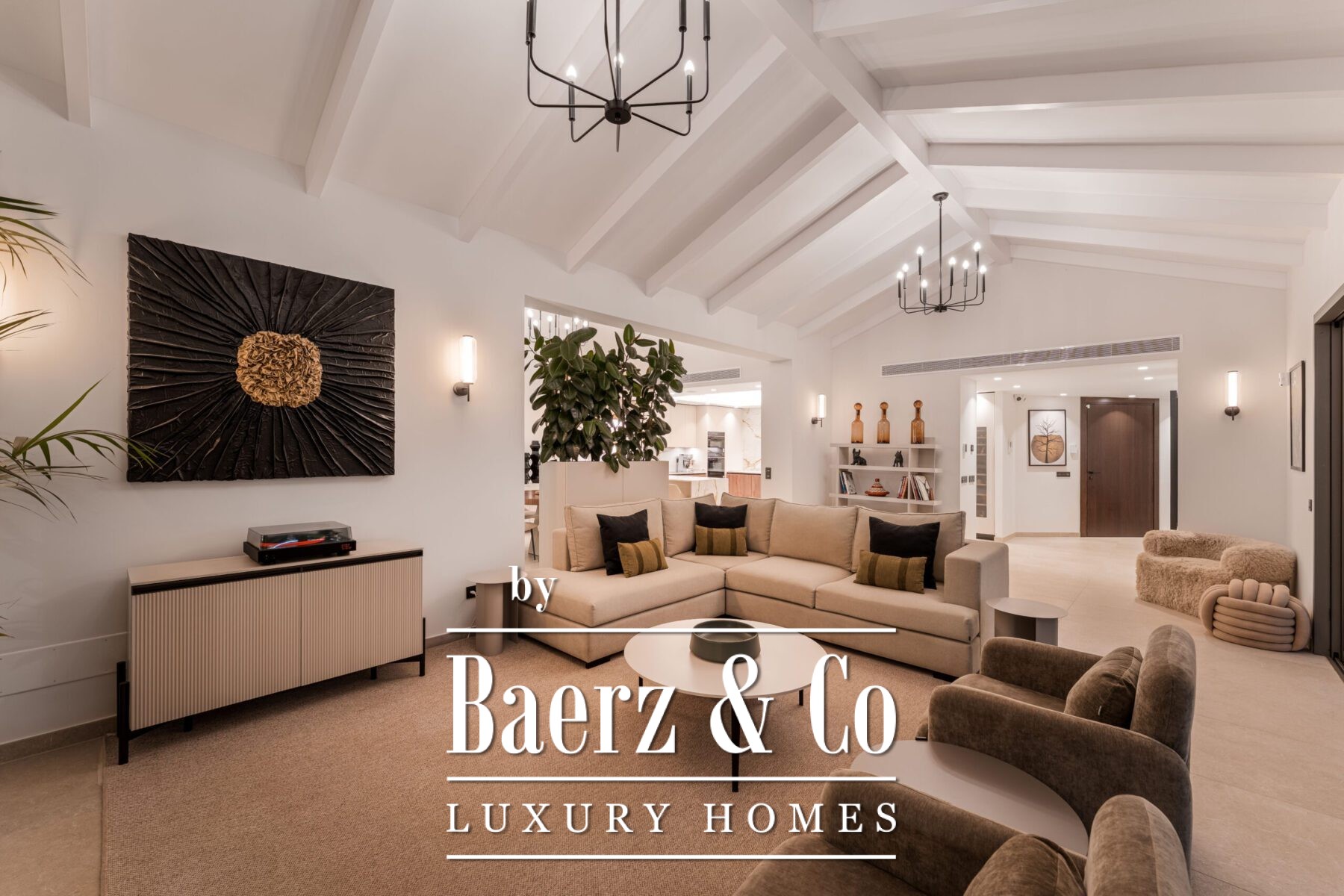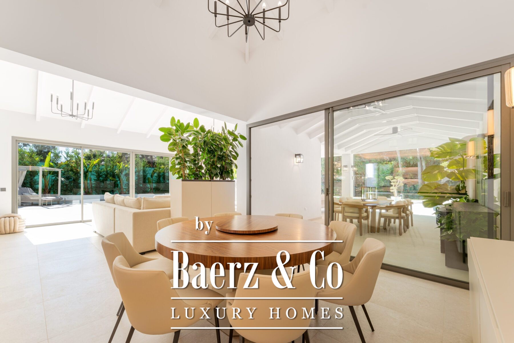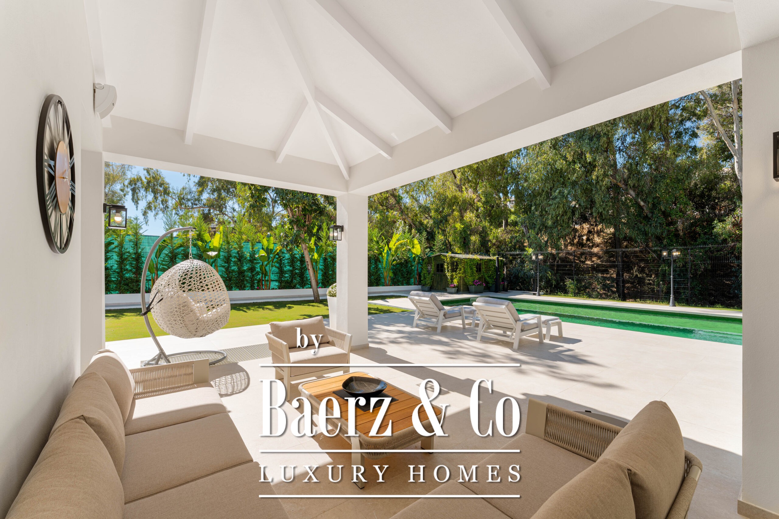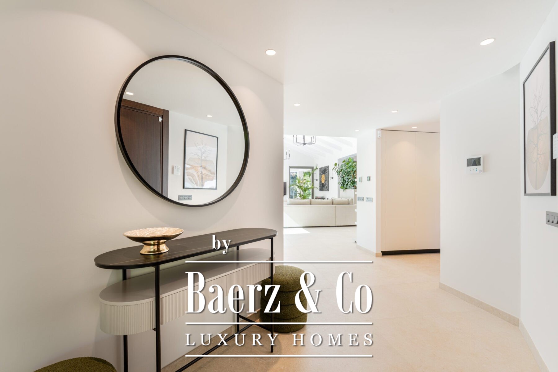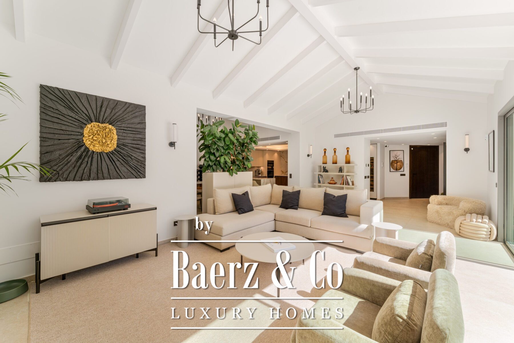 La villa Nueva Andalucía Marbella incarne une esthétique raffinée et un luxe discret, offrant des espaces de vie contemporains généreux au cœur paisible de La Cerquilla. Cette villa de cinq chambres, entièrement rénovée en 2025, associe design fonctionnel et finitions intérieures élégantes, illustrant un mode de vie moderne souligné par la lumière naturelle et le confort. Située dans le prestigieux Golf Valley de Marbella, la propriété se trouve à quelques minutes des clubs de golf Los Naranjos, Las Brisas et Aloha, tout en offrant un accès rapide à des infrastructures haut de gamme et aux restaurants renommés de Puente Romano.
