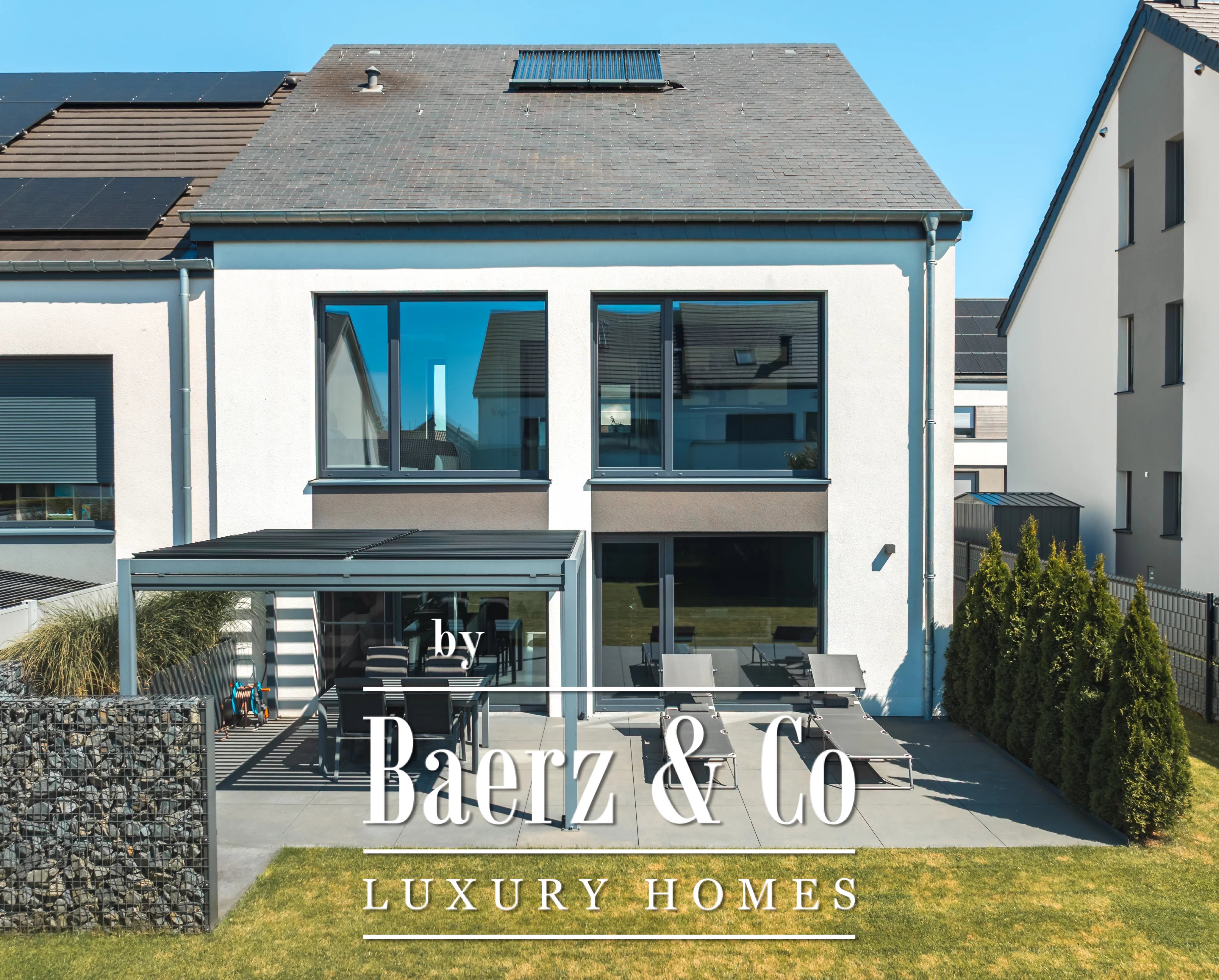 Cette maison jumelée à Nothum allie la rigueur de la modernité au confort durable sur 145 m² habitables, implantés sur un terrain de 371 m². La propriété marie l’innovation technique—domotique, fenêtres à triple vitrage avec cadres en aluminium anti-effraction, chauffage au sol Buderus à mazout—à des espaces finement agencés. Édifiée en 2015 par Cardoso Construction, chaque détail répond aux exigences d’un art de vivre raffiné, du salon baigné de lumière avec cuisine équipée attenante, jusqu’aux trois chambres harmonieuses et deux salles de bains contemporaines. L’agencement intelligent se prolonge par des combles aménageables de 57,47 m², offrant la perspective d’espaces complémentaires selon l’évolution des besoins.
