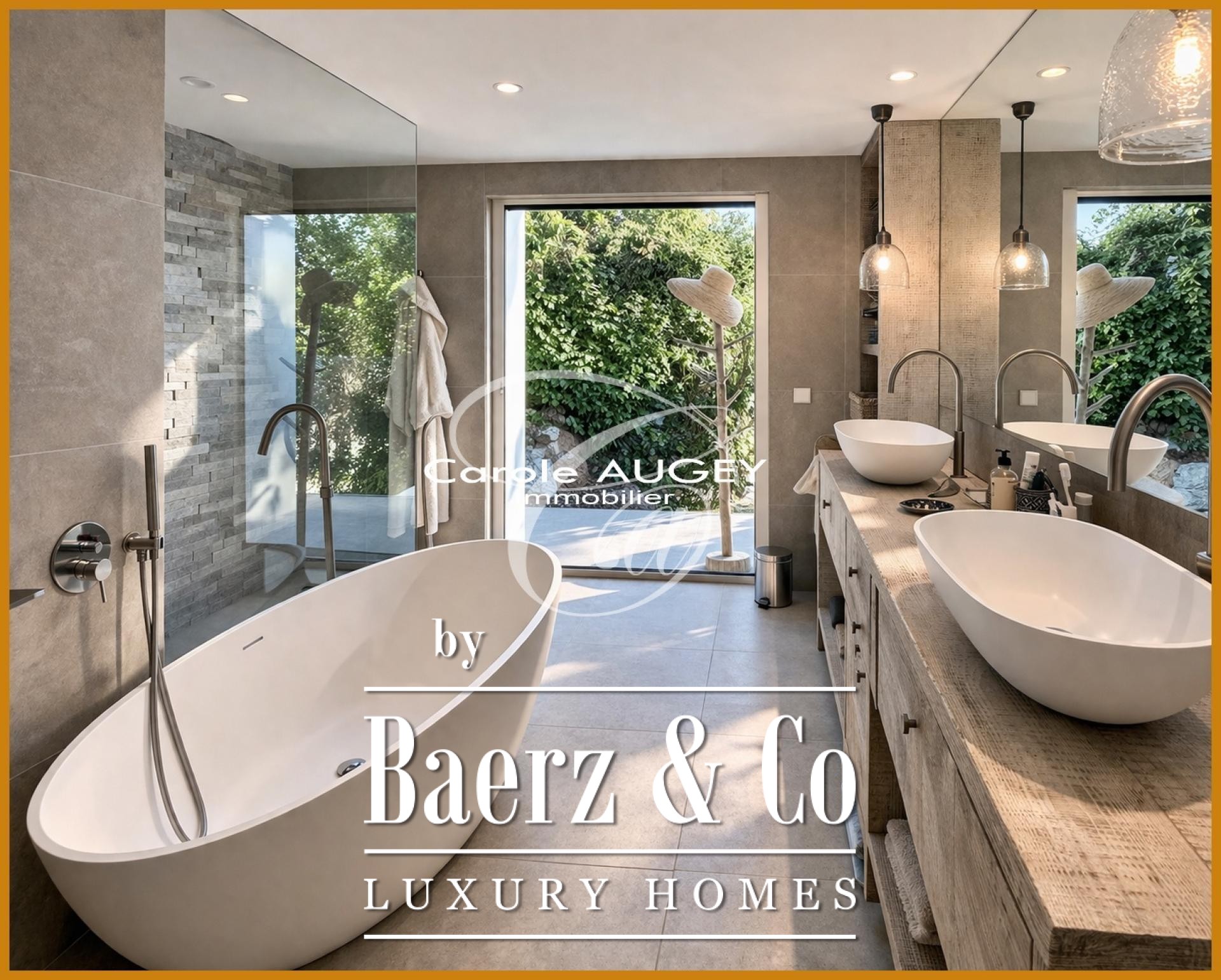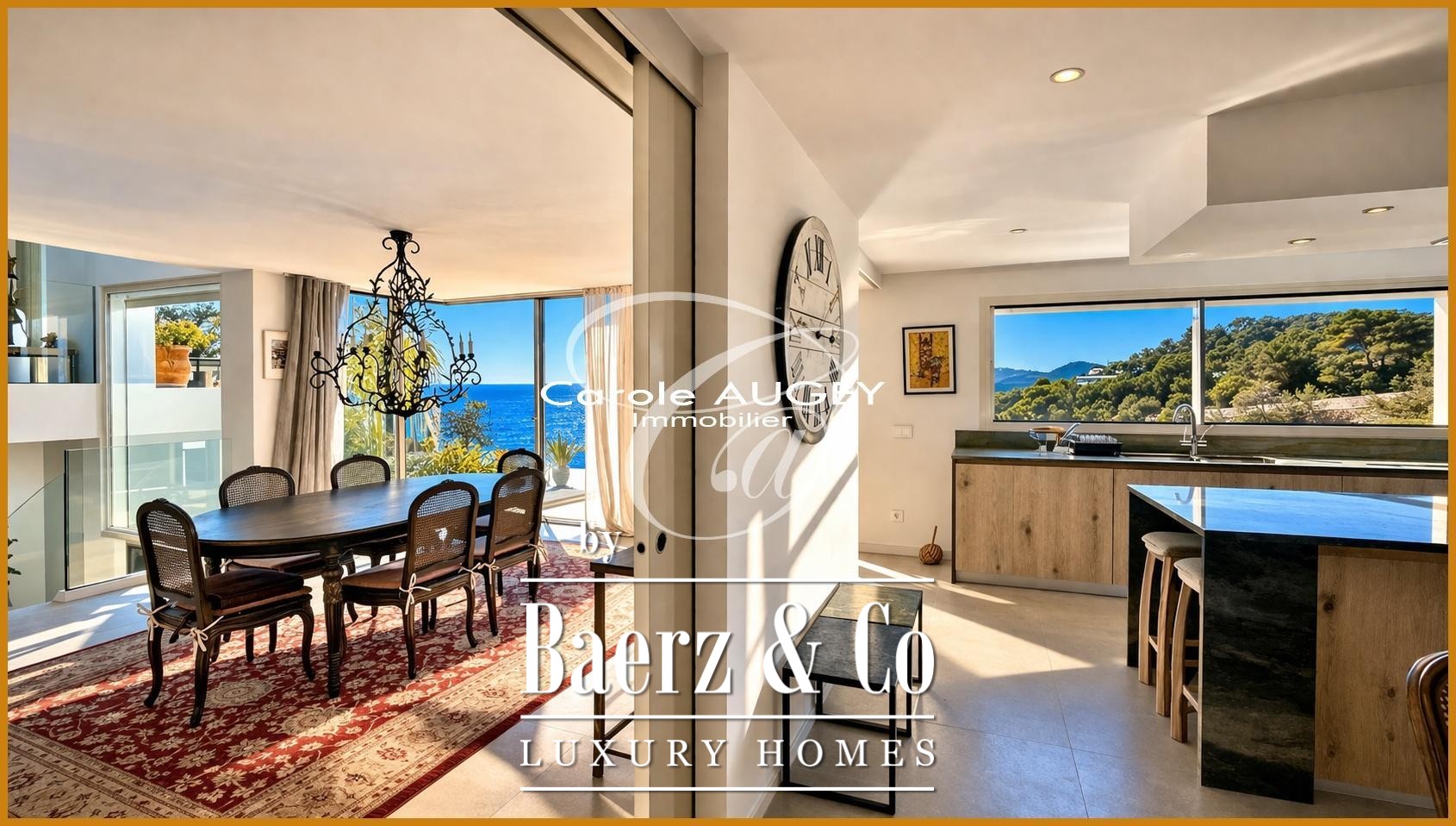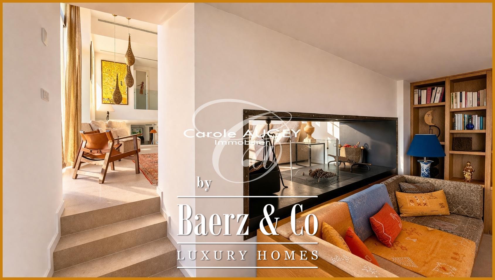 La propriété compte 5 suites, dont un studio accessible de façon indépendante. La suite principale offre une vue dégagée et une atmosphère apaisante. L’espace de vie principal se distingue par ses volumes généreux, son plafond cathédrale et une cheminée XXL double face. La cuisine entièrement équipée renforce la connexion entre l’intérieur et l’extérieur. Un ascenseur facilite l’accès, et une salle de sport avec vue mer complète les prestations.