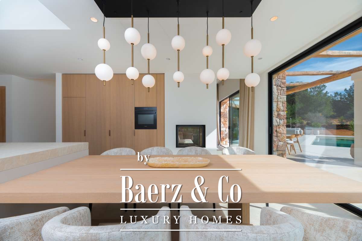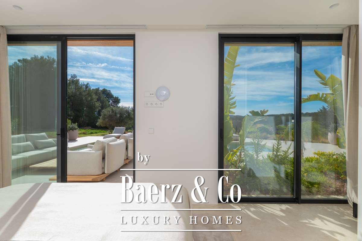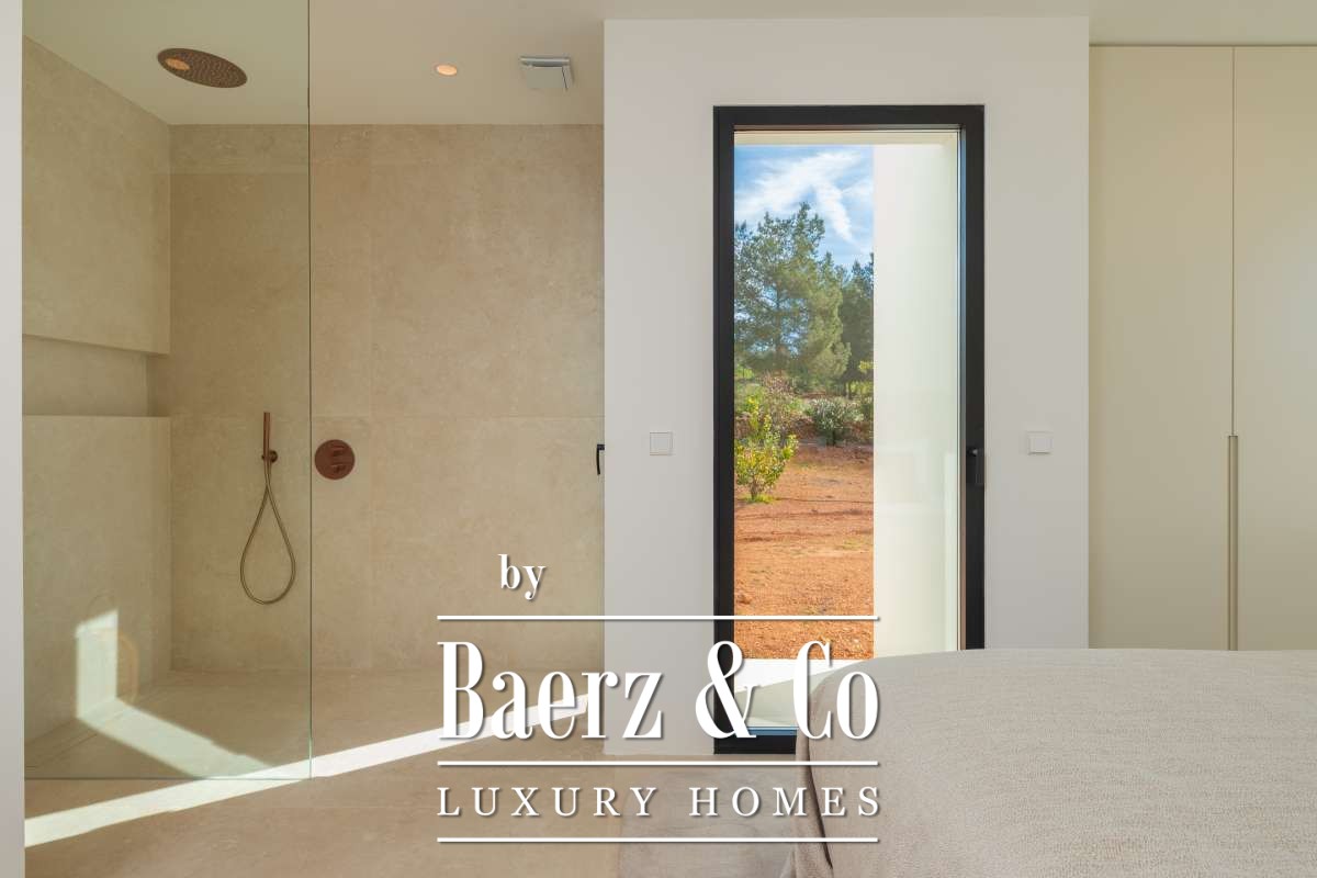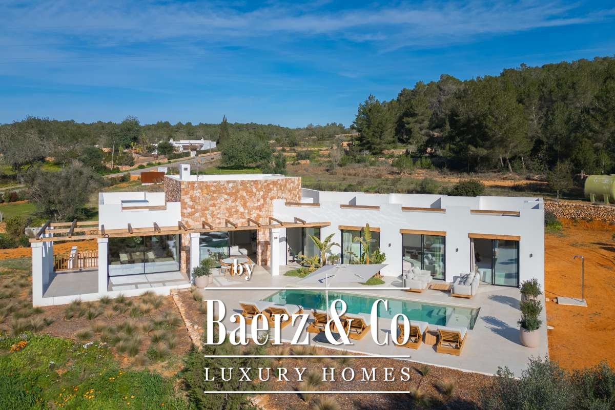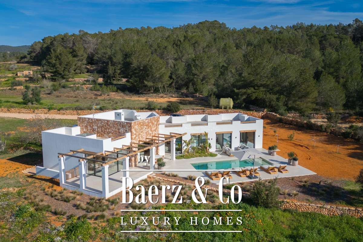 La villa a été réalisée avec des matériaux écoresponsables, double vitrage, chauffage au sol, climatisation et parking. Les jardins paysagers, le projet d'une maison d'amis supplémentaire et les structures ibicencas d'origine dans la cour achèvent l'ensemble. À quelques minutes du village de Santa Gertrudis et d'écoles internationales réputées, avec Ibiza et son aéroport à portée aisée, cette villa offre confidentialité et prestance—une base impeccable et adaptable pour un art de vivre insulaire d’exception.