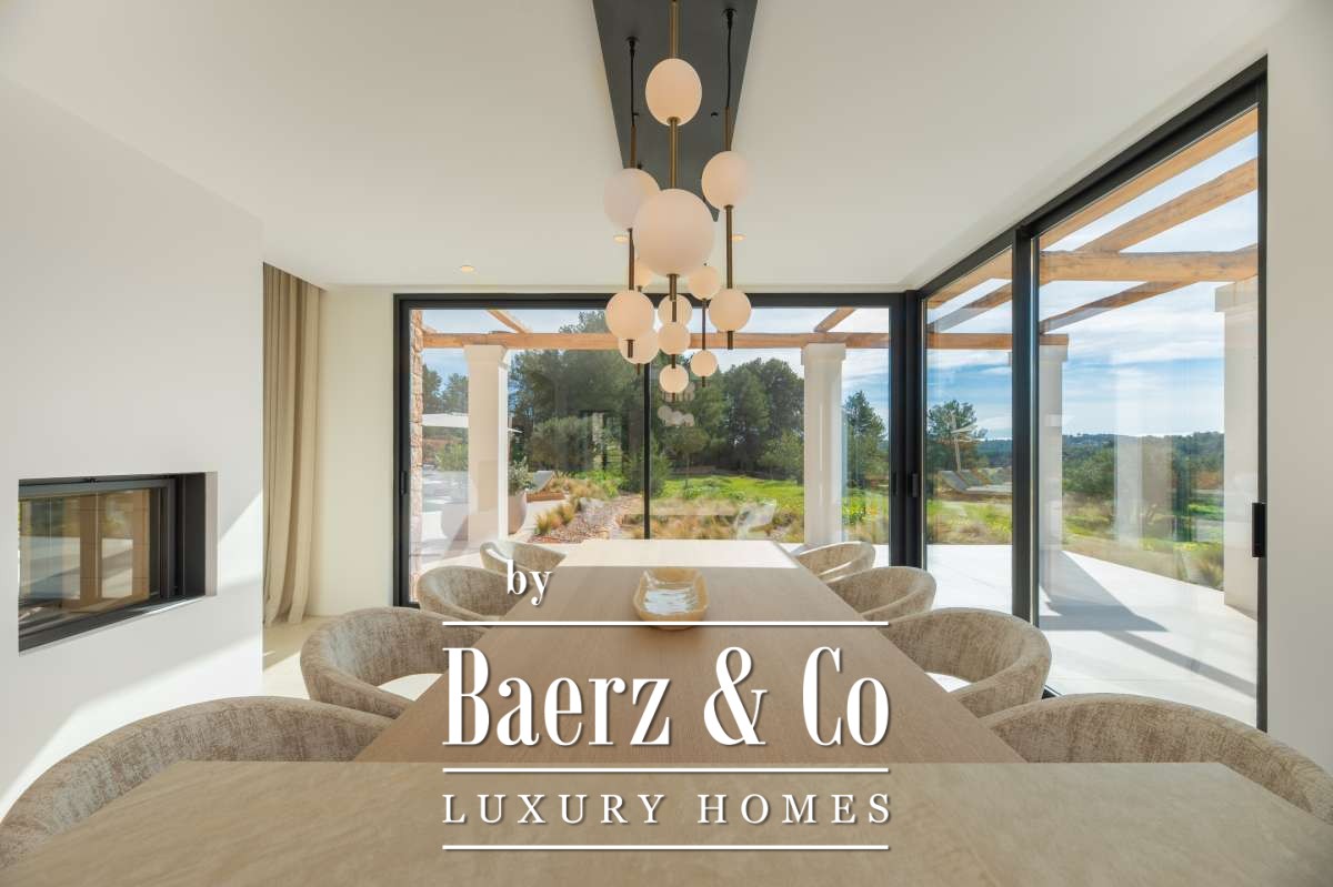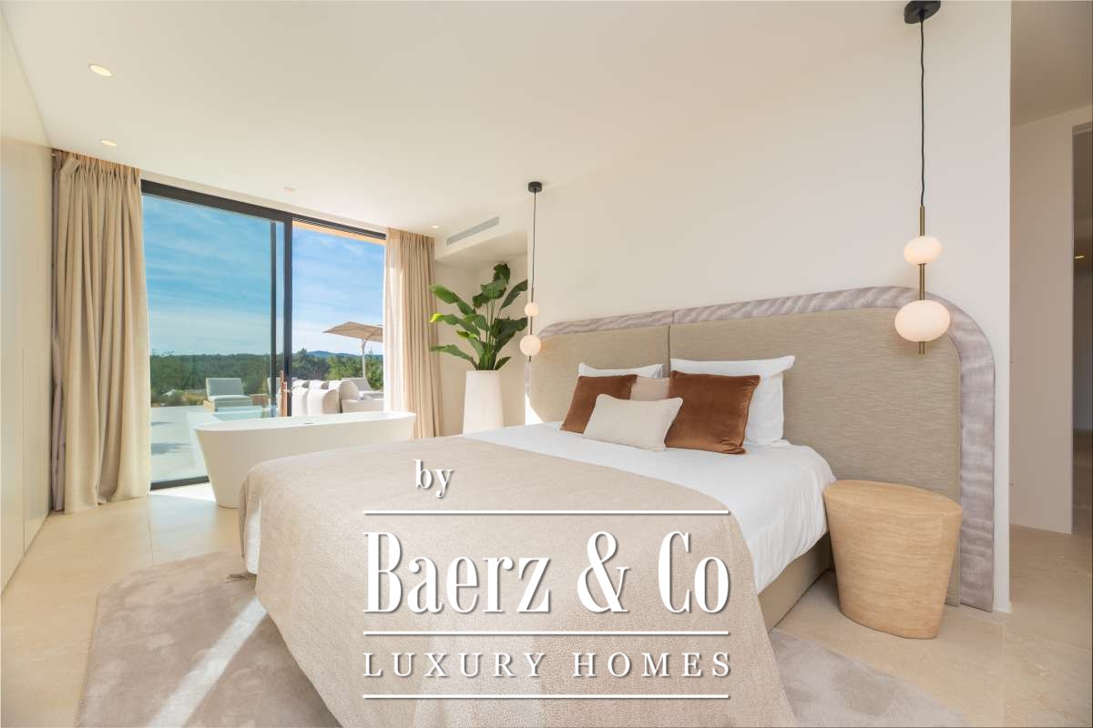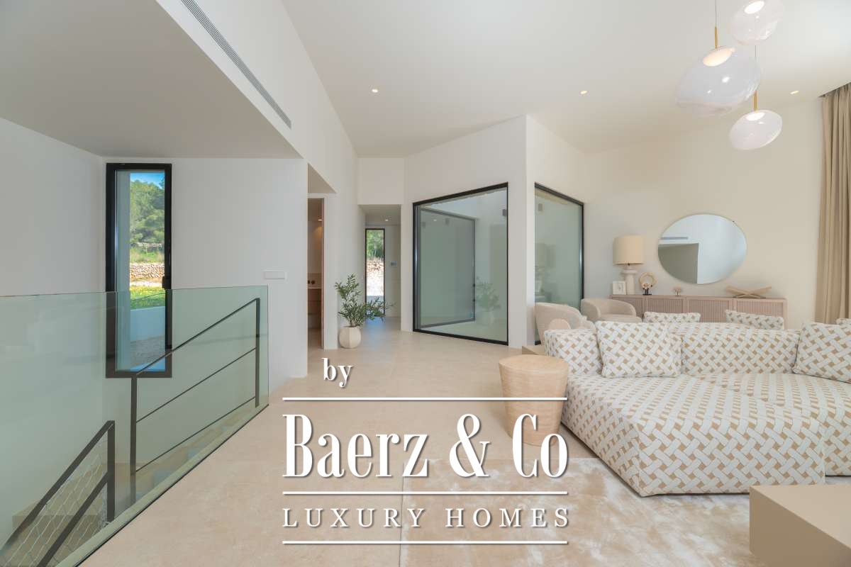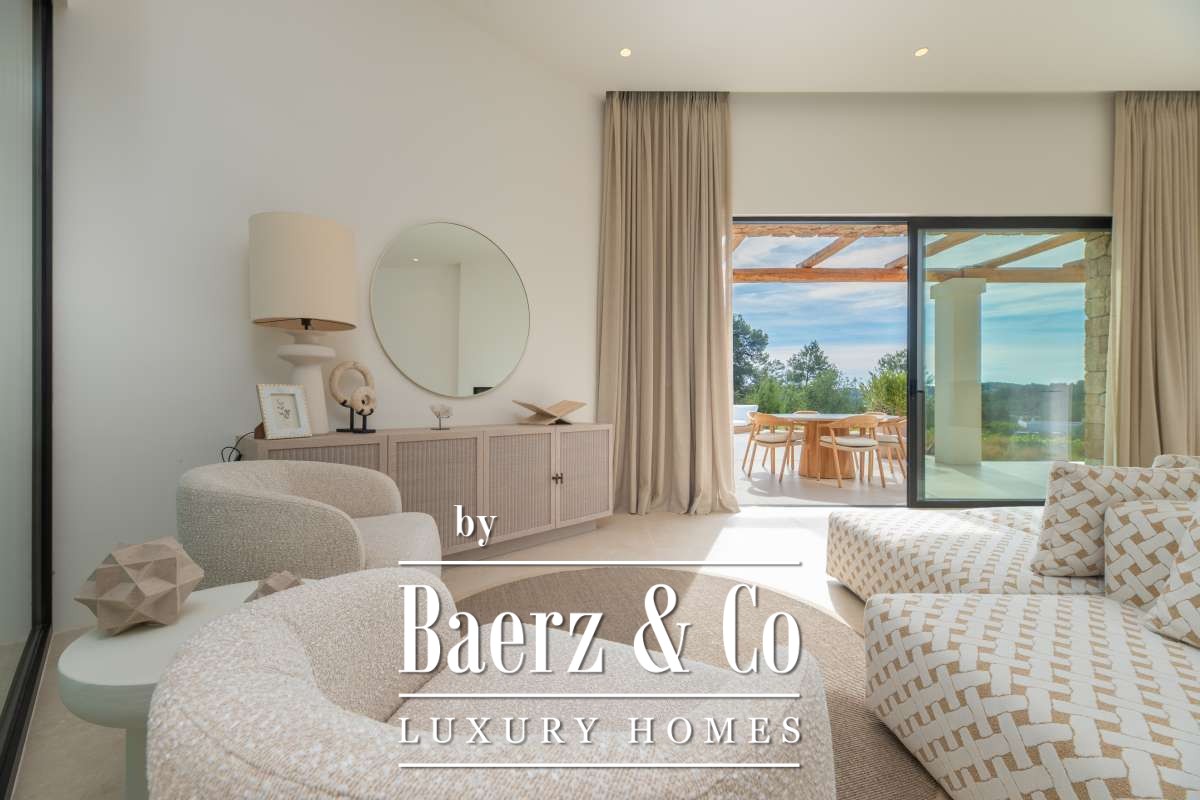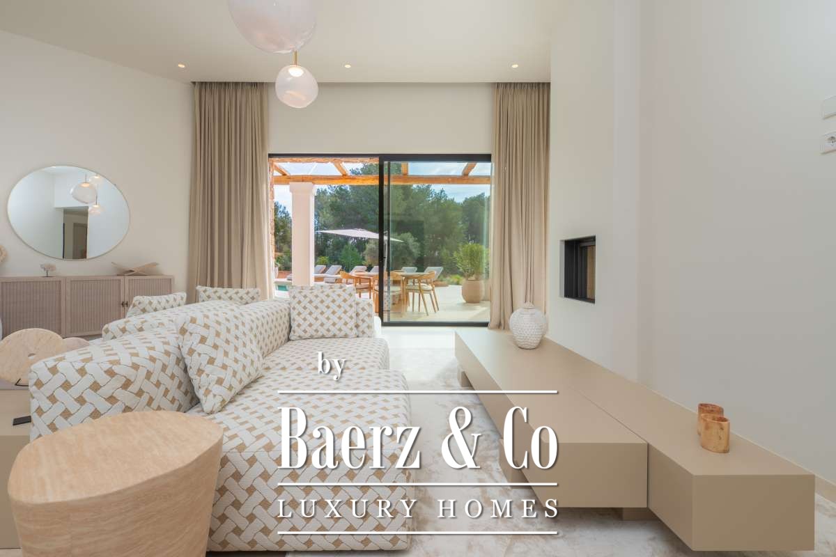 La villa a été réalisée avec des matériaux écoresponsables, double vitrage, chauffage au sol, climatisation et parking. Les jardins paysagers, le projet d'une maison d'amis supplémentaire et les structures ibicencas d'origine dans la cour achèvent l'ensemble. À quelques minutes du village de Santa Gertrudis et d'écoles internationales réputées, avec Ibiza et son aéroport à portée aisée, cette villa offre confidentialité et prestance—une base impeccable et adaptable pour un art de vivre insulaire d’exception.